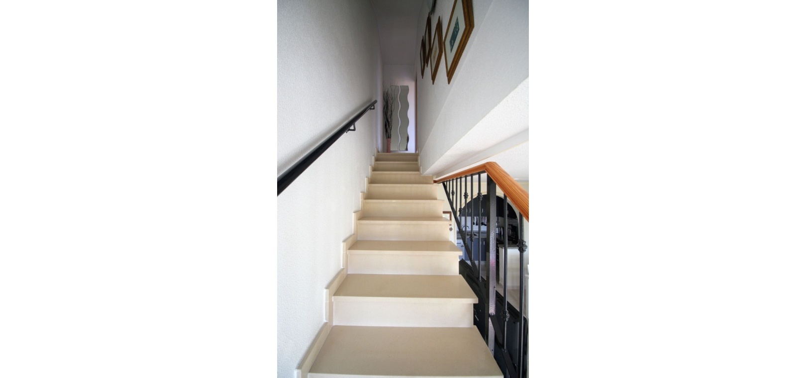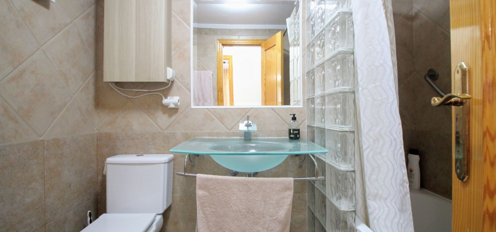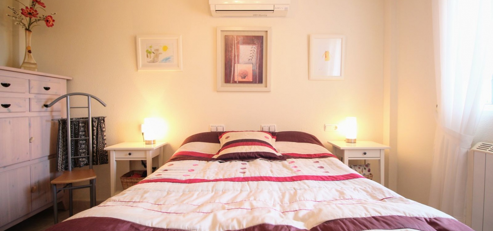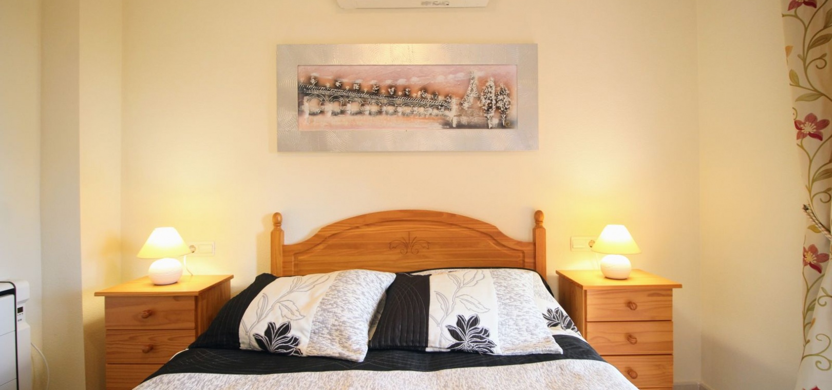 På första våningen finns ett stort vardagsrum/matrum med varm och kall A/C, en takfläkt och dörrar ut till en inglasad balkong, ett fullt utrustat kök med öppen planlösning, 2 x dubbelrum med inbyggda garderober och 1 x duschrum .