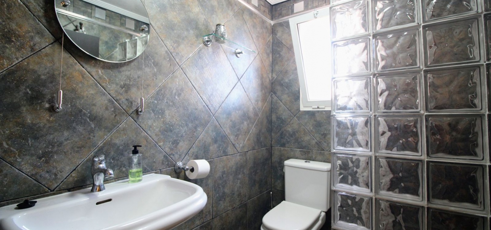 På översta våningen finns det största sovrummet med inbyggda garderober, varm och kall A/C & ett eget duschrum & en stor privat balkong/ privat taksolarium.
