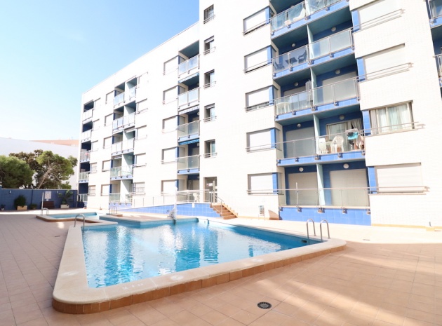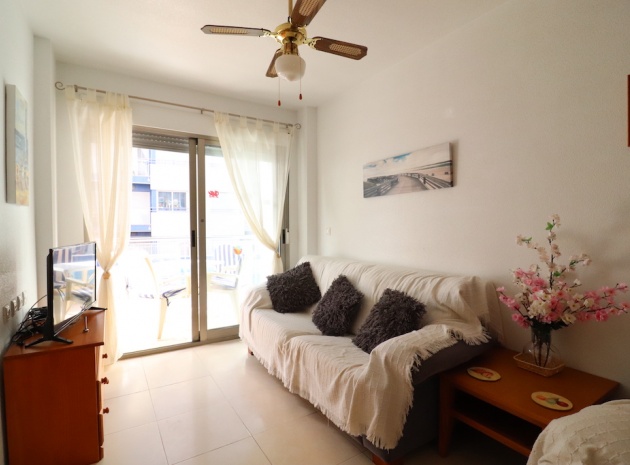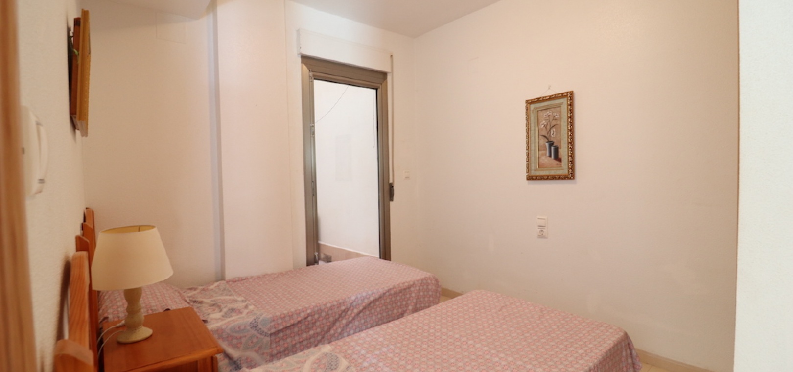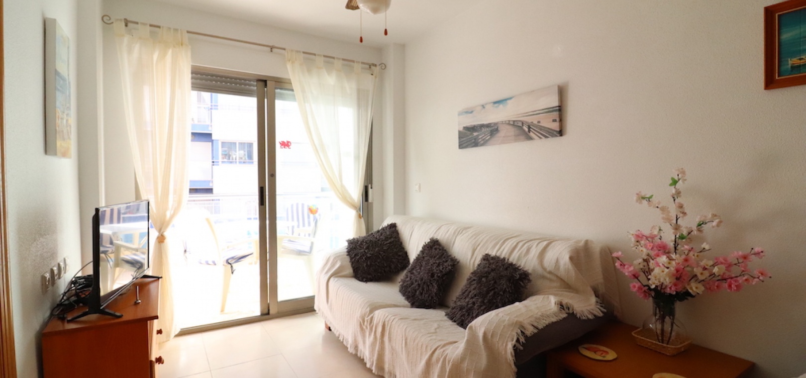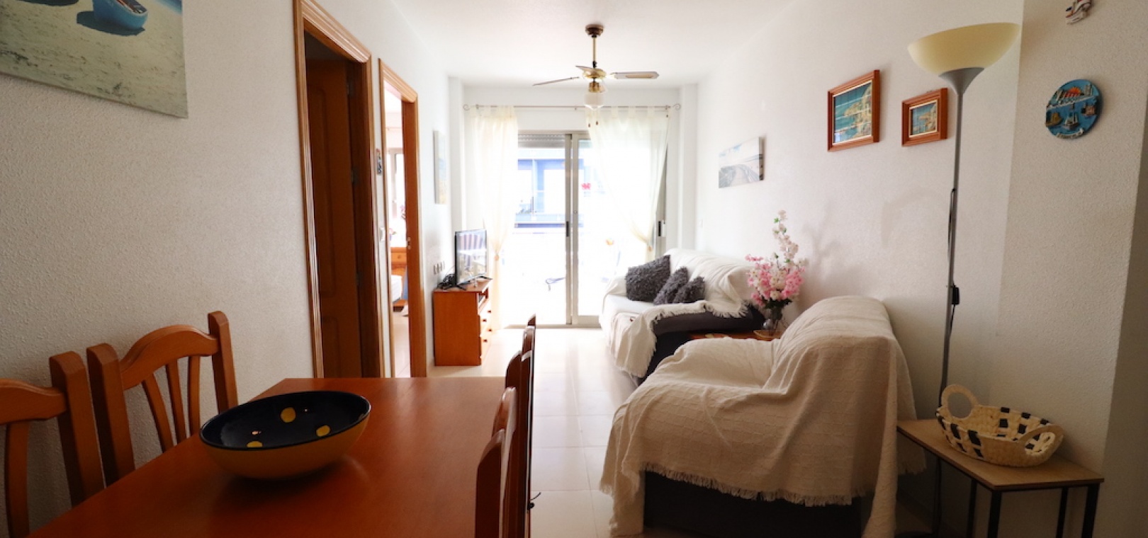 En östläge lägenhet med 2 sovrum och 1 badrum på bottenvåningen bara 50 meter från Playa de los Locos i Torrevieja, Costa Blanca.