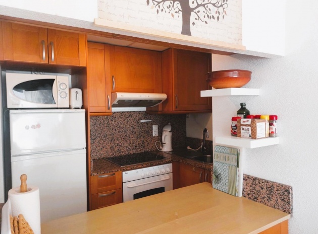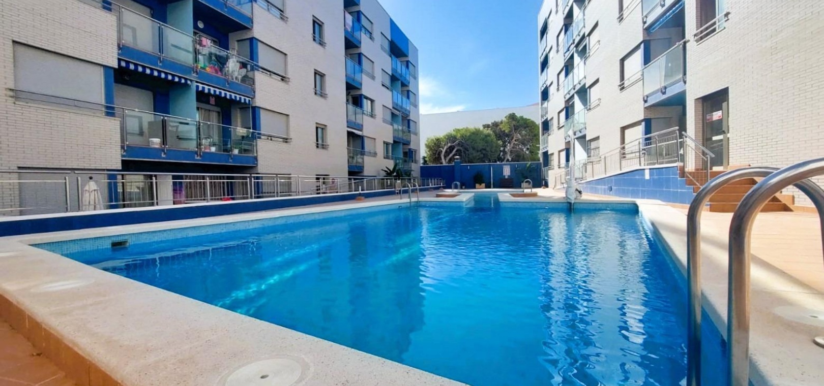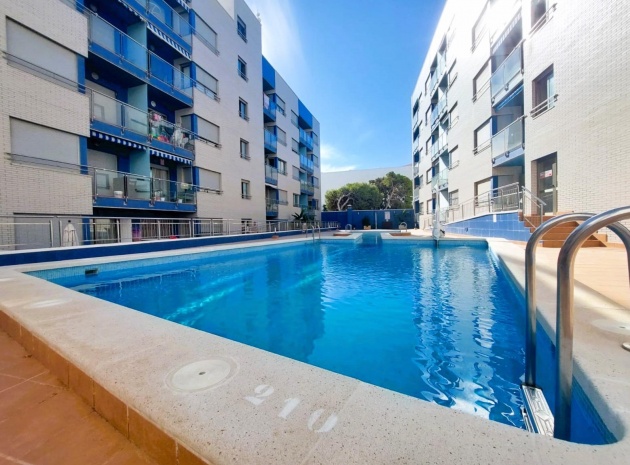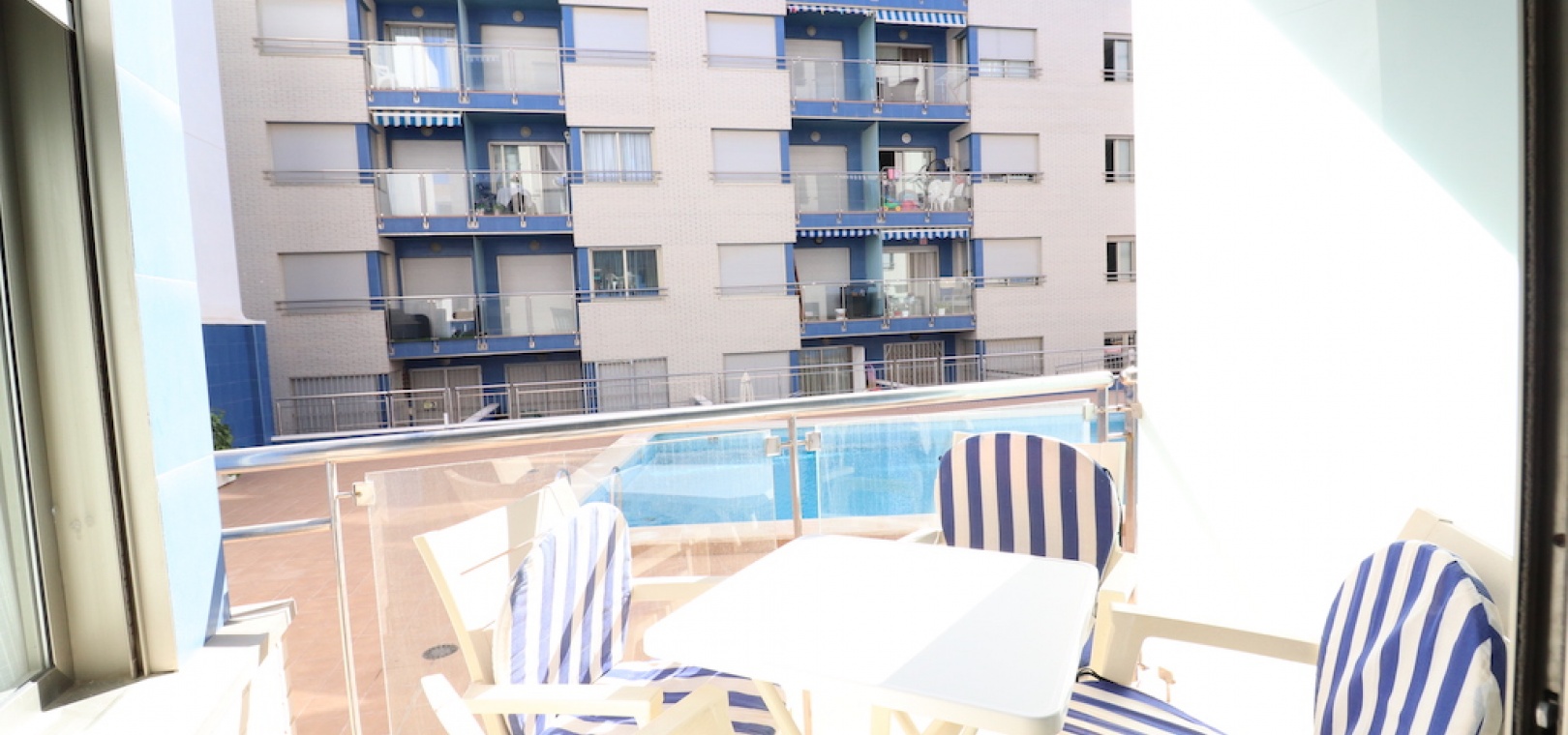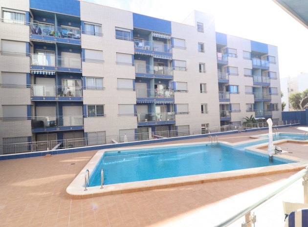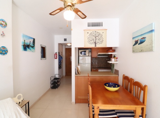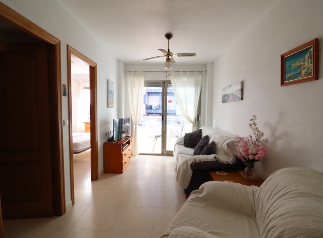 En östläge lägenhet med 2 sovrum och 1 badrum på bottenvåningen bara 50 meter från Playa de los Locos i Torrevieja, Costa Blanca.