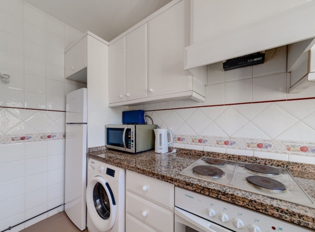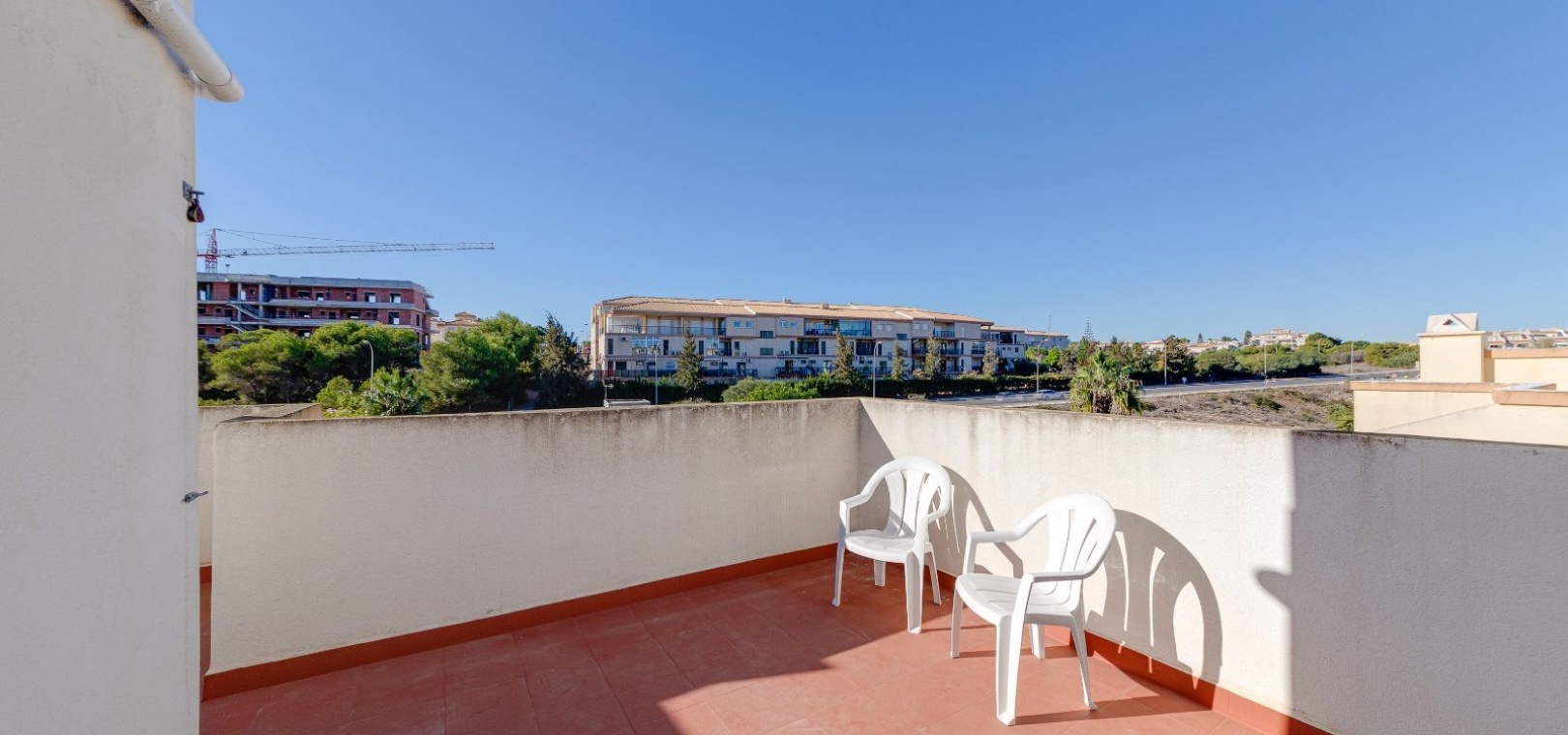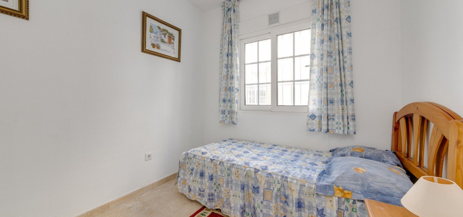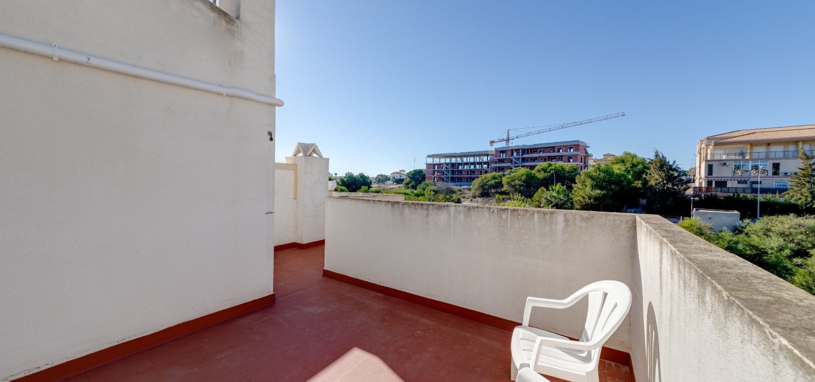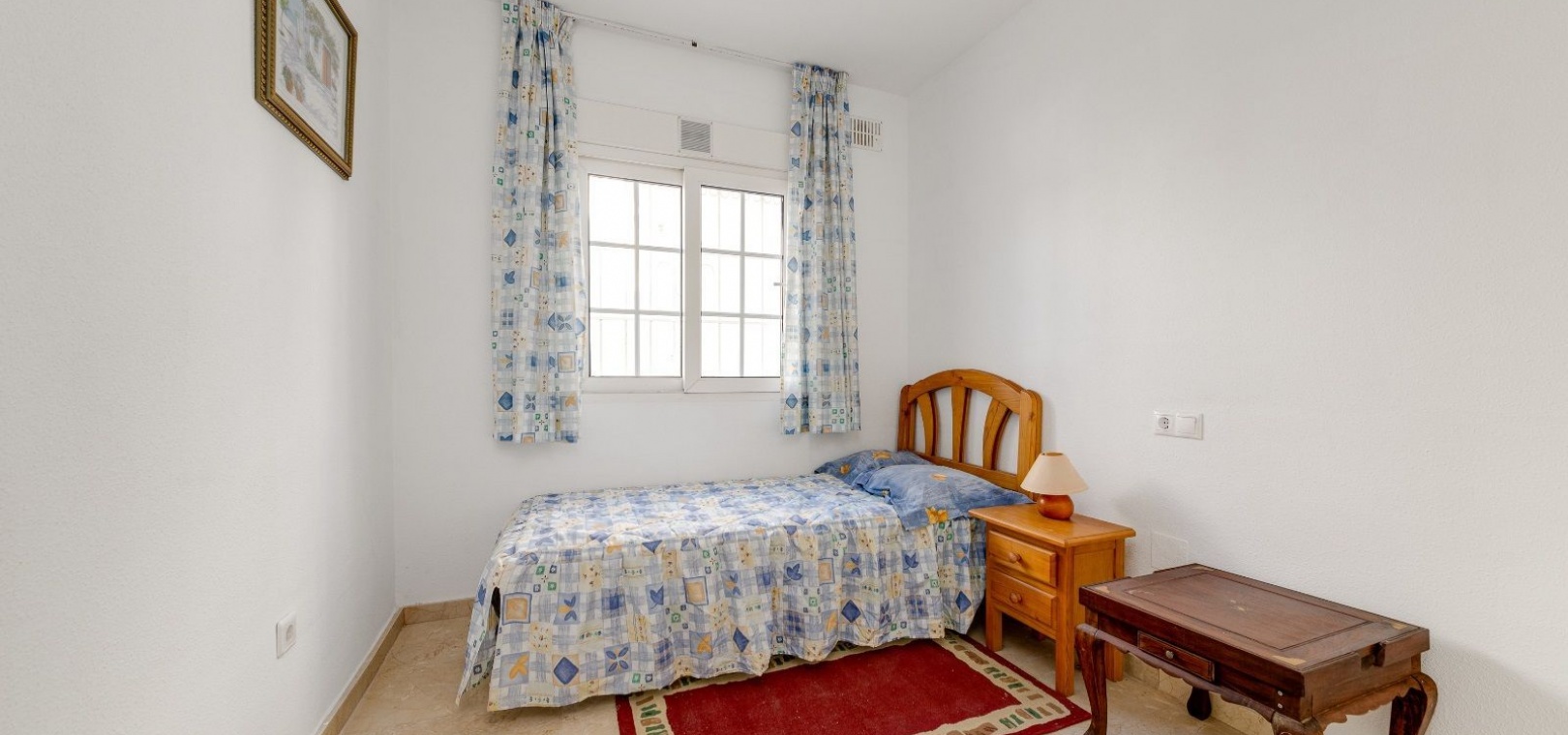 Ett parhus med 3 sovrum och 2 badrum i söderläge med privat takterrass som ligger nära Playa Flamenca Commercial Centre i Res. Jumilla, Playa Flamenca, Costa Blanca. Denna härliga fastighet säljs i mycket gott skick, säljs möblerad och består i korthet av följande: - På bottenvåningen finns ett vardagsrum/matrum med öppen spis, ett fullt utrustat kök med öppen planlösning, 2 x dubbelrum båda med inbyggda garderober & 1 x nymonterat duschrum. På första våningen finns det stora dubbelrum med inbyggda garderober, 1 x familjebadrum och dörrar ut till det privata solariumet på taket. Utanför finns en utökad terrass, fram- och sidoträdgård med off-road parkering, vacker gemensam pool och mycket mycket mer. Denna fastighet ligger bara 1 minuts promenad från Playa Flamenca Commercial Centre där du hittar många stormarknader, butiker, barer och restauranger etc. Vackra gyllene sandstränder med blå flagg finns i närheten vid Playa Flamenca-stranden (700m) och även vid Punta Prima, La Zenia och Cabo Roig. Det finns också en bra busslinje (var 30:e minut), som förbinder området med alla de viktigaste kustområdena som Torrevieja och Alicante i norr och Cartagena och Mar Menor i söder. Shopping: Köpcentret Zenia boulevard ligger mindre än 5 minuters bilresa från fastigheten. Murcia Corvera flygplats ligger 35 minuters bilresa och Alicantes flygplats ligger 50 minuters bilresa bort.