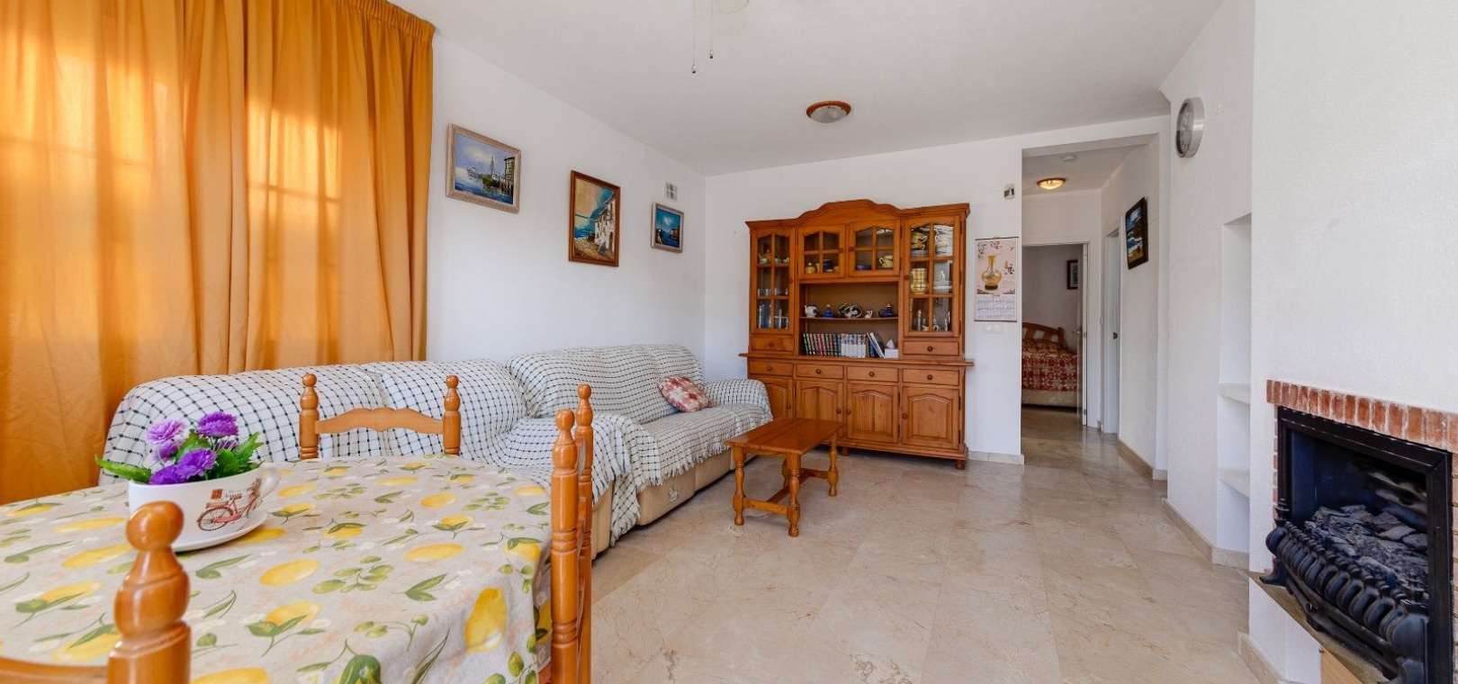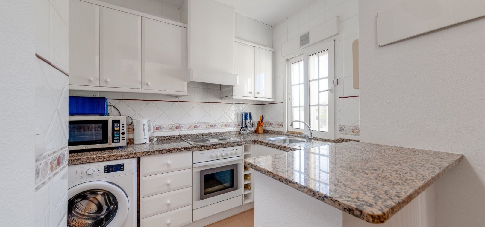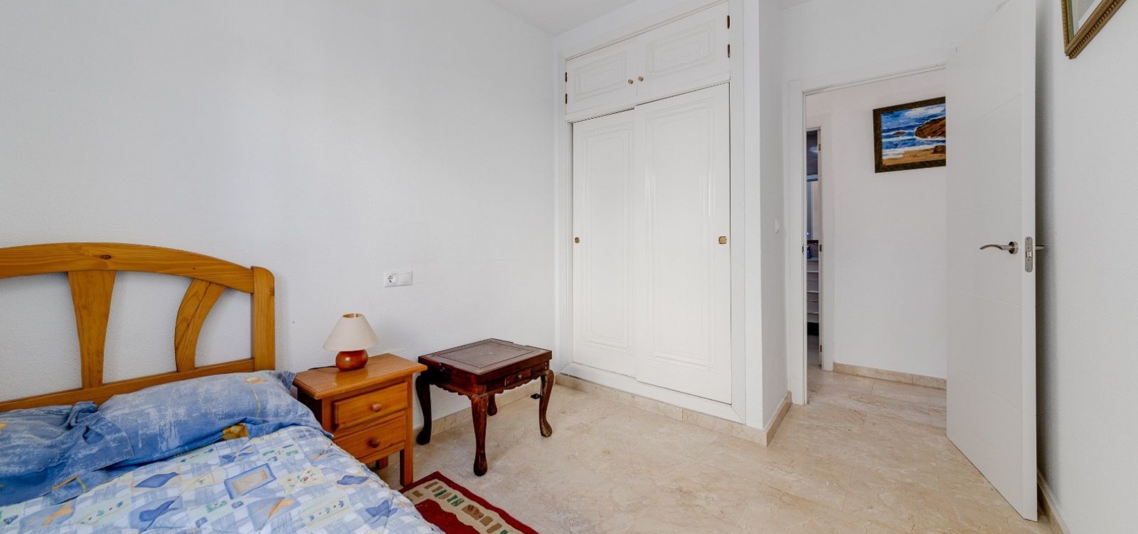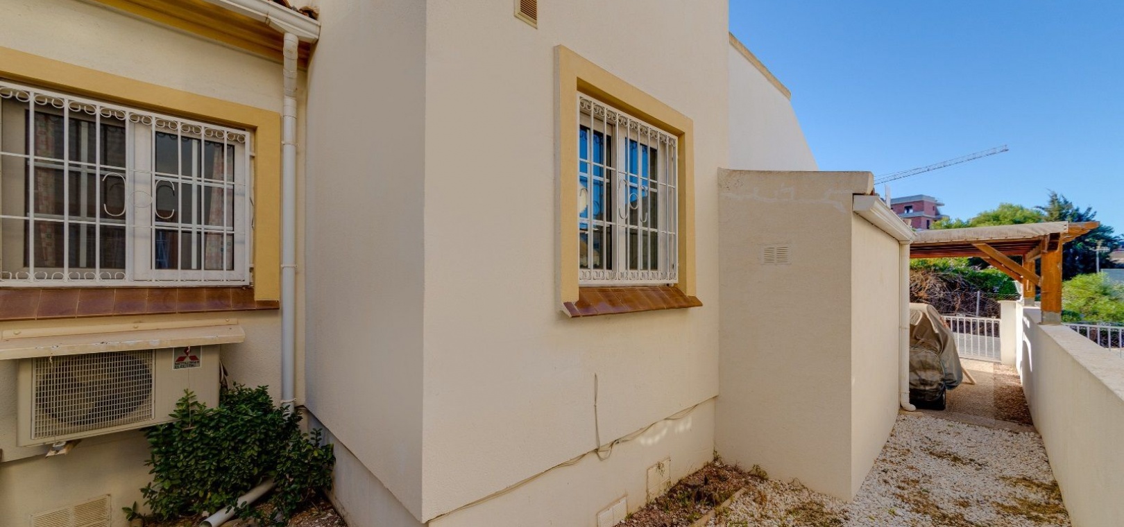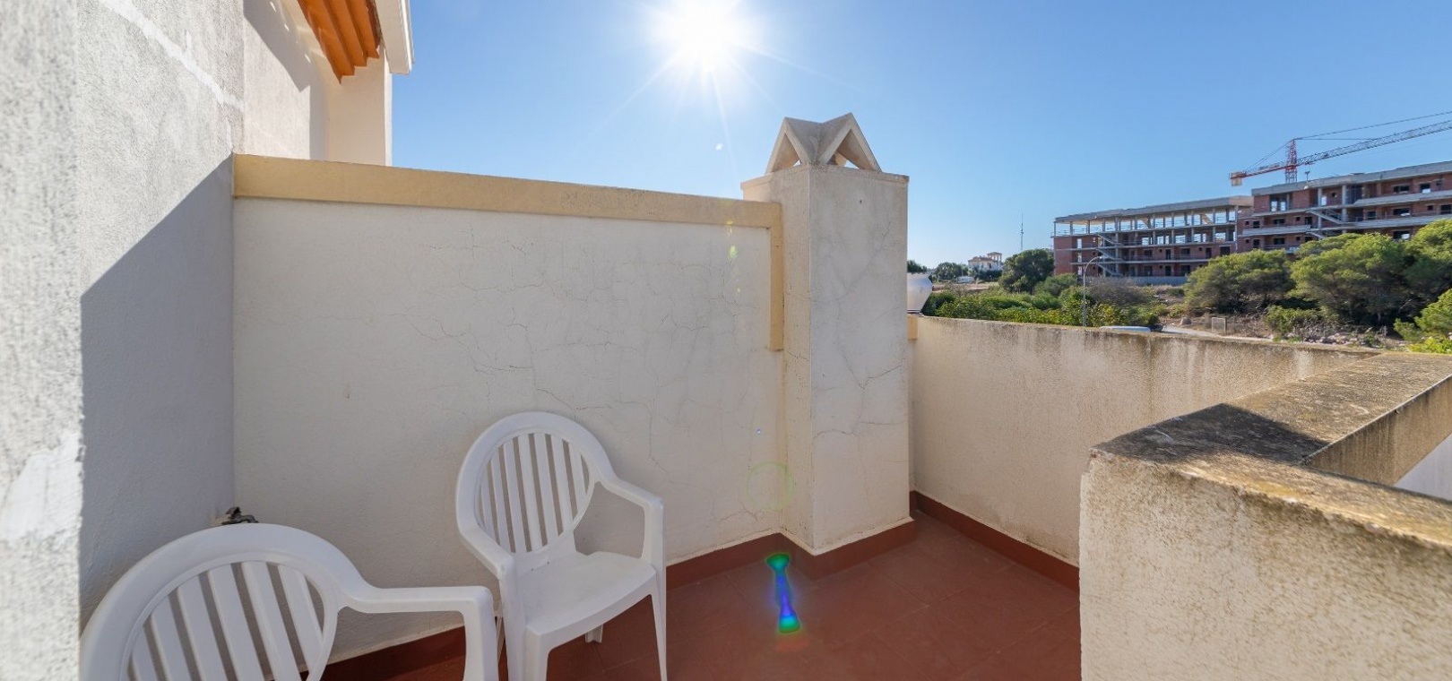 Ett parhus med 3 sovrum och 2 badrum i söderläge med privat takterrass som ligger nära Playa Flamenca Commercial Centre i Res. Jumilla, Playa Flamenca, Costa Blanca. Denna härliga fastighet säljs i mycket gott skick, säljs möblerad och består i korthet av följande: - På bottenvåningen finns ett vardagsrum/matrum med öppen spis, ett fullt utrustat kök med öppen planlösning, 2 x dubbelrum båda med inbyggda garderober & 1 x nymonterat duschrum. På första våningen finns det stora dubbelrum med inbyggda garderober, 1 x familjebadrum och dörrar ut till det privata solariumet på taket. Utanför finns en utökad terrass, fram- och sidoträdgård med off-road parkering, vacker gemensam pool och mycket mycket mer. Denna fastighet ligger bara 1 minuts promenad från Playa Flamenca Commercial Centre där du hittar många stormarknader, butiker, barer och restauranger etc. Vackra gyllene sandstränder med blå flagg finns i närheten vid Playa Flamenca-stranden (700m) och även vid Punta Prima, La Zenia och Cabo Roig. Det finns också en bra busslinje (var 30:e minut), som förbinder området med alla de viktigaste kustområdena som Torrevieja och Alicante i norr och Cartagena och Mar Menor i söder. Shopping: Köpcentret Zenia boulevard ligger mindre än 5 minuters bilresa från fastigheten. Murcia Corvera flygplats ligger 35 minuters bilresa och Alicantes flygplats ligger 50 minuters bilresa bort.