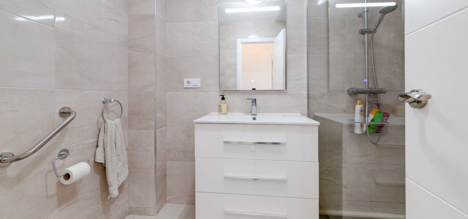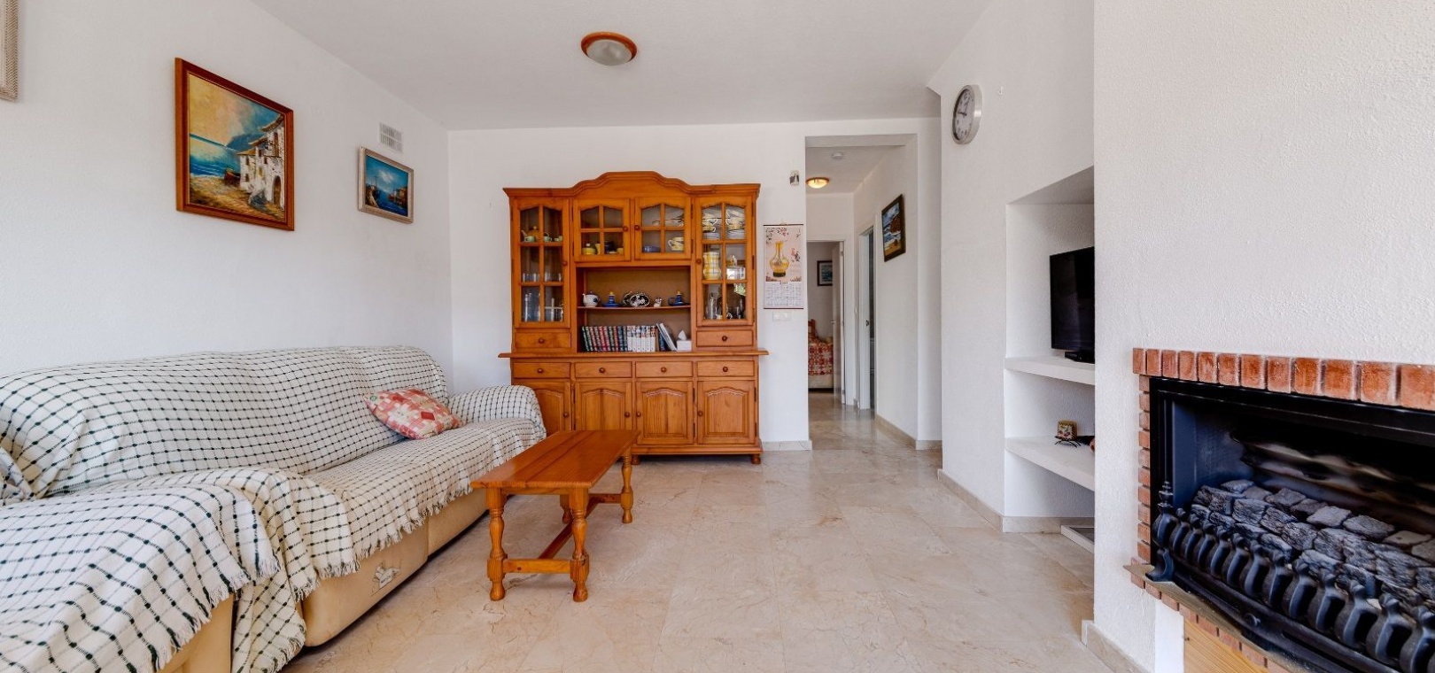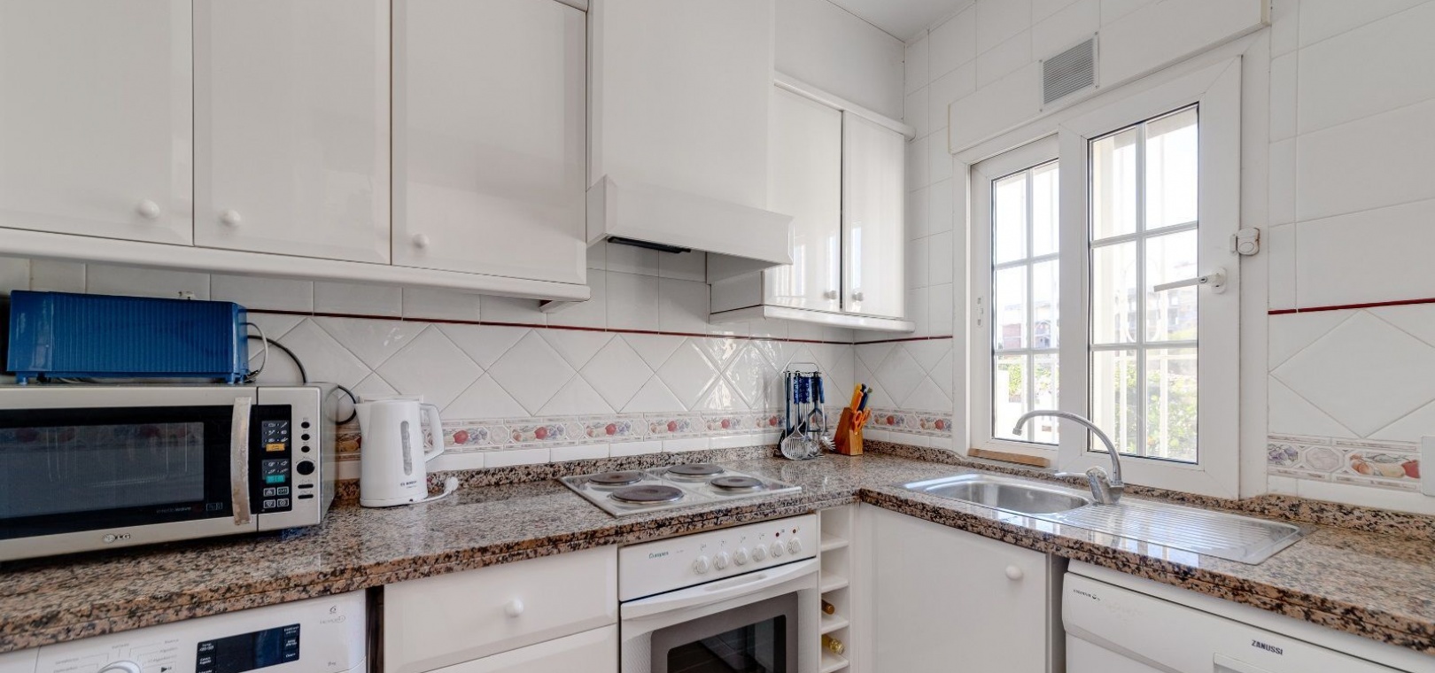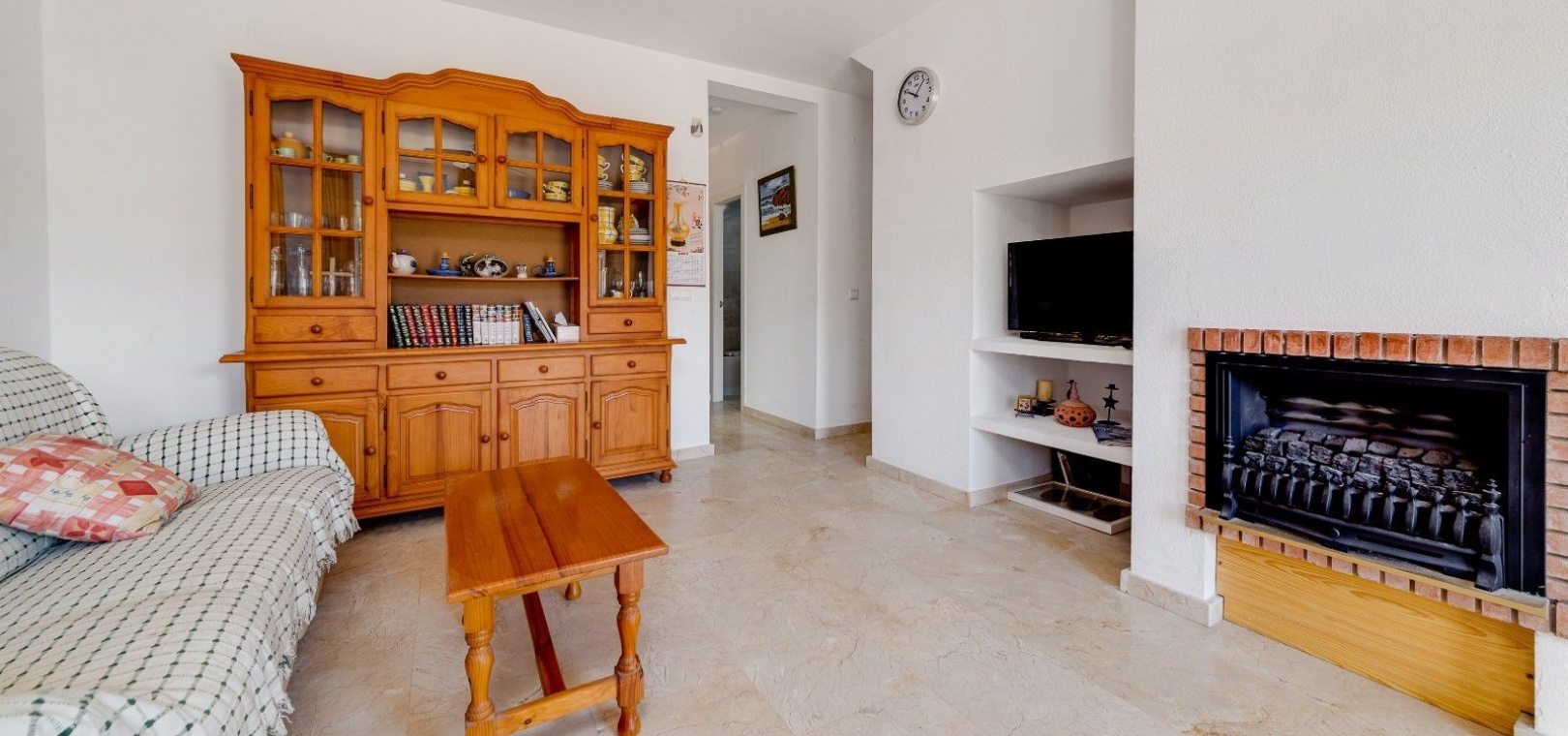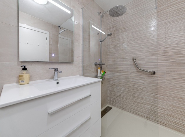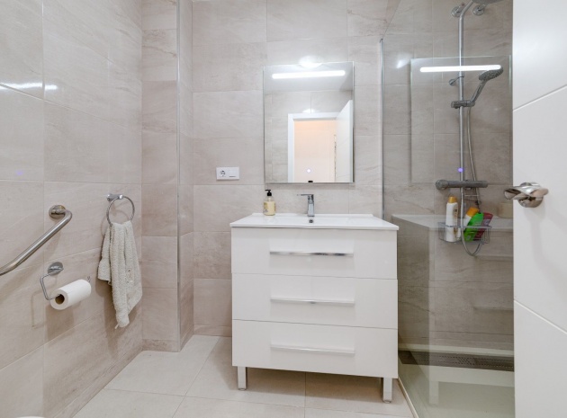 Ett parhus med 3 sovrum och 2 badrum i söderläge med privat takterrass som ligger nära Playa Flamenca Commercial Centre i Res. Jumilla, Playa Flamenca, Costa Blanca. Denna härliga fastighet säljs i mycket gott skick, säljs möblerad och består i korthet av följande: - På bottenvåningen finns ett vardagsrum/matrum med öppen spis, ett fullt utrustat kök med öppen planlösning, 2 x dubbelrum båda med inbyggda garderober & 1 x nymonterat duschrum. På första våningen finns det stora dubbelrum med inbyggda garderober, 1 x familjebadrum och dörrar ut till det privata solariumet på taket. Utanför finns en utökad terrass, fram- och sidoträdgård med off-road parkering, vacker gemensam pool och mycket mycket mer. Denna fastighet ligger bara 1 minuts promenad från Playa Flamenca Commercial Centre där du hittar många stormarknader, butiker, barer och restauranger etc. Vackra gyllene sandstränder med blå flagg finns i närheten vid Playa Flamenca-stranden (700m) och även vid Punta Prima, La Zenia och Cabo Roig. Det finns också en bra busslinje (var 30:e minut), som förbinder området med alla de viktigaste kustområdena som Torrevieja och Alicante i norr och Cartagena och Mar Menor i söder. Shopping: Köpcentret Zenia boulevard ligger mindre än 5 minuters bilresa från fastigheten. Murcia Corvera flygplats ligger 35 minuters bilresa och Alicantes flygplats ligger 50 minuters bilresa bort.