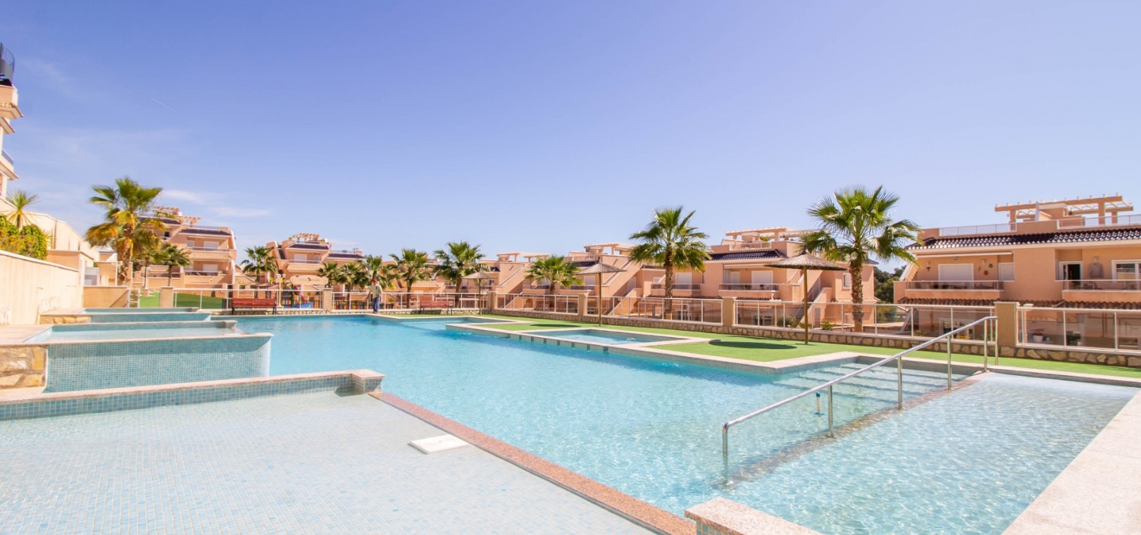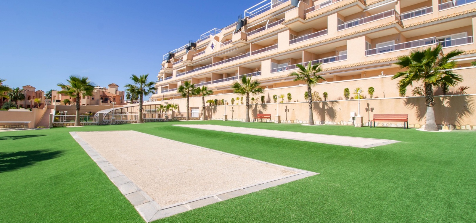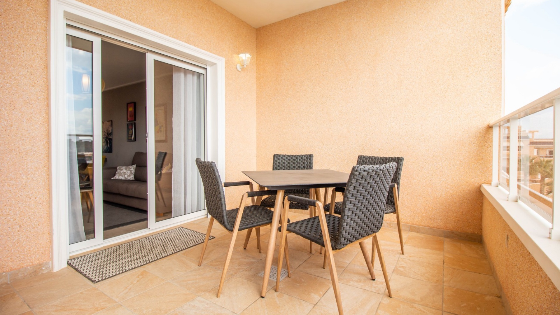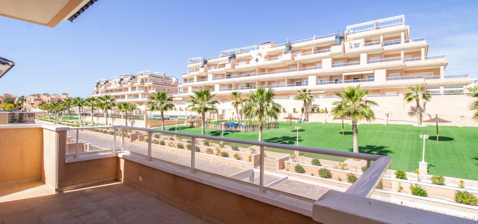 En sydostläge, som ny, två sovrum, första våningen lägenhet i Punta Prima, belägen bara 10 minuters promenad till Punta Marina kommersiella centrum, där du hittar JYSK, snabbköp, McDonalds, butiker, cafébarer/restauranger. Stranden ligger 5 minuter med bil, plus ett sjukhus och staden Torrevieja, känd för sin småbåtshamn och populära strandpromenad. Alla bekvämligheter på Orihuela Costa, inklusive shoppingcentret La Zenia Boulevard ligger inom en radie på 10 minuters bilresa och för golfare ett stort urval av banor. Själva komplexet har 2 gemensamma pooler (en är täckt och uppvärmd), trädgårdar, barnområde, spa/jacuzzi och biohälsosamt gym. Denna lägenhet har möblerats till en fantastisk standard och består av: vardagsrum/matsal med skjutdörrar ut till en rymlig terrass, som erbjuder gott om plats för uteservering och utsikt över den gemensamma poolen och trädgården; rymligt kök med öppen planlösning med bardisk, dörr som leder till en uteplats på baksidan och dörr som leder till verktyget; två dubbelrum, master med tillgång till terrassen, lådor i den inbyggda garderoben och eget duschrum; ytterligare modernt duschrum. Extrafunktionerna inkluderar luftkonditionering med kanal, golvuppvärmda badrum, plus att det finns en hiss i kvarteret och en underjordisk parkeringsplats. Du får alla "nybyggda" fördelar med denna fantastiska lägenhet.