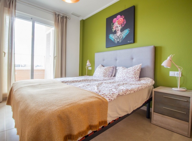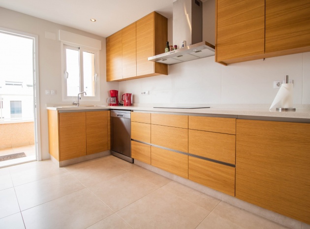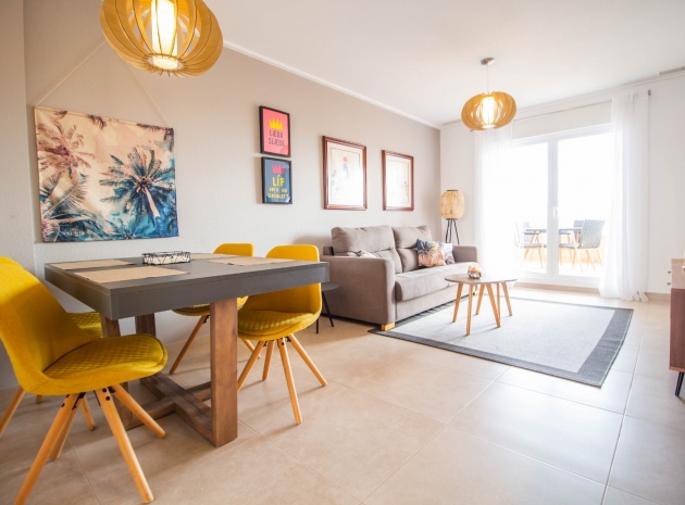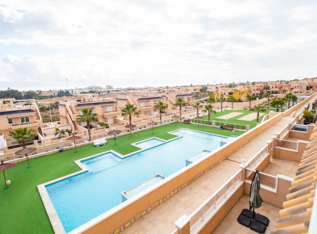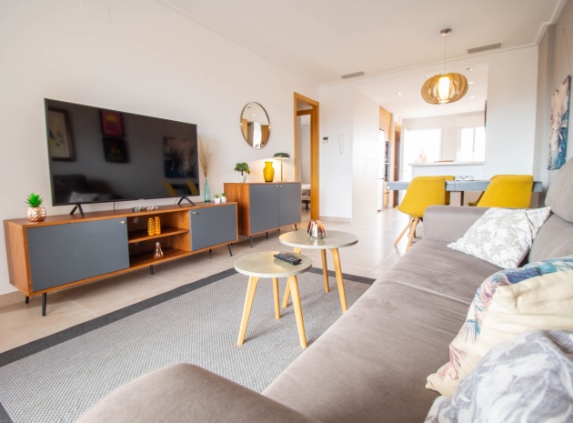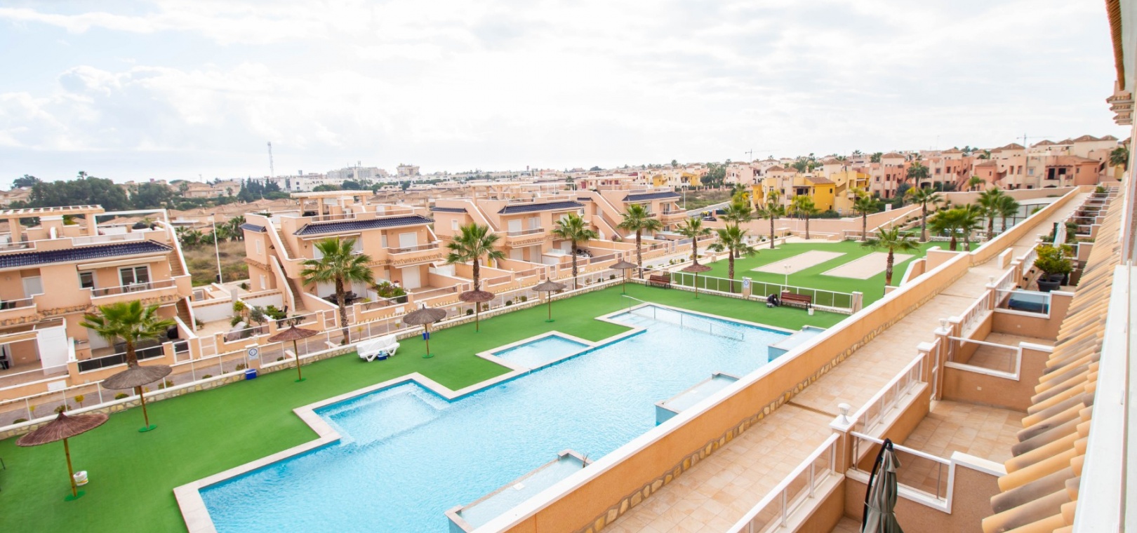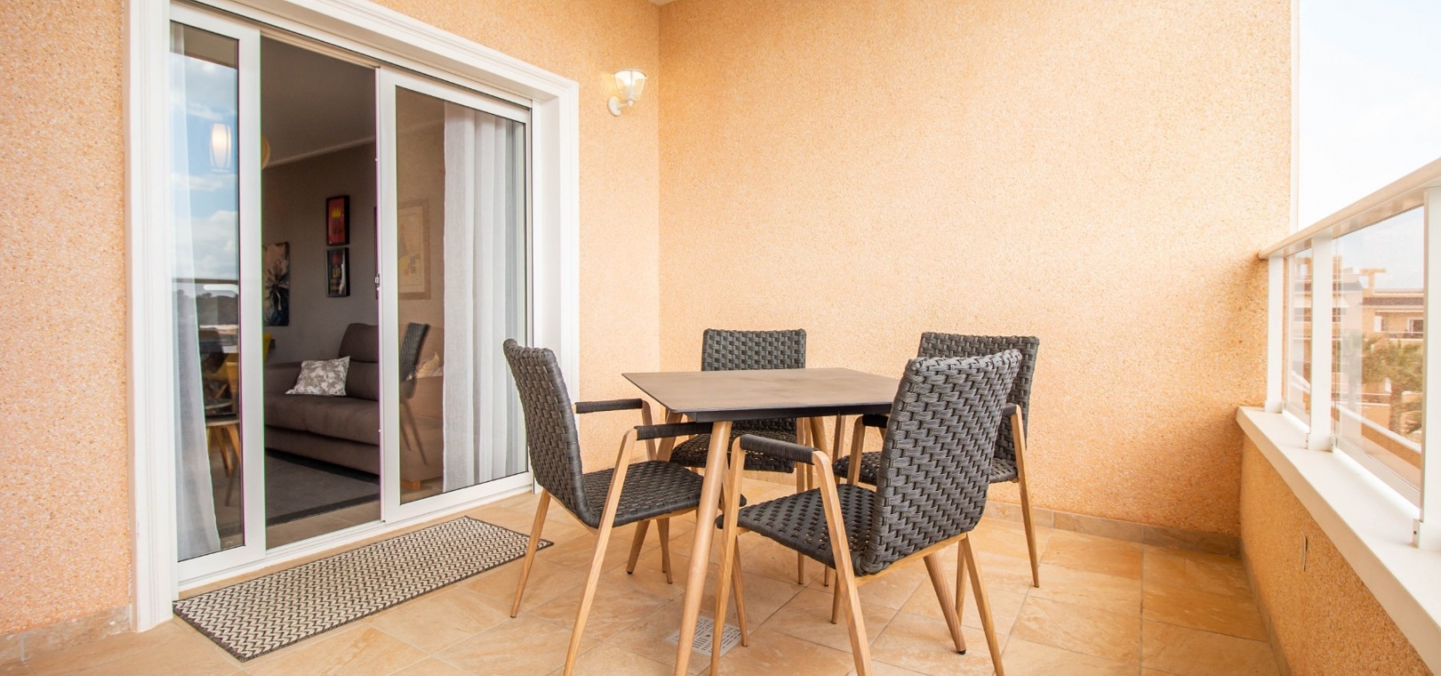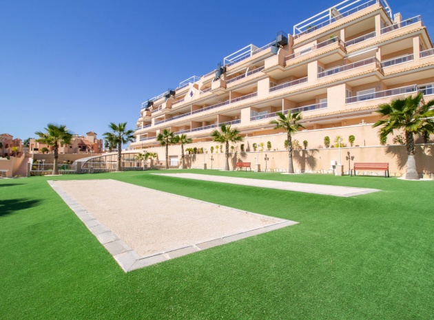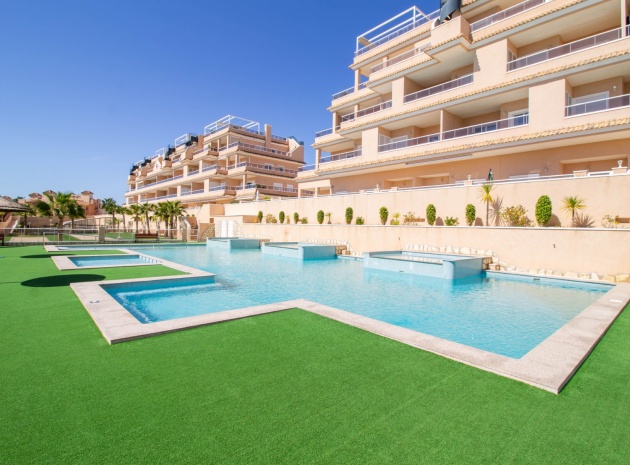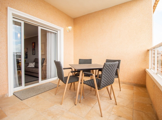 En sydostläge, som ny, två sovrum, första våningen lägenhet i Punta Prima, belägen bara 10 minuters promenad till Punta Marina kommersiella centrum, där du hittar JYSK, snabbköp, McDonalds, butiker, cafébarer/restauranger. Stranden ligger 5 minuter med bil, plus ett sjukhus och staden Torrevieja, känd för sin småbåtshamn och populära strandpromenad. Alla bekvämligheter på Orihuela Costa, inklusive shoppingcentret La Zenia Boulevard ligger inom en radie på 10 minuters bilresa och för golfare ett stort urval av banor. Själva komplexet har 2 gemensamma pooler (en är täckt och uppvärmd), trädgårdar, barnområde, spa/jacuzzi och biohälsosamt gym. Denna lägenhet har möblerats till en fantastisk standard och består av: vardagsrum/matsal med skjutdörrar ut till en rymlig terrass, som erbjuder gott om plats för uteservering och utsikt över den gemensamma poolen och trädgården; rymligt kök med öppen planlösning med bardisk, dörr som leder till en uteplats på baksidan och dörr som leder till verktyget; två dubbelrum, master med tillgång till terrassen, lådor i den inbyggda garderoben och eget duschrum; ytterligare modernt duschrum. Extrafunktionerna inkluderar luftkonditionering med kanal, golvuppvärmda badrum, plus att det finns en hiss i kvarteret och en underjordisk parkeringsplats. Du får alla "nybyggda" fördelar med denna fantastiska lägenhet.
