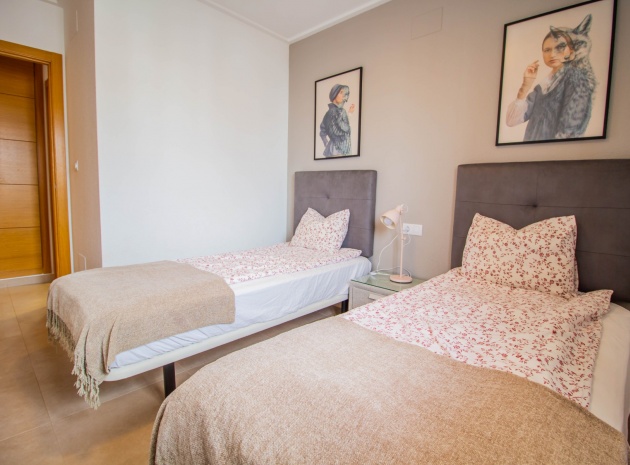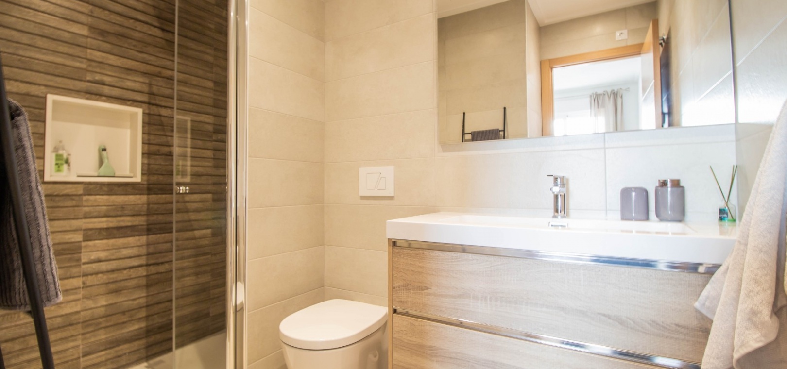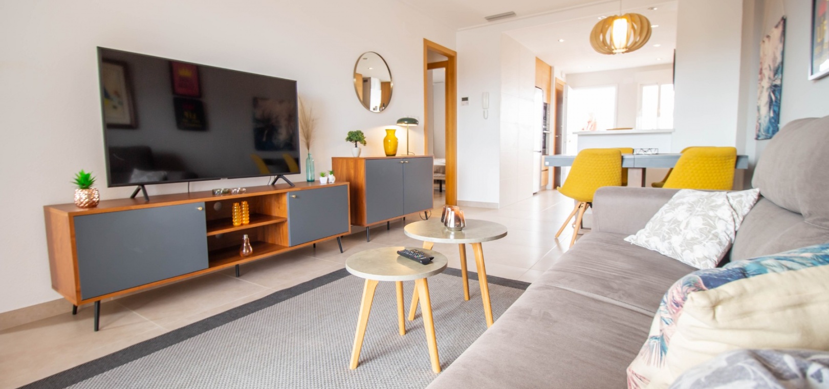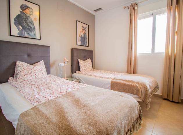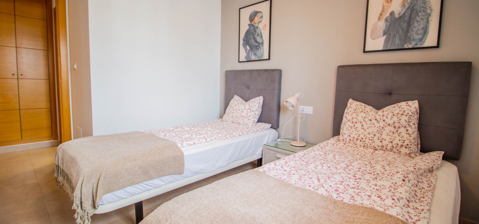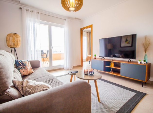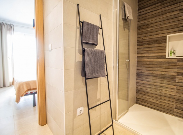 En sydostläge, som ny, två sovrum, första våningen lägenhet i Punta Prima, belägen bara 10 minuters promenad till Punta Marina kommersiella centrum, där du hittar JYSK, snabbköp, McDonalds, butiker, cafébarer/restauranger. Stranden ligger 5 minuter med bil, plus ett sjukhus och staden Torrevieja, känd för sin småbåtshamn och populära strandpromenad. Alla bekvämligheter på Orihuela Costa, inklusive shoppingcentret La Zenia Boulevard ligger inom en radie på 10 minuters bilresa och för golfare ett stort urval av banor. Själva komplexet har 2 gemensamma pooler (en är täckt och uppvärmd), trädgårdar, barnområde, spa/jacuzzi och biohälsosamt gym. Denna lägenhet har möblerats till en fantastisk standard och består av: vardagsrum/matsal med skjutdörrar ut till en rymlig terrass, som erbjuder gott om plats för uteservering och utsikt över den gemensamma poolen och trädgården; rymligt kök med öppen planlösning med bardisk, dörr som leder till en uteplats på baksidan och dörr som leder till verktyget; två dubbelrum, master med tillgång till terrassen, lådor i den inbyggda garderoben och eget duschrum; ytterligare modernt duschrum. Extrafunktionerna inkluderar luftkonditionering med kanal, golvuppvärmda badrum, plus att det finns en hiss i kvarteret och en underjordisk parkeringsplats. Du får alla "nybyggda" fördelar med denna fantastiska lägenhet.