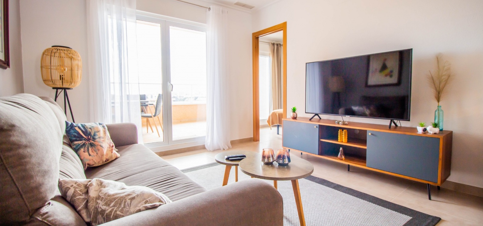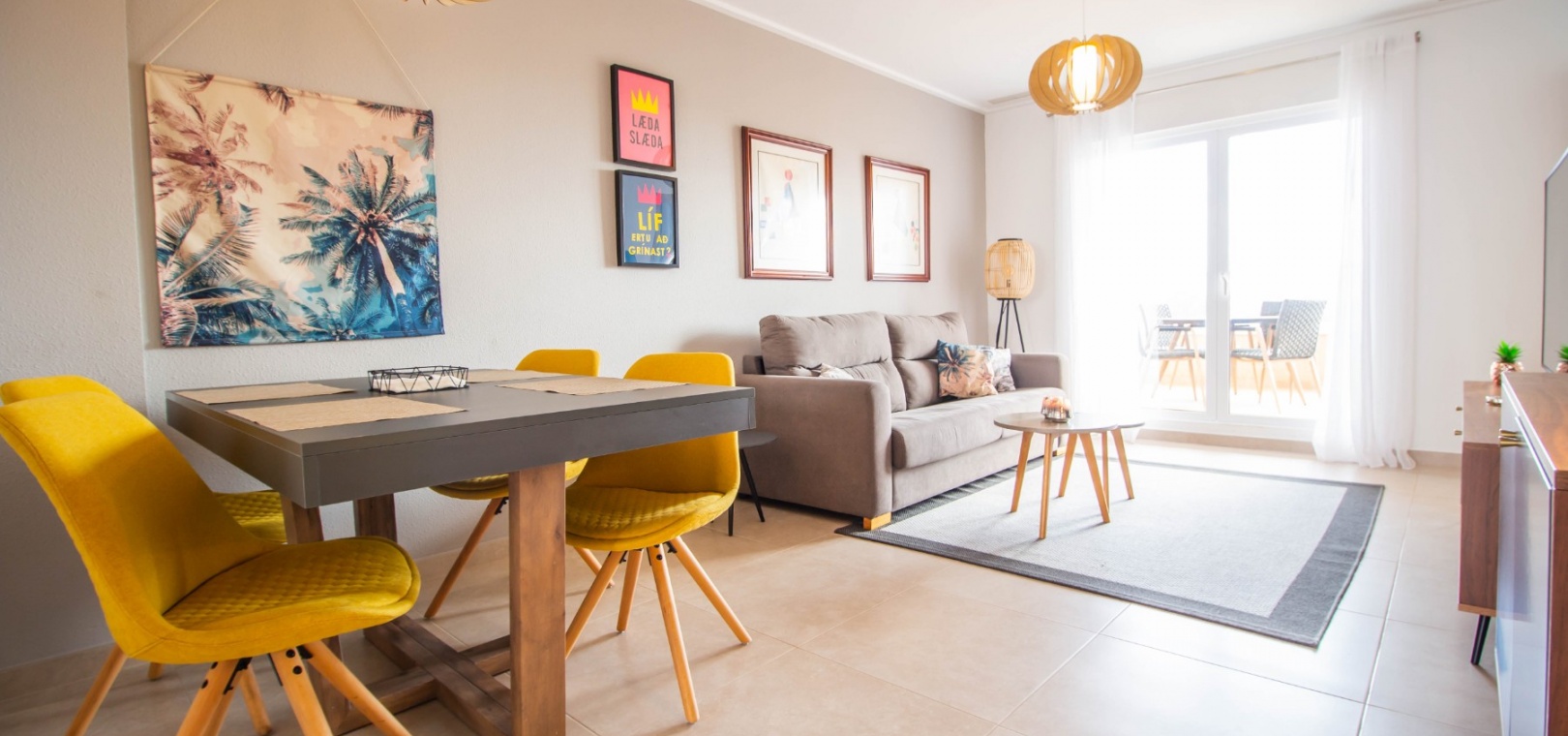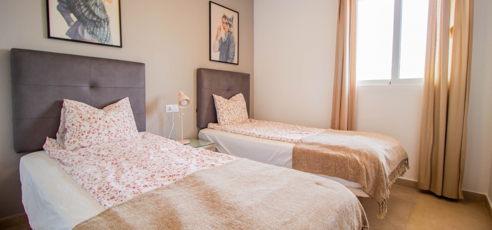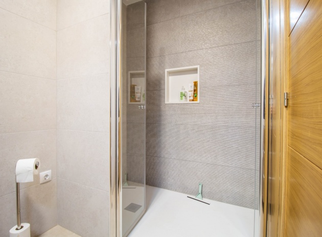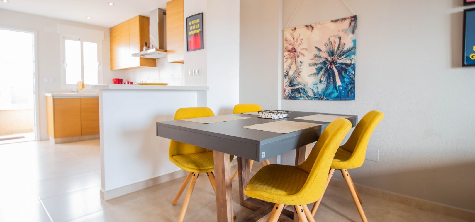 En sydostläge, som ny, två sovrum, första våningen lägenhet i Punta Prima, belägen bara 10 minuters promenad till Punta Marina kommersiella centrum, där du hittar JYSK, snabbköp, McDonalds, butiker, cafébarer/restauranger. Stranden ligger 5 minuter med bil, plus ett sjukhus och staden Torrevieja, känd för sin småbåtshamn och populära strandpromenad. Alla bekvämligheter på Orihuela Costa, inklusive shoppingcentret La Zenia Boulevard ligger inom en radie på 10 minuters bilresa och för golfare ett stort urval av banor. Själva komplexet har 2 gemensamma pooler (en är täckt och uppvärmd), trädgårdar, barnområde, spa/jacuzzi och biohälsosamt gym. Denna lägenhet har möblerats till en fantastisk standard och består av: vardagsrum/matsal med skjutdörrar ut till en rymlig terrass, som erbjuder gott om plats för uteservering och utsikt över den gemensamma poolen och trädgården; rymligt kök med öppen planlösning med bardisk, dörr som leder till en uteplats på baksidan och dörr som leder till verktyget; två dubbelrum, master med tillgång till terrassen, lådor i den inbyggda garderoben och eget duschrum; ytterligare modernt duschrum. Extrafunktionerna inkluderar luftkonditionering med kanal, golvuppvärmda badrum, plus att det finns en hiss i kvarteret och en underjordisk parkeringsplats. Du får alla "nybyggda" fördelar med denna fantastiska lägenhet.