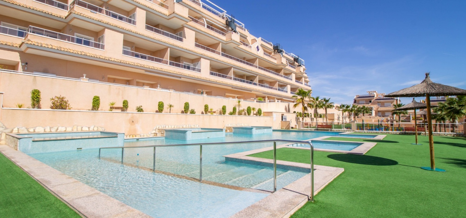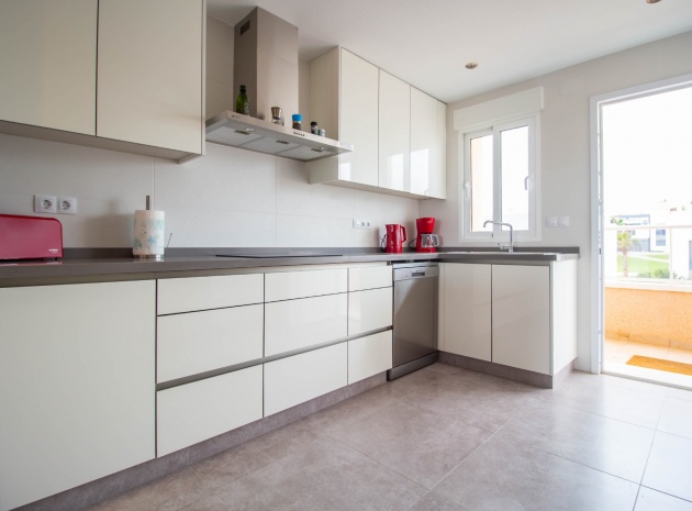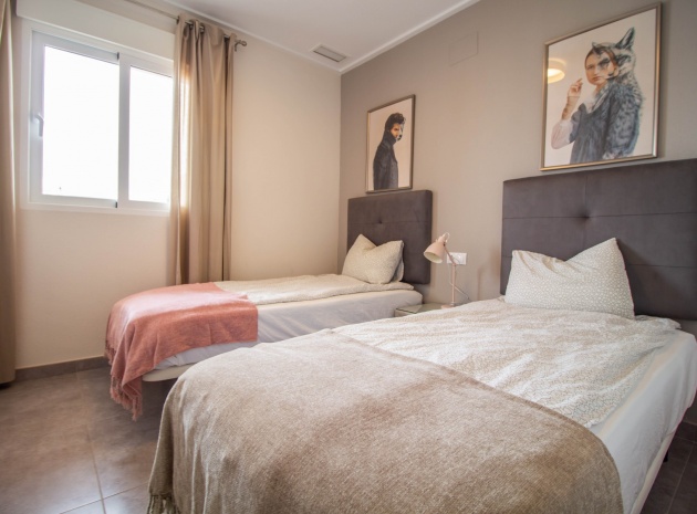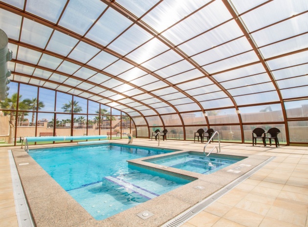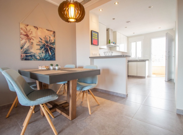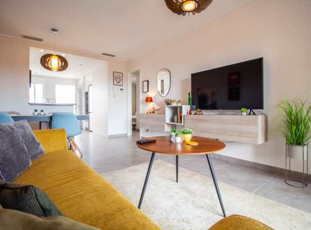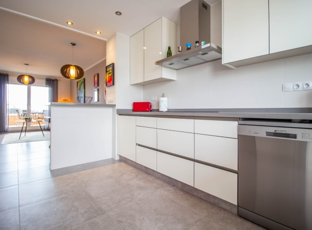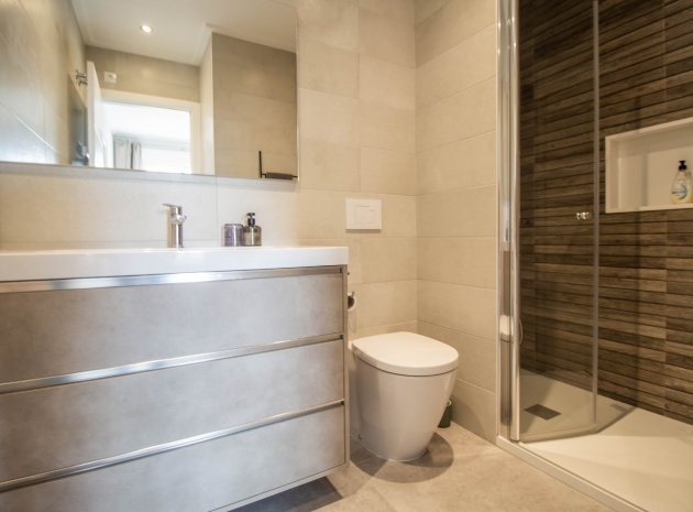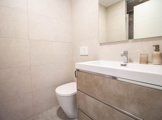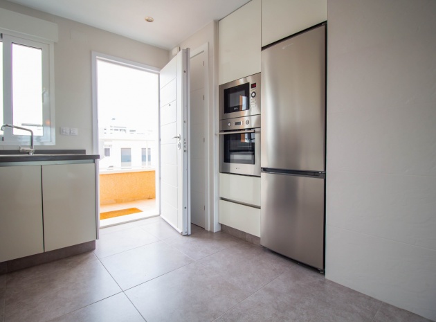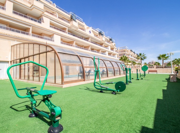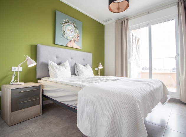 En sydostläge, som ny, två sovrum, första våningen lägenhet i Punta Prima, belägen bara 10 minuters promenad till Punta Marina kommersiella centrum, där du hittar JYSK, snabbköp, McDonalds, butiker, cafébarer/restauranger. Stranden ligger 5 minuter med bil, plus ett sjukhus och staden Torrevieja, känd för sin småbåtshamn och populära strandpromenad. Alla bekvämligheter på Orihuela Costa, inklusive shoppingcentret La Zenia Boulevard ligger inom en radie på 10 minuters bilresa och för golfare ett stort urval av banor. Själva komplexet har 2 gemensamma pooler (en är täckt och uppvärmd), trädgårdar, barnområde, spa/jacuzzi och biohälsosamt gym. Lägenheten består av: vardagsrum/matsal med skjutbara glasdörrar ut till en rymlig terrass, som erbjuder gott om utrymme för uteservering, med utsikt över den gemensamma poolen och trädgårdsområdet; rymligt kök med öppen planlösning med bardisk, dörr som leder till en uteplats på baksidan och dörr som leder till verktyget; två dubbelrum, master med tillgång till terrassen, lådor i den inbyggda garderoben och eget duschrum; ytterligare modernt duschrum. Extrafunktionerna inkluderar luftkonditionering med kanal, golvuppvärmda badrum, plus att det finns en hiss i kvarteret och en underjordisk parkeringsplats. Du får alla "nybyggda" fördelar med denna fantastiska lägenhet.