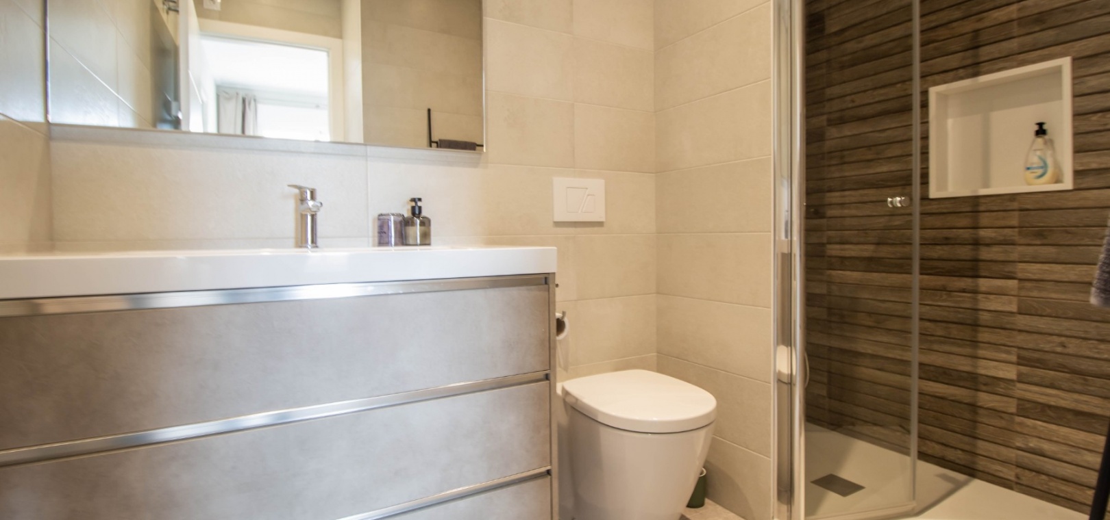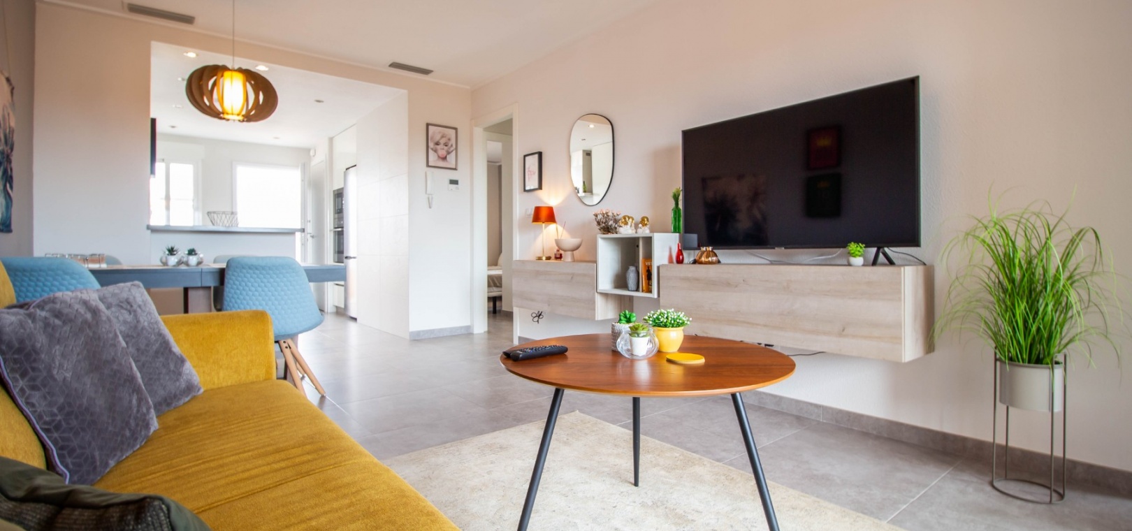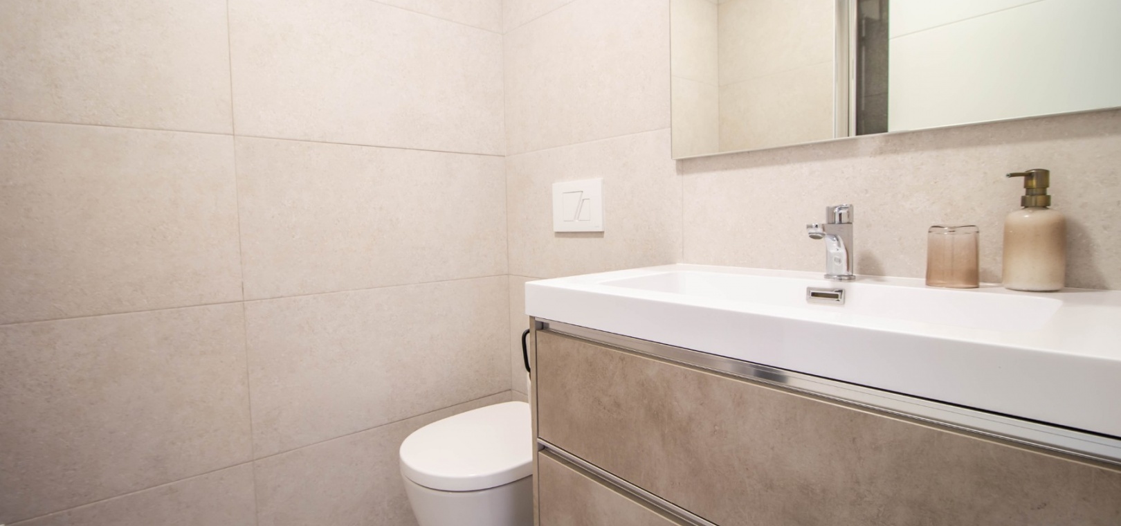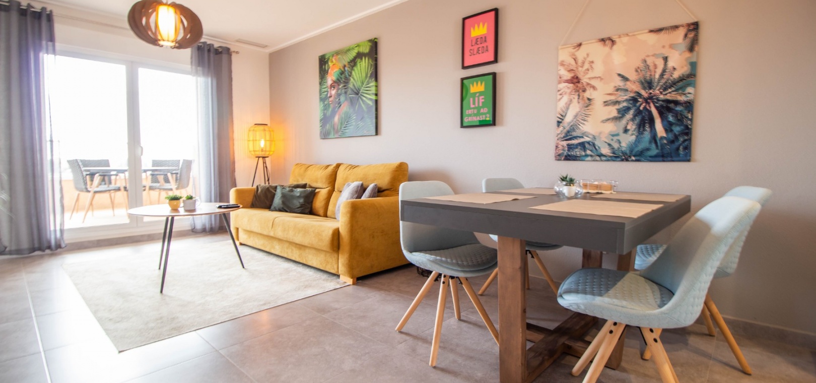 En sydostläge, som ny, två sovrum, första våningen lägenhet i Punta Prima, belägen bara 10 minuters promenad till Punta Marina kommersiella centrum, där du hittar JYSK, snabbköp, McDonalds, butiker, cafébarer/restauranger. Stranden ligger 5 minuter med bil, plus ett sjukhus och staden Torrevieja, känd för sin småbåtshamn och populära strandpromenad. Alla bekvämligheter på Orihuela Costa, inklusive shoppingcentret La Zenia Boulevard ligger inom en radie på 10 minuters bilresa och för golfare ett stort urval av banor. Själva komplexet har 2 gemensamma pooler (en är täckt och uppvärmd), trädgårdar, barnområde, spa/jacuzzi och biohälsosamt gym. Lägenheten består av: vardagsrum/matsal med skjutbara glasdörrar ut till en rymlig terrass, som erbjuder gott om utrymme för uteservering, med utsikt över den gemensamma poolen och trädgårdsområdet; rymligt kök med öppen planlösning med bardisk, dörr som leder till en uteplats på baksidan och dörr som leder till verktyget; två dubbelrum, master med tillgång till terrassen, lådor i den inbyggda garderoben och eget duschrum; ytterligare modernt duschrum. Extrafunktionerna inkluderar luftkonditionering med kanal, golvuppvärmda badrum, plus att det finns en hiss i kvarteret och en underjordisk parkeringsplats. Du får alla "nybyggda" fördelar med denna fantastiska lägenhet.