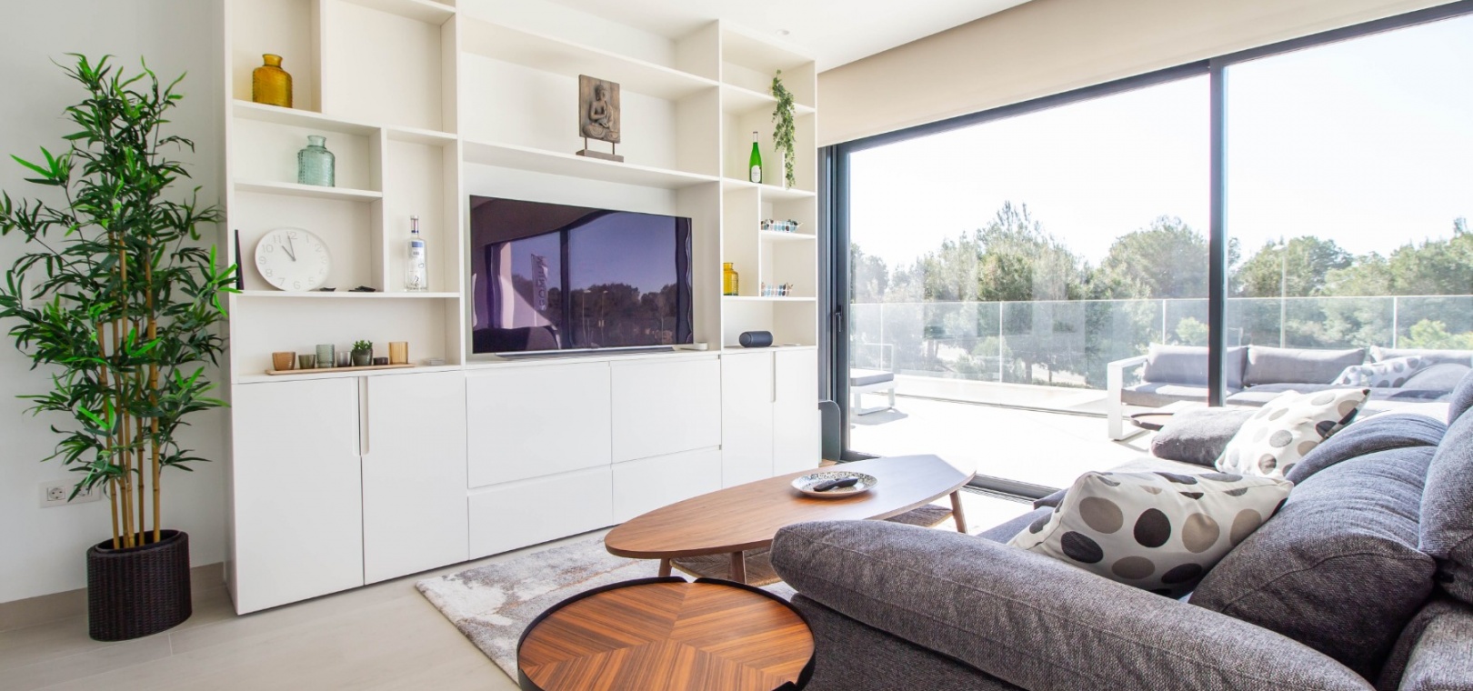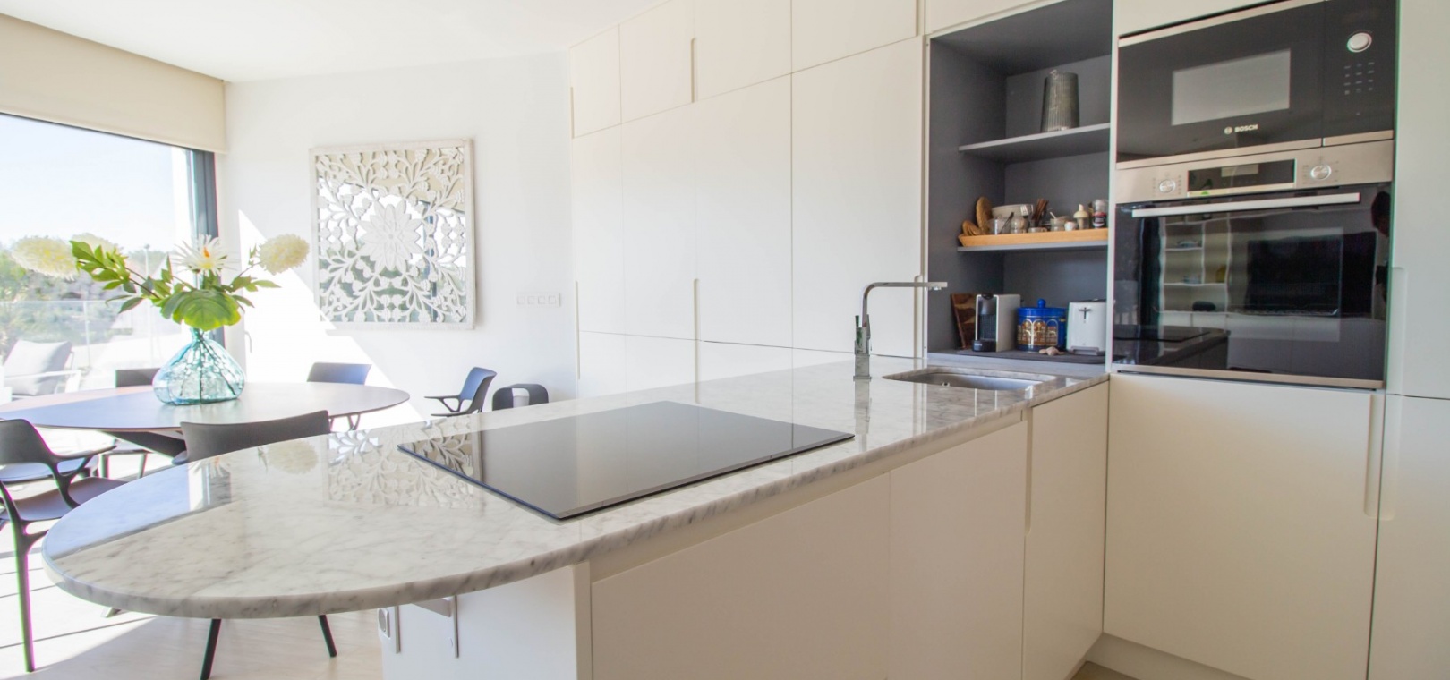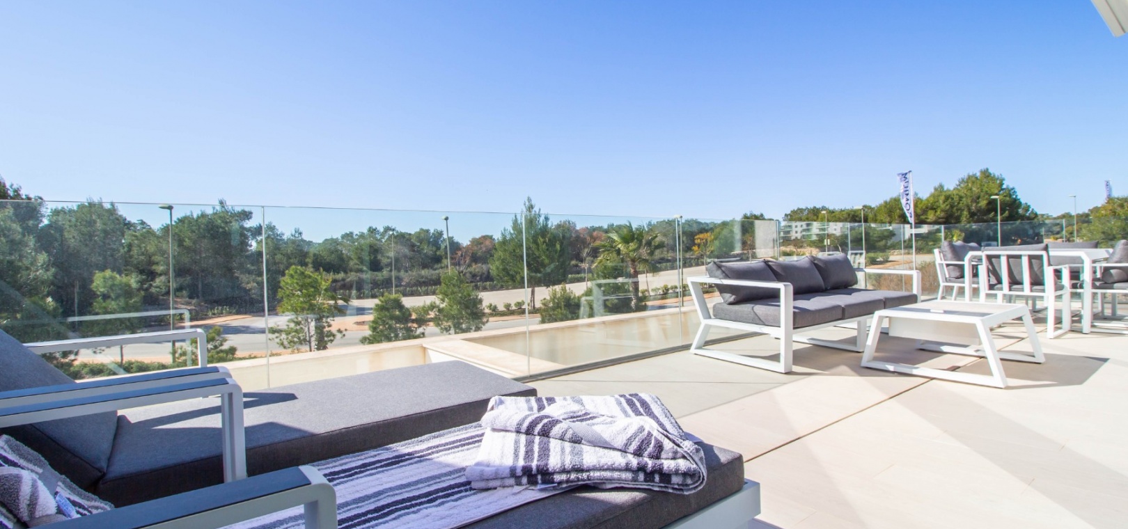 En söderläge lägenhet med tre sovrum på första våningen i Las Colinas Golf Resort, en prestigefylld 5-stjärnig resort med klubbhus, restaurang, bar och stormarknad. Bara fem minuter med bil har du alla bekvämligheter i San Miguel de Salinas; 10 minuter har du Villamartin eller till och med Campoamor och kusten med en mängd bekvämligheter och stränder. Denna rymliga lägenhet, byggd år 2000, på cirka 110 m2 erbjuder öppen planlösning, med vardagsrum/matsal med skjutdörrar från vägg till vägg som leder direkt ut till den mest otroliga terrassen, koppla av medan du njuter av en fridfull utsikt över ett skogsområde och vidsträckt havsutsikt; modernt utrustat kök; tre dubbelrum med inbyggda garderober, master bedroom med terrass och eget badrum; ytterligare ett familjebadrum med dusch. Komplexet inkluderar en hiss och ett fantastiskt gemensamt poolområde, plus extrafunktioner som ingår i fastigheten inkluderar: kanal luftkonditionering, golvvärme i badrum, hemautomation, hemdörr som stänger av sovrummen, en 12 m2 stor underjordisk parkeringsplats och 8 m2 förråd.
