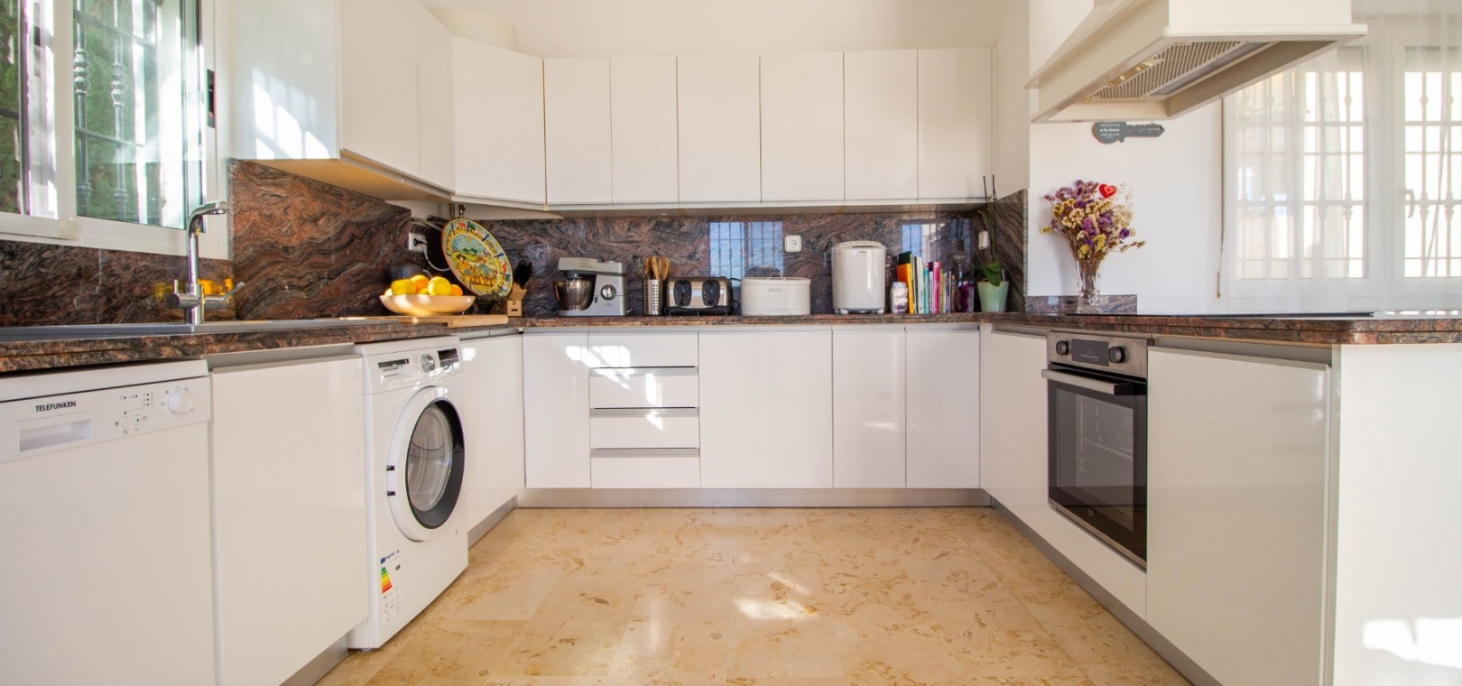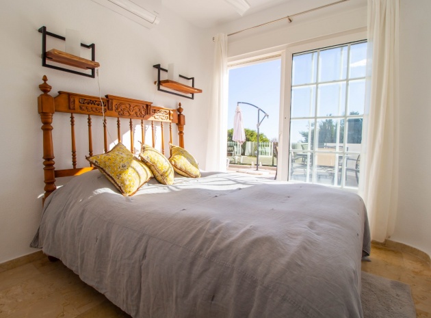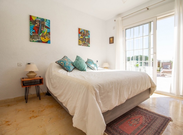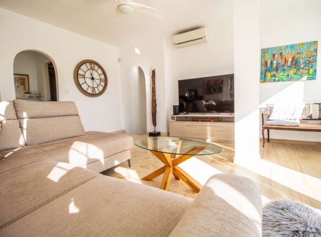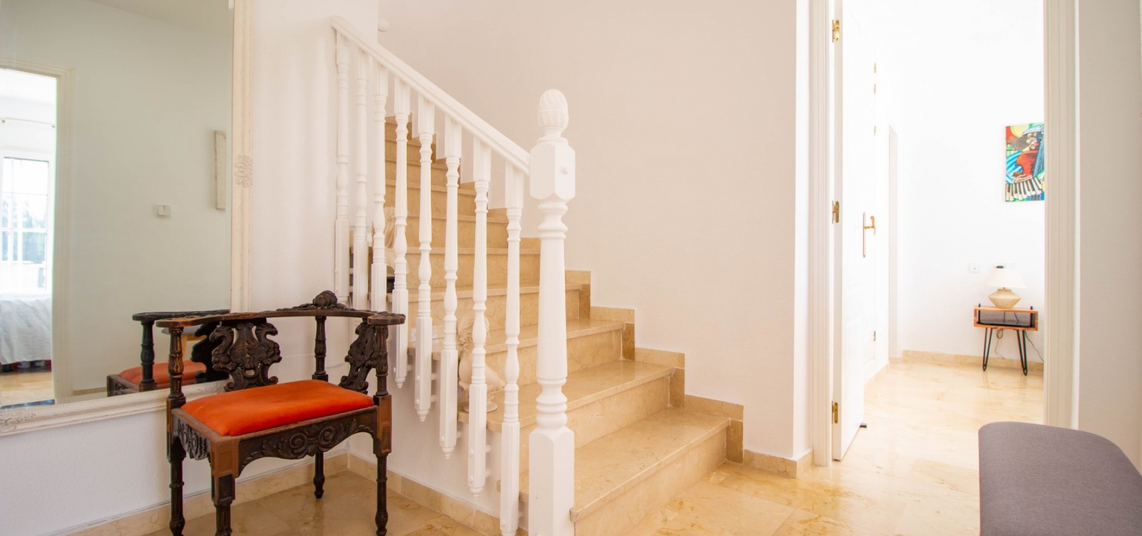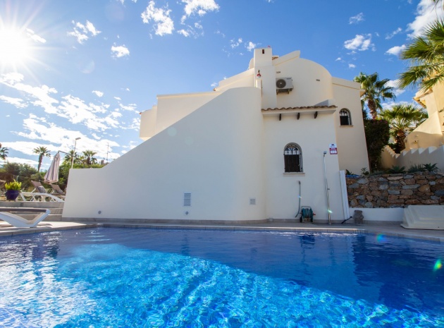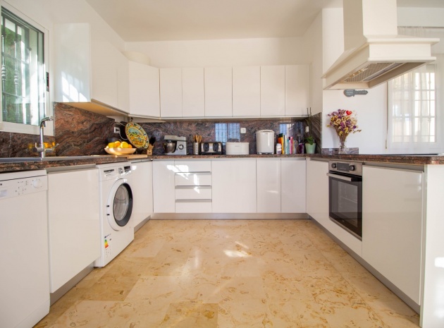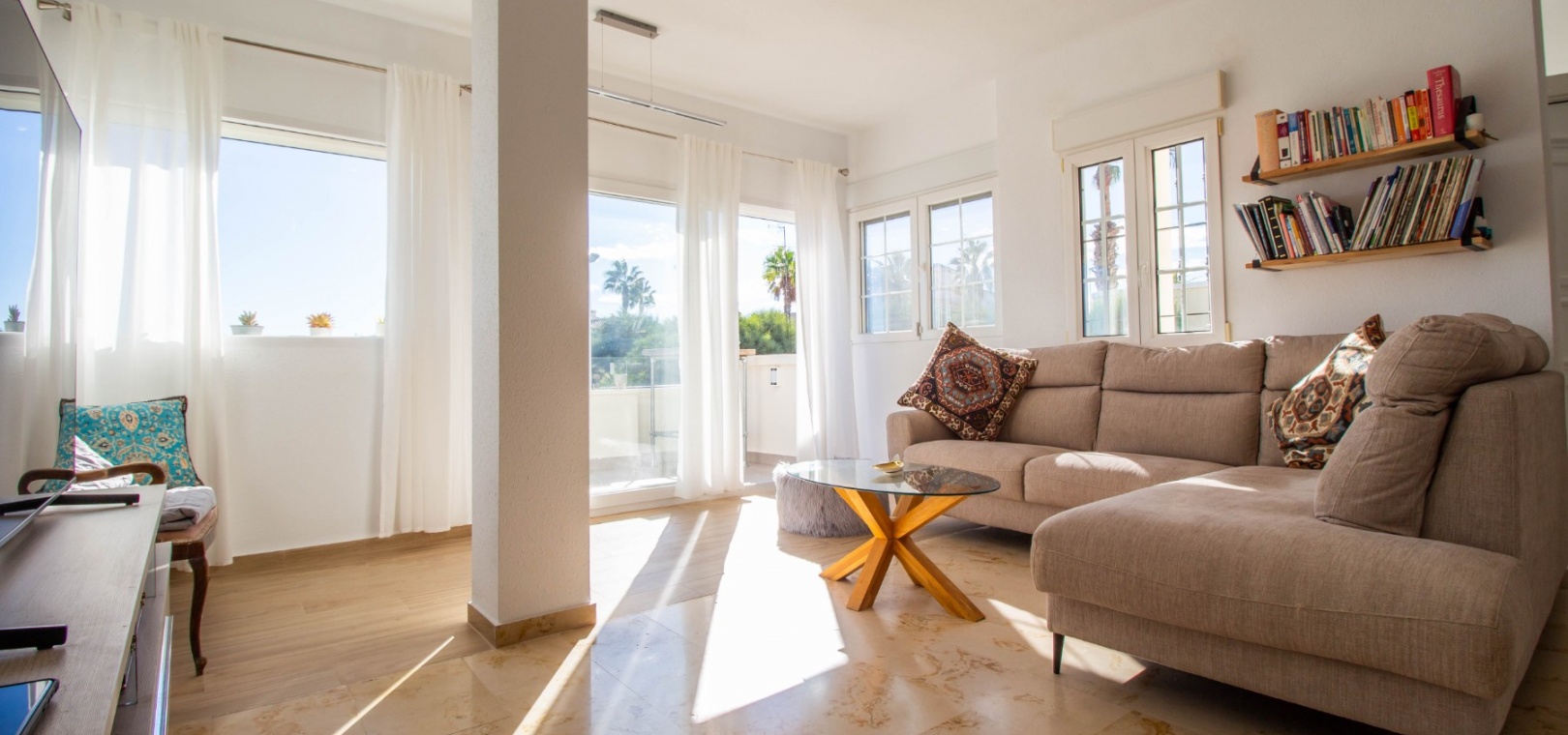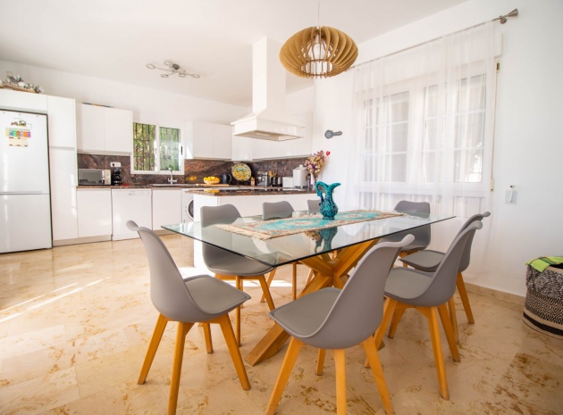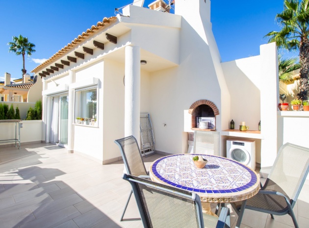 Denna fristående hörnvilla med fyra sovrum, som vetter mot sydost i Las Ramblas Golf, har renoverats omfattande och erbjuder en fridfull utsikt över skogen, som också ligger intill Campoamors golfbana. De närmaste barerna, restaurangerna och butikerna finns i La Fuentes centrum, som ligger cirka 5 minuter med bil, plus att det finns en stormarknad med storkedja. Stränderna längs Orihuela Costas kust ligger bara 10 minuters bilresa bort, plus att du har köpcentret La Zenia Boulevard där. Denna villa på cirka 161m2 fördelar sig med bostaden på första våningen, inklusive: vardagsrum med breda skjutdörrar som leder ut till en otroligt rymlig terrass, som har tillgång upp till det privata 35m2 solarium och grillplats; matplats som leder in i ett välutrustat kök med öppen planlösning; modernt duschrum. På bottenvåningen finns fyra dubbelrum, alla med inbyggda garderober, och alla har tillgång till uteområdet; garderob och ytterligare två duschrum (ett med eget badrum); ytterligare rum (kontor). Det finns terrängparkering, terrass och en privat infinitypool med utsikt över skogsområdet. Fastigheten har luftkonditionering och är ett måste att se.