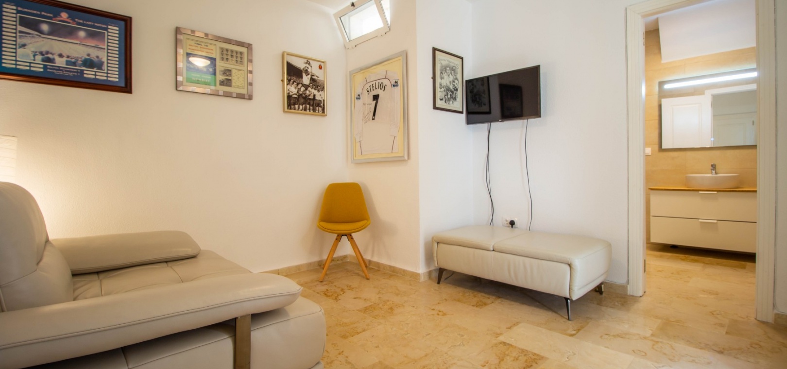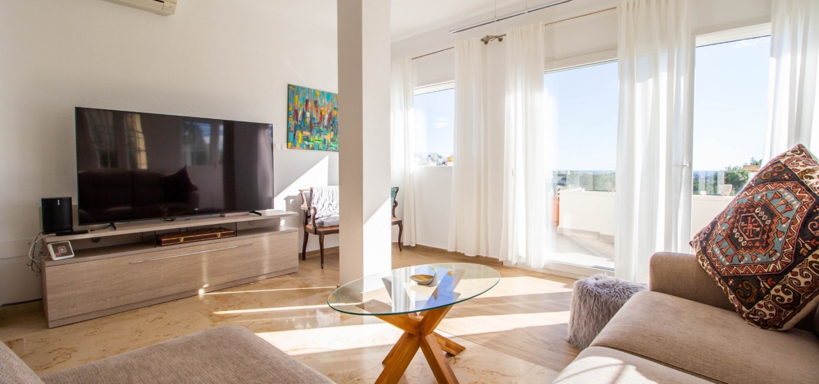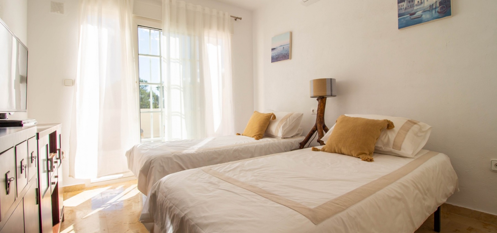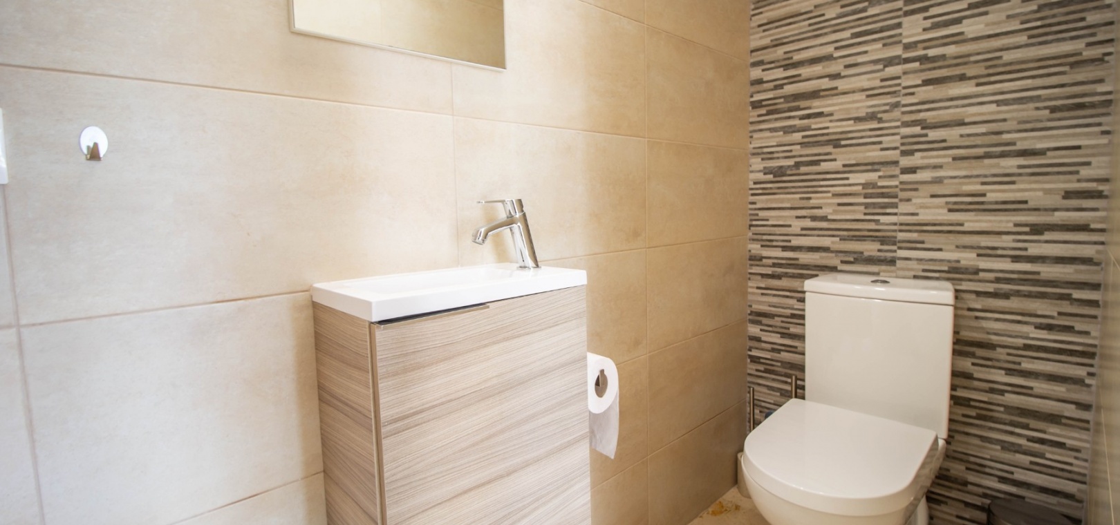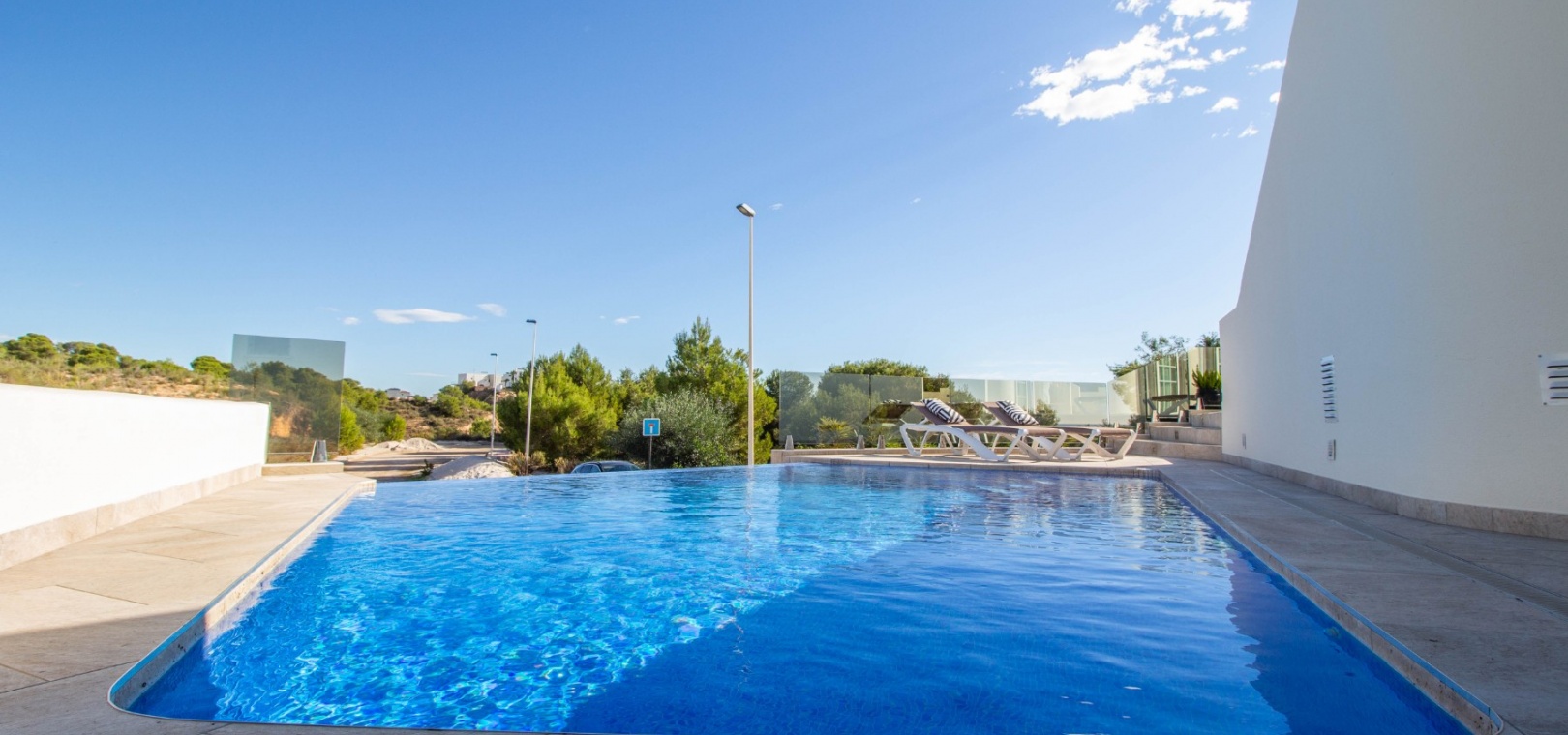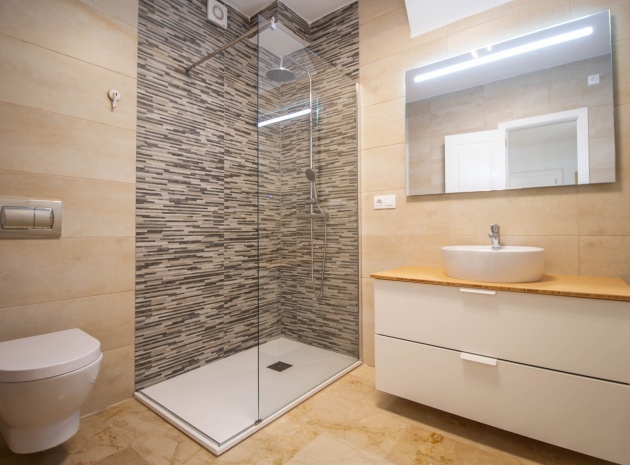 Denna fristående hörnvilla med fyra sovrum, som vetter mot sydost i Las Ramblas Golf, har renoverats omfattande och erbjuder en fridfull utsikt över skogen, som också ligger intill Campoamors golfbana. De närmaste barerna, restaurangerna och butikerna finns i La Fuentes centrum, som ligger cirka 5 minuter med bil, plus att det finns en stormarknad med storkedja. Stränderna längs Orihuela Costas kust ligger bara 10 minuters bilresa bort, plus att du har köpcentret La Zenia Boulevard där. Denna villa på cirka 161m2 fördelar sig med bostaden på första våningen, inklusive: vardagsrum med breda skjutdörrar som leder ut till en otroligt rymlig terrass, som har tillgång upp till det privata 35m2 solarium och grillplats; matplats som leder in i ett välutrustat kök med öppen planlösning; modernt duschrum. På bottenvåningen finns fyra dubbelrum, alla med inbyggda garderober, och alla har tillgång till uteområdet; garderob och ytterligare två duschrum (ett med eget badrum); ytterligare rum (kontor). Det finns terrängparkering, terrass och en privat infinitypool med utsikt över skogsområdet. Fastigheten har luftkonditionering och är ett måste att se.