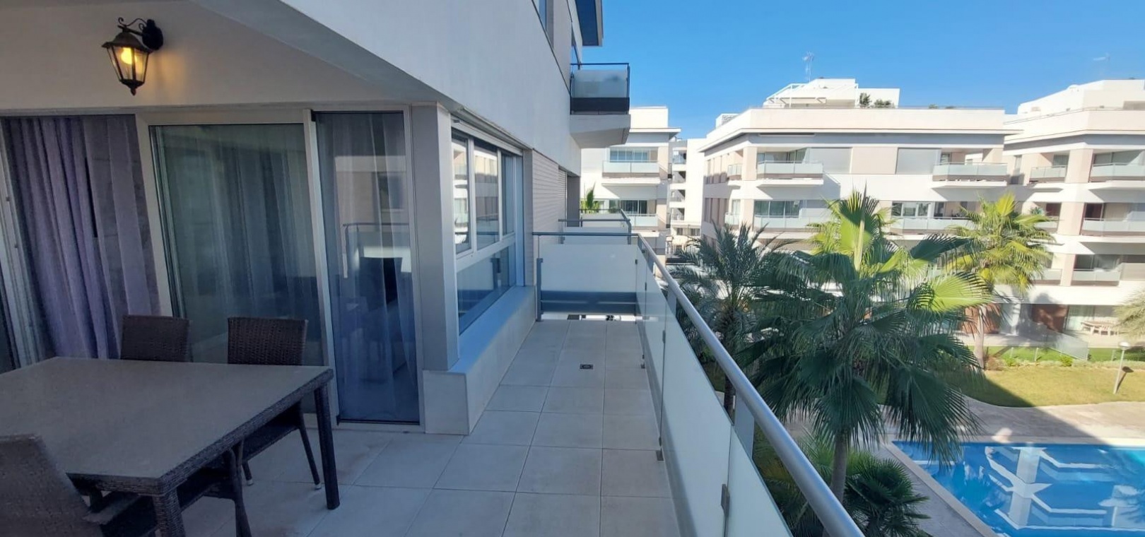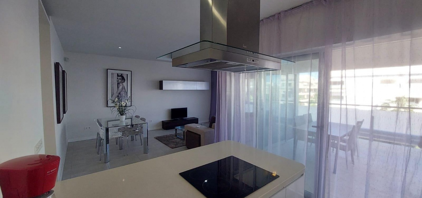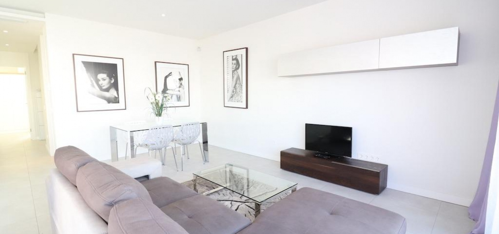 Stort vardagsrum/matsal, kök i öppen planlösning, 2 x dubbelrum med inbyggda garderober, det största sovrummet har ett eget duschrum, 1 x modernt duschrum, stor terrass på framsidan, 2 x gemensamma pooler och trädgårdar, underjordisk parkeringsplats och mycket mer.