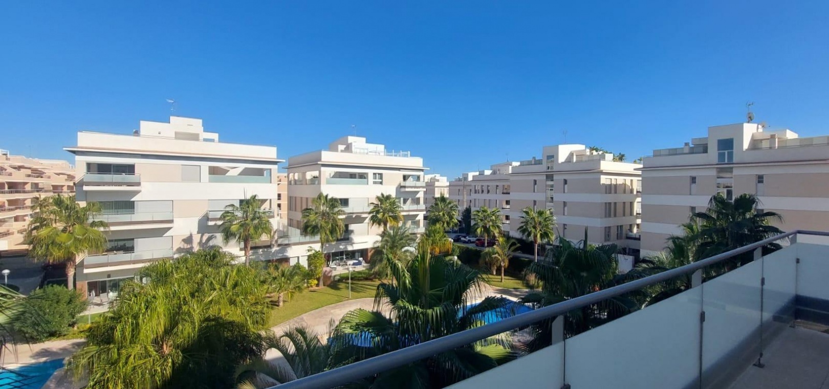 En lyxig lägenhet på 2:a våningen med 2 sovrum och 2 badrum med utsikt över den gemensamma poolen i Res. Mirador de Villamartin, Los Dolses, Villamartin, Costa Blanca.