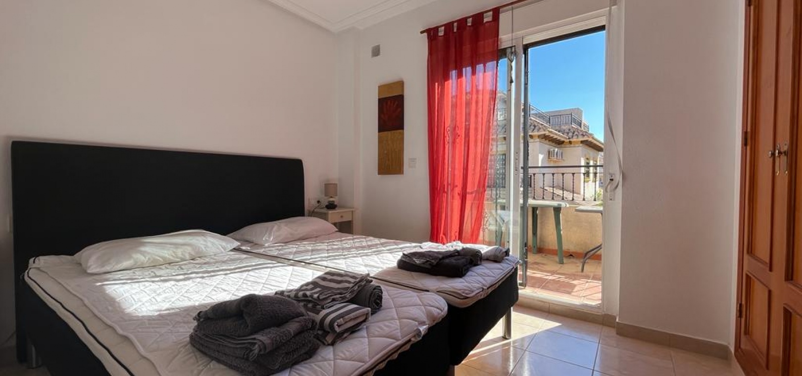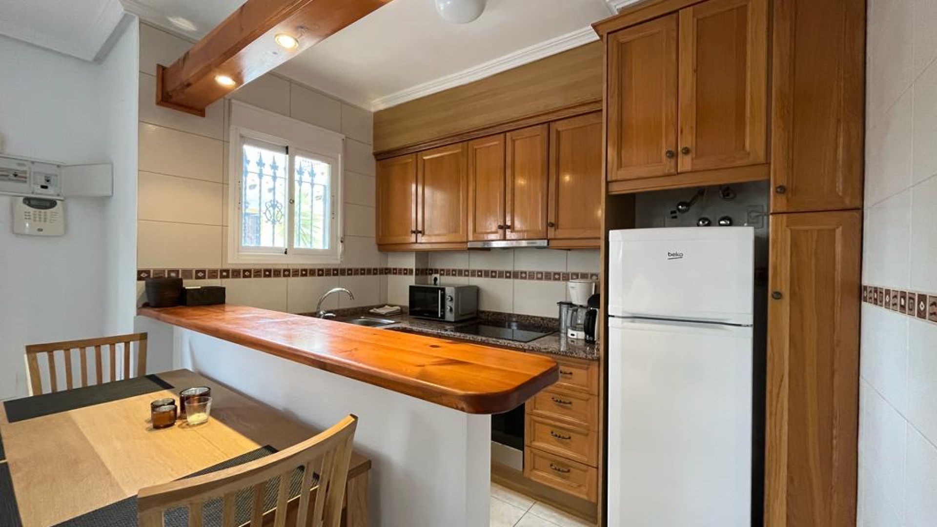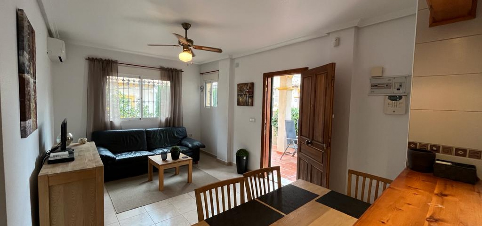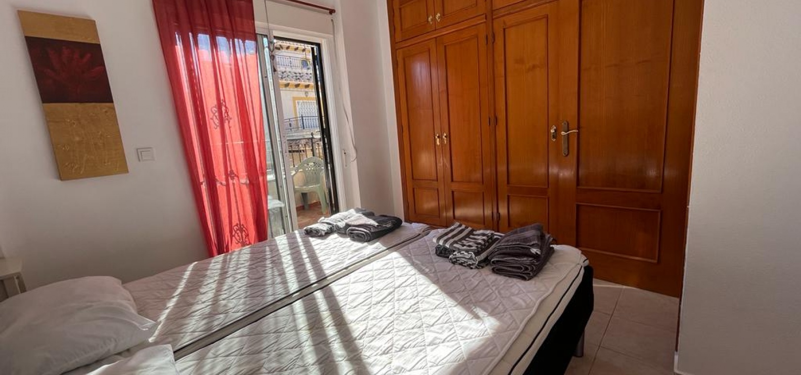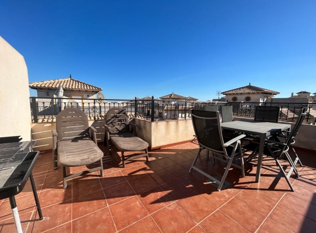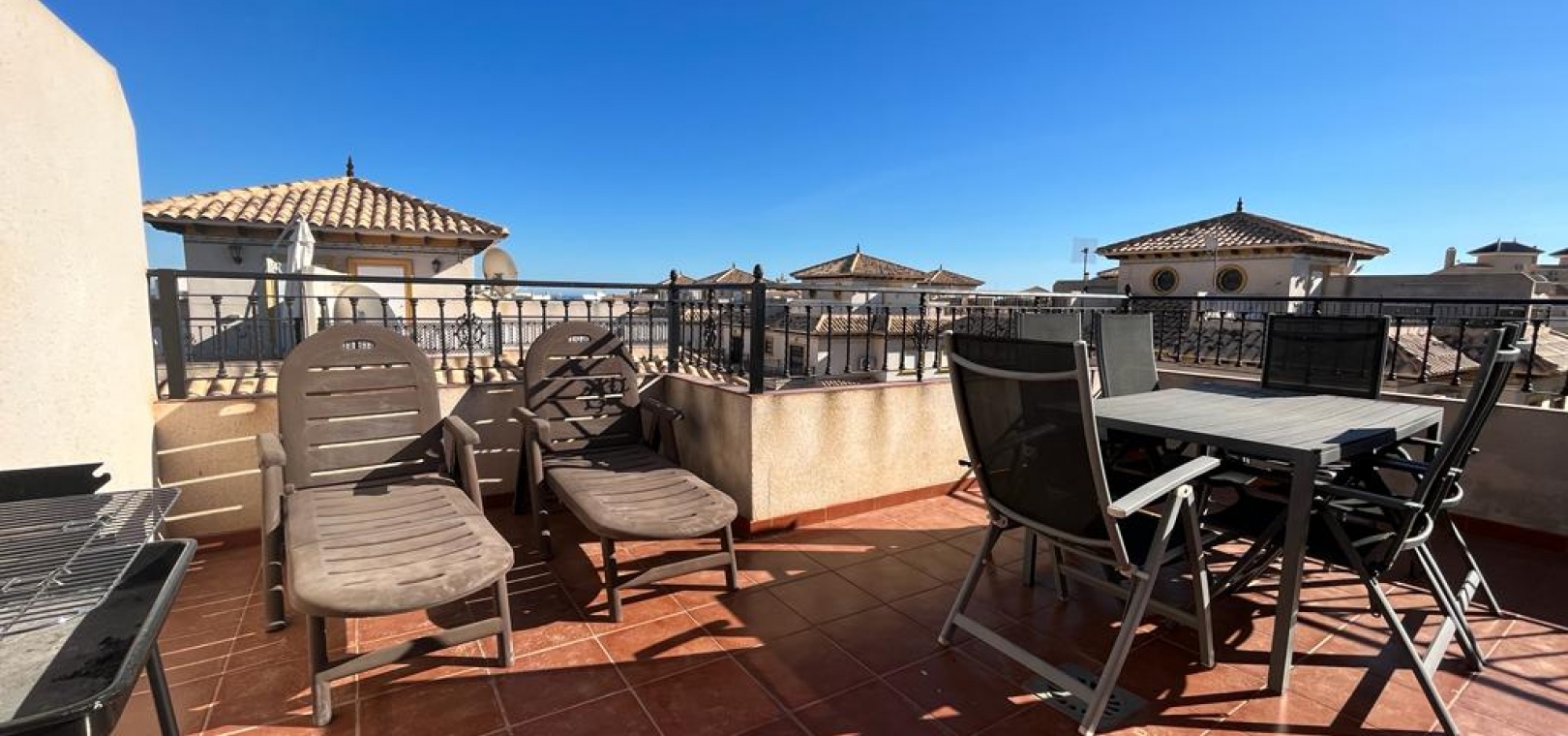 Ett söderläge fyrbäddshus med 3 sovrum och 1,5 badrum med privat takterrass i Res. San Jose, La Zenia, Costa Blanca. Denna härliga fastighet säljs i gott skick, säljs möblerad och består mycket kortfattat av följande:- På bottenvåningen finns en lounge/matsal med varm och kall A/C, ett fullt utrustat kök med öppen planlösning med alla vitvaror , 1 x dubbelrum och ett 1 x W/C. Interna trappor leder till första våningen där det finns 2 x dubbelrum båda med inbyggda garderober och varm och kall A/C och det största sovrummet har en privat solbalkong och 1 x stort duschrum. Intern trappa leder till det privata taksolarium med ett annat rum/förråd. Utanför finns en terrass på framsidan, trädgård på framsidan och sidan och en uppfart för off-road parkering. Den gemensamma poolen ligger bara en kort promenad bort. Den har ett mycket bra läge, cirka 20 minuters promenad till det mycket stora köpcentret Zenia Boulevard och cirka 15 minuters promenad från Cabo Roig-remsan där du hittar många barer, butiker och restaurang & ca 10 minuters promenad till stranden. Alicantes flygplats ligger 50 minuters bilresa bort.
