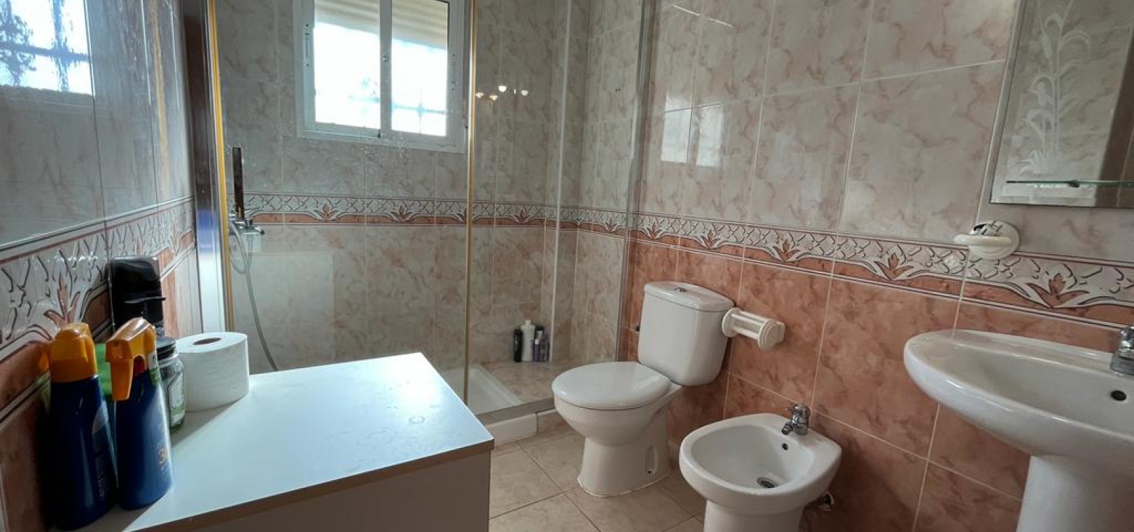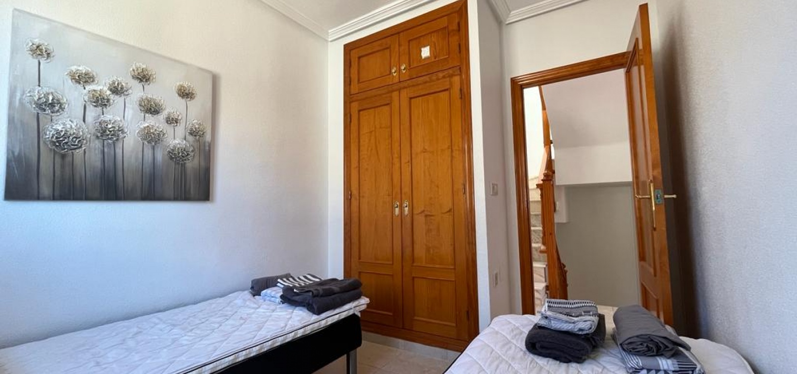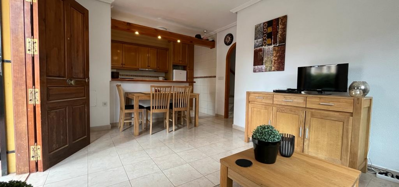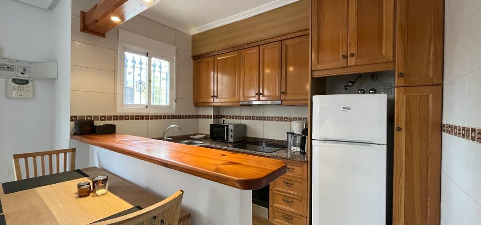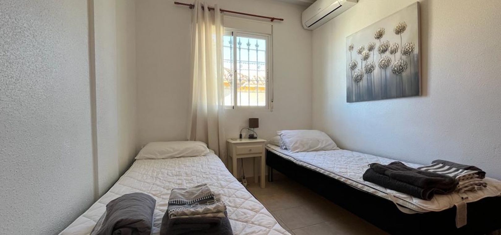 Ett söderläge fyrbäddshus med 3 sovrum och 1,5 badrum med privat takterrass i Res. San Jose, La Zenia, Costa Blanca. Denna härliga fastighet säljs i gott skick, säljs möblerad och består mycket kortfattat av följande:- På bottenvåningen finns en lounge/matsal med varm och kall A/C, ett fullt utrustat kök med öppen planlösning med alla vitvaror , 1 x dubbelrum och ett 1 x W/C. Interna trappor leder till första våningen där det finns 2 x dubbelrum båda med inbyggda garderober och varm och kall A/C och det största sovrummet har en privat solbalkong och 1 x stort duschrum. Intern trappa leder till det privata taksolarium med ett annat rum/förråd. Utanför finns en terrass på framsidan, trädgård på framsidan och sidan och en uppfart för off-road parkering. Den gemensamma poolen ligger bara en kort promenad bort. Den har ett mycket bra läge, cirka 20 minuters promenad till det mycket stora köpcentret Zenia Boulevard och cirka 15 minuters promenad från Cabo Roig-remsan där du hittar många barer, butiker och restaurang & ca 10 minuters promenad till stranden. Alicantes flygplats ligger 50 minuters bilresa bort.