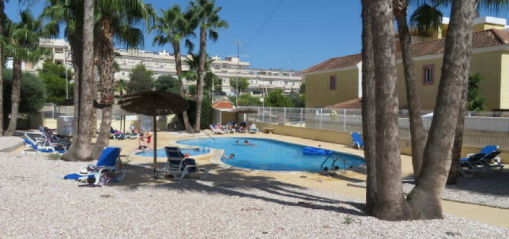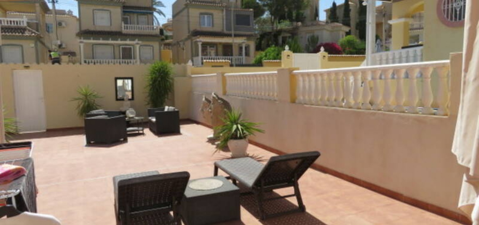 Denna fastighet har enkel tillgång till de fyra förstklassiga golfbanorna i området: Villamartin, Campoamor, Las Ramblas och Las Colinas. Stränderna Golden Orihuela Costa ligger mindre än 10 minuters bilresa bort, liksom köpcentret Zenia Boulevard (största köpcentret i Alicante-provinsen). Lokala barer, butiker, restauranger, snabbköp etc. ligger bara några minuter bort. Det finns tennisbanor och tennisträning tillgängligt på det närliggande hotellet Campoamor. Alicantes flygplats ligger 45 minuter bort och Murcia Corvera flygplats ligger 35 minuters bilresa bort.