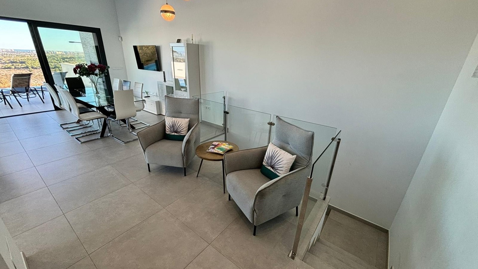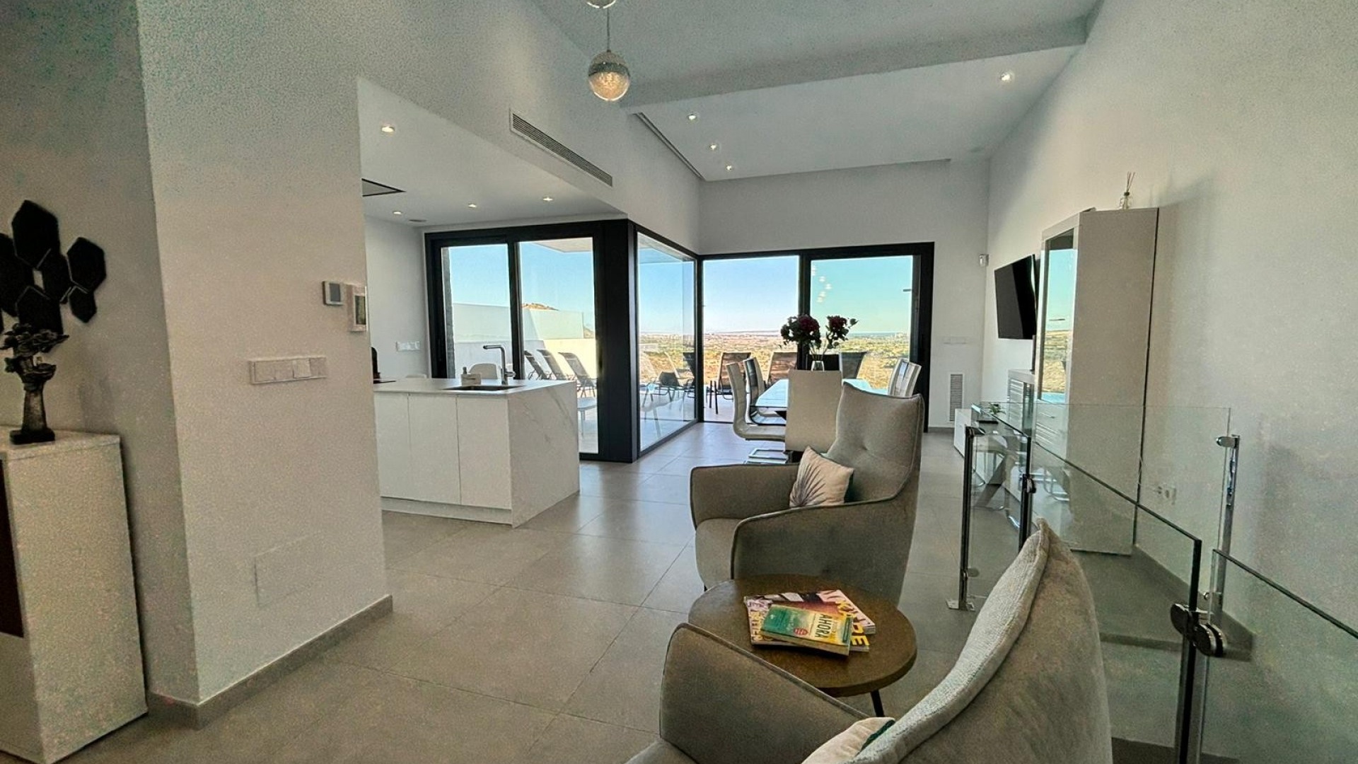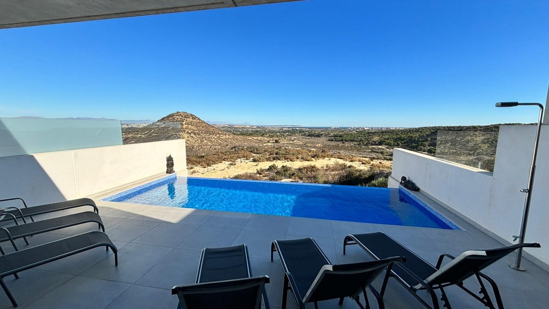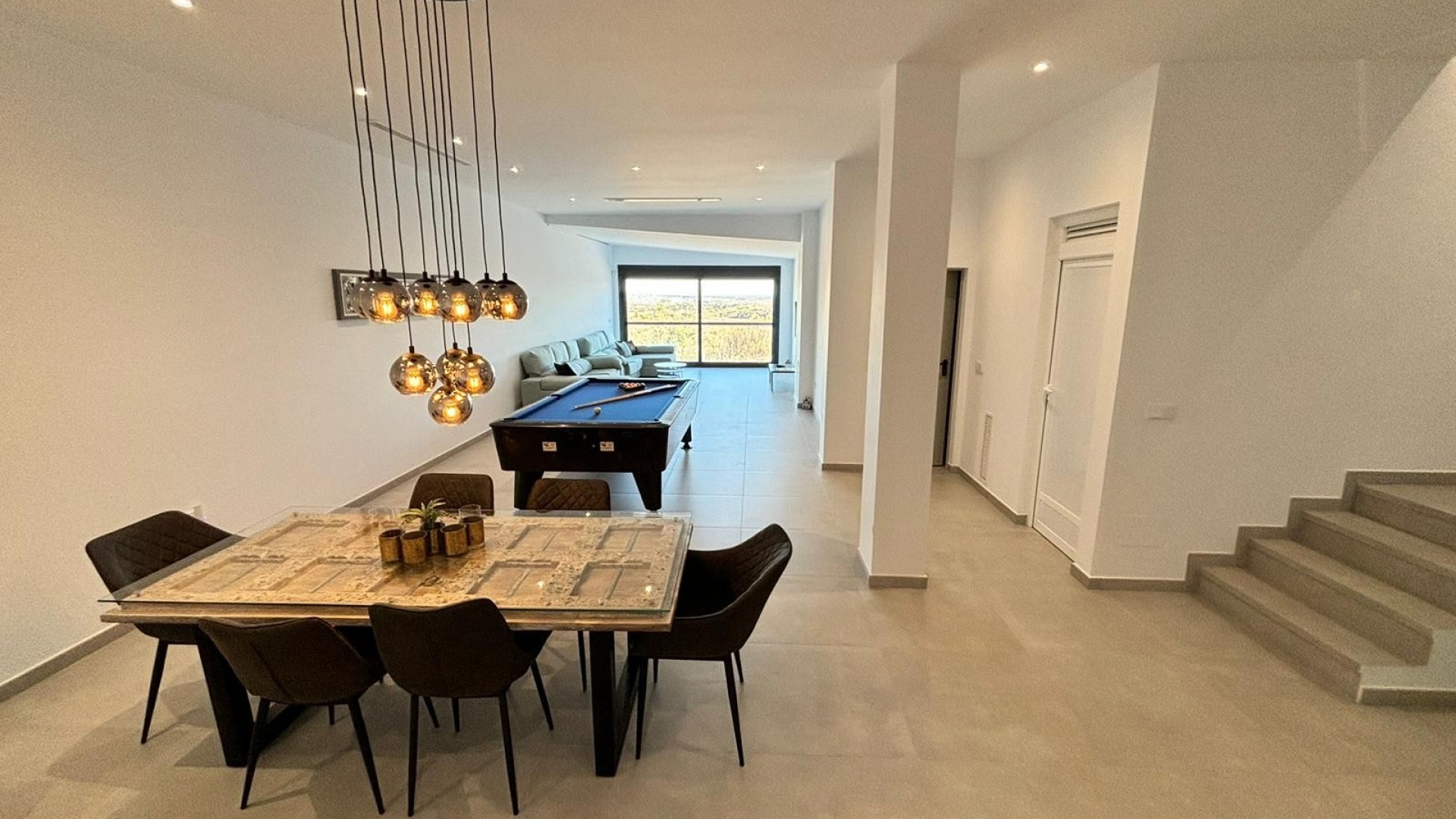 Vi är glada att kunna erbjuda marknaden denna fantastiska lyxvilla med 3 sovrum och 3 badrum med havsutsikt och infinitypool. Fastigheten har så mycket att erbjuda. När du går in i det gated komplexet genom elektriska grindar är fastigheten bara några meter till fronten. Genom den privata grinden kommer du in på tomten som har en stor solig terrass med fantastiskt infinitypoolområde med oavbruten havsutsikt. på denna våning har du ett underbart vardagsrum med öppen planlösning, kök matplats och sittgrupp med stora altandörrar som leder till poolområdet. på denna våning har du det stora sovrummet med klädkammare och eget badrum. Det finns även en separat gästwc. när du flyttar ner en våning möts du av en enorm lounge och ett underhållande område komplett med biljardbord. Här har vi ytterligare 2 dubbelrum kompletta med badrum, här har vi det interna garaget med elektriska grindar och grovkök. På det nedre planet finns en öppen planlösning som är helt förinstallerad för ytterligare luftkonditionering och vindbyar sovrum och badrum vid behov. eller bara används som mer utrymme för biorum etc. Sammantaget en måste ses fastighet för att verkligen se vilken fantastisk egenskap detta är.