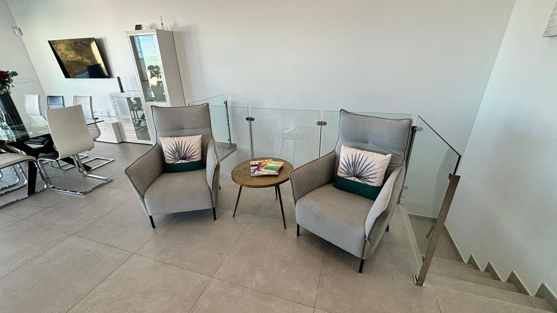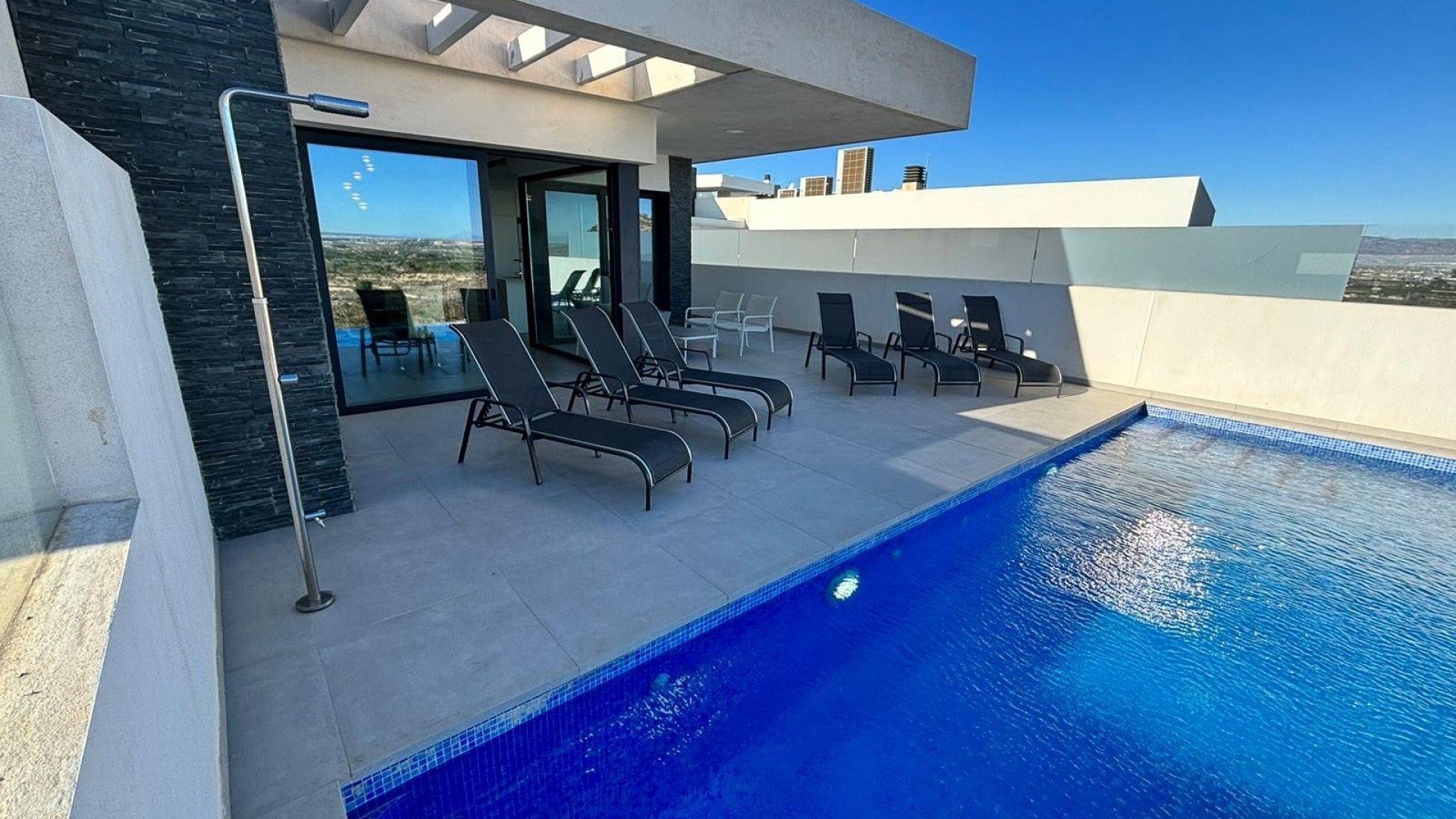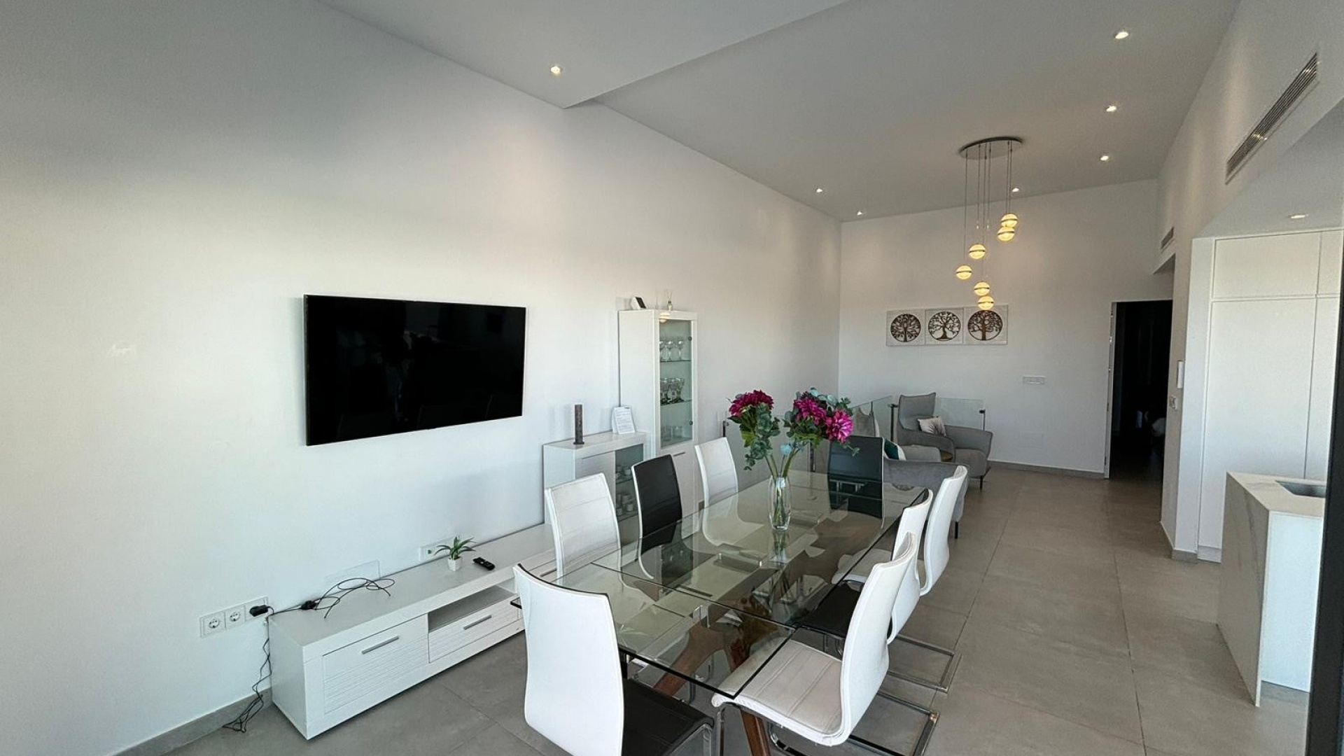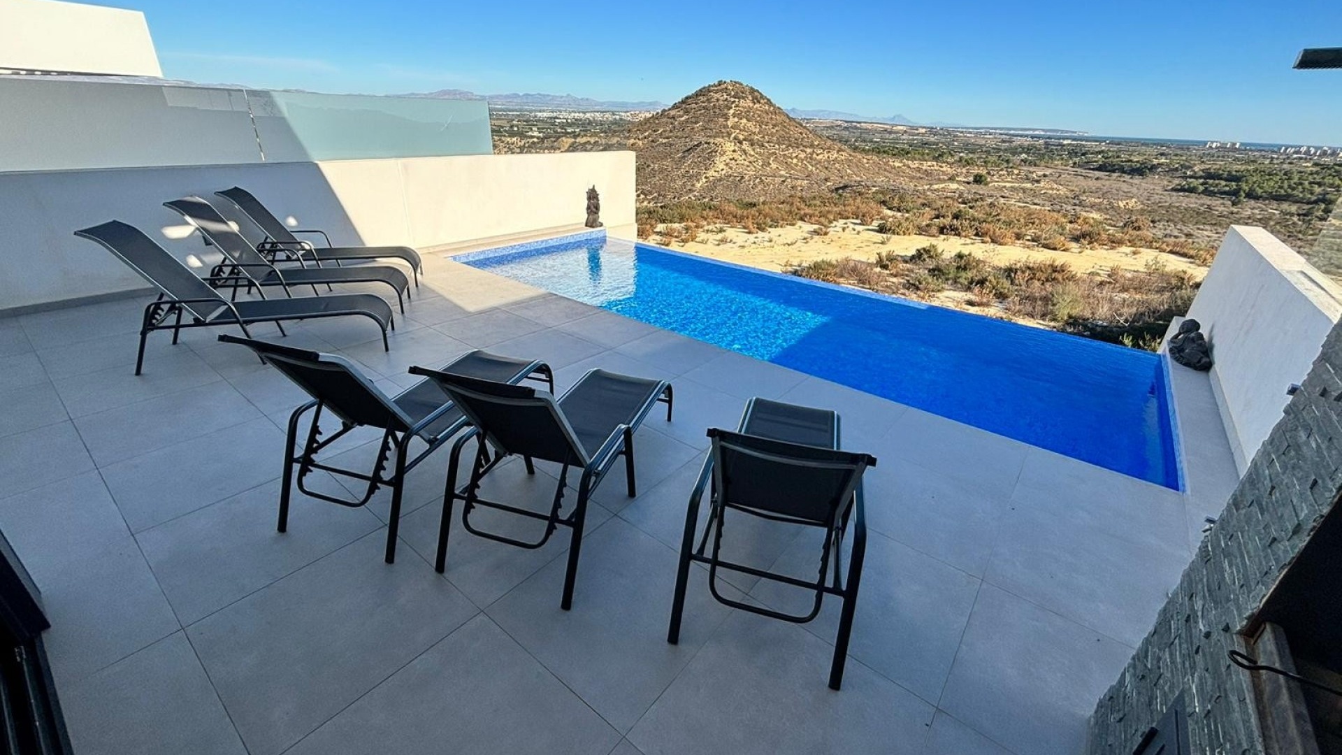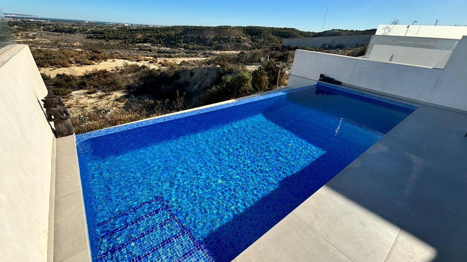 Vi är glada att kunna erbjuda marknaden denna fantastiska lyxvilla med 3 sovrum och 3 badrum med havsutsikt och infinitypool. Fastigheten har så mycket att erbjuda. När du går in i det gated komplexet genom elektriska grindar är fastigheten bara några meter till fronten. Genom den privata grinden kommer du in på tomten som har en stor solig terrass med fantastiskt infinitypoolområde med oavbruten havsutsikt. på denna våning har du ett underbart vardagsrum med öppen planlösning, kök matplats och sittgrupp med stora altandörrar som leder till poolområdet. på denna våning har du det stora sovrummet med klädkammare och eget badrum. Det finns även en separat gästwc. när du flyttar ner en våning möts du av en enorm lounge och ett underhållande område komplett med biljardbord. Här har vi ytterligare 2 dubbelrum kompletta med badrum, här har vi det interna garaget med elektriska grindar och grovkök. På det nedre planet finns en öppen planlösning som är helt förinstallerad för ytterligare luftkonditionering och vindbyar sovrum och badrum vid behov. eller bara används som mer utrymme för biorum etc. Sammantaget en måste ses fastighet för att verkligen se vilken fantastisk egenskap detta är.