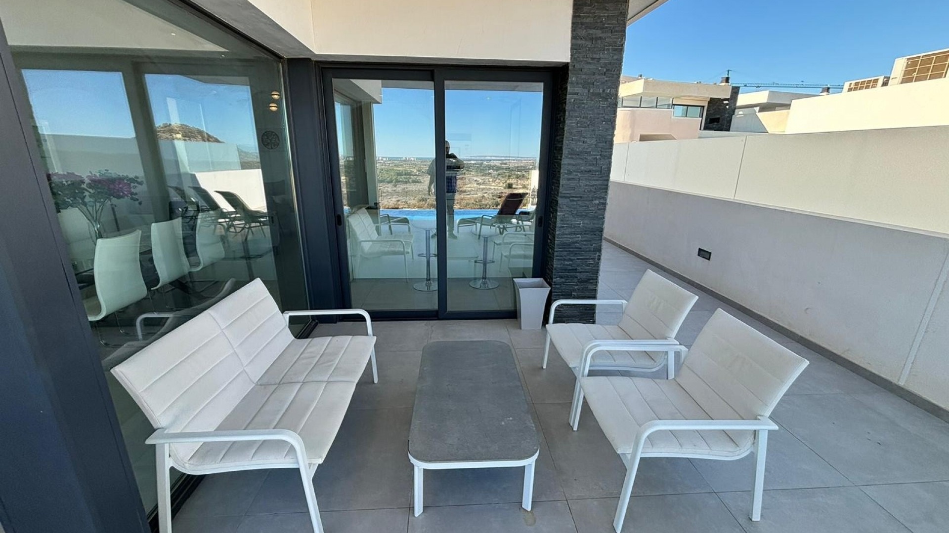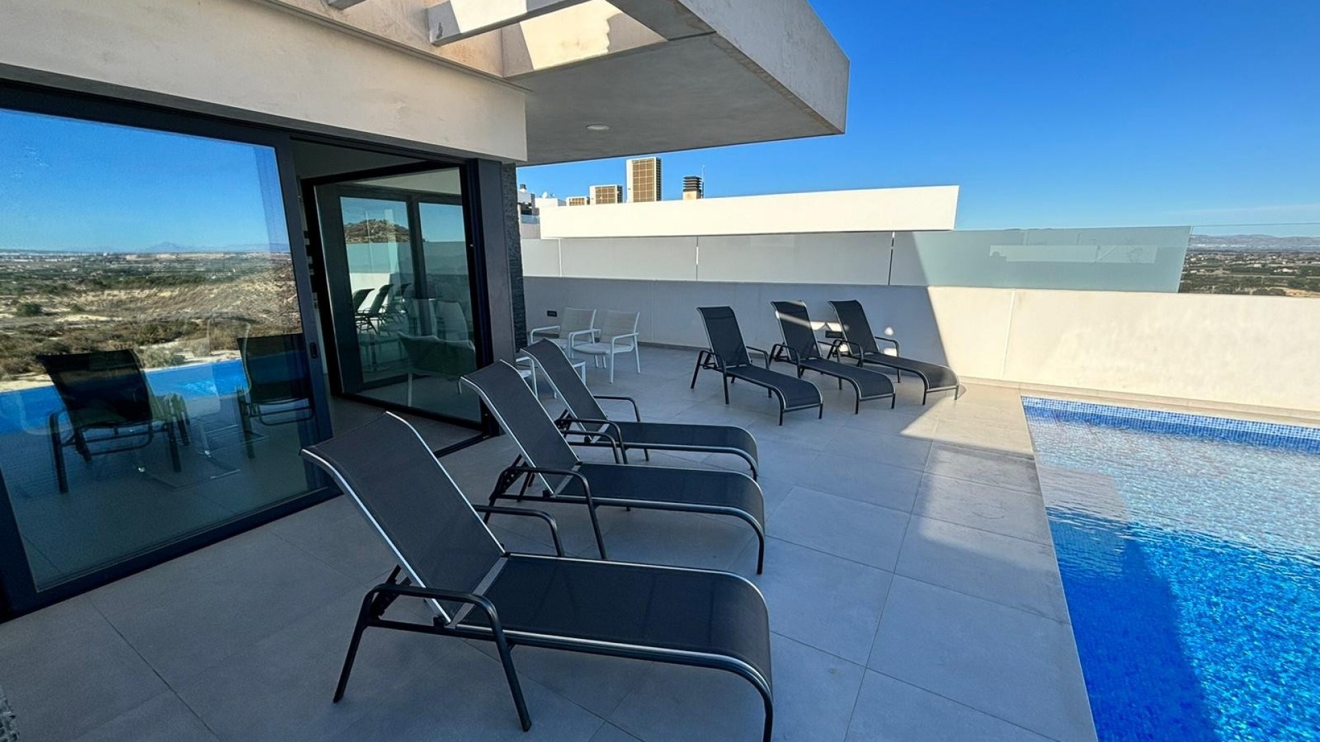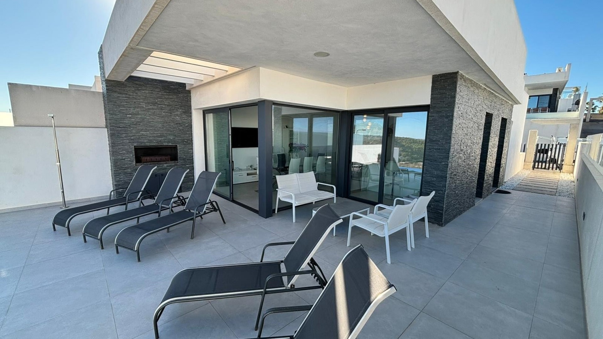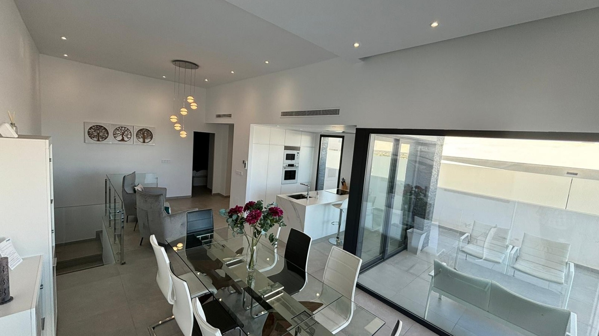 Vi är glada att kunna erbjuda marknaden denna fantastiska lyxvilla med 3 sovrum och 3 badrum med havsutsikt och infinitypool. Fastigheten har så mycket att erbjuda. När du går in i det gated komplexet genom elektriska grindar är fastigheten bara några meter till fronten. Genom den privata grinden kommer du in på tomten som har en stor solig terrass med fantastiskt infinitypoolområde med oavbruten havsutsikt. på denna våning har du ett underbart vardagsrum med öppen planlösning, kök matplats och sittgrupp med stora altandörrar som leder till poolområdet. på denna våning har du det stora sovrummet med klädkammare och eget badrum. Det finns även en separat gästwc. när du flyttar ner en våning möts du av en enorm lounge och ett underhållande område komplett med biljardbord. Här har vi ytterligare 2 dubbelrum kompletta med badrum, här har vi det interna garaget med elektriska grindar och grovkök. På det nedre planet finns en öppen planlösning som är helt förinstallerad för ytterligare luftkonditionering och vindbyar sovrum och badrum vid behov. eller bara används som mer utrymme för biorum etc. Sammantaget en måste ses fastighet för att verkligen se vilken fantastisk egenskap detta är.