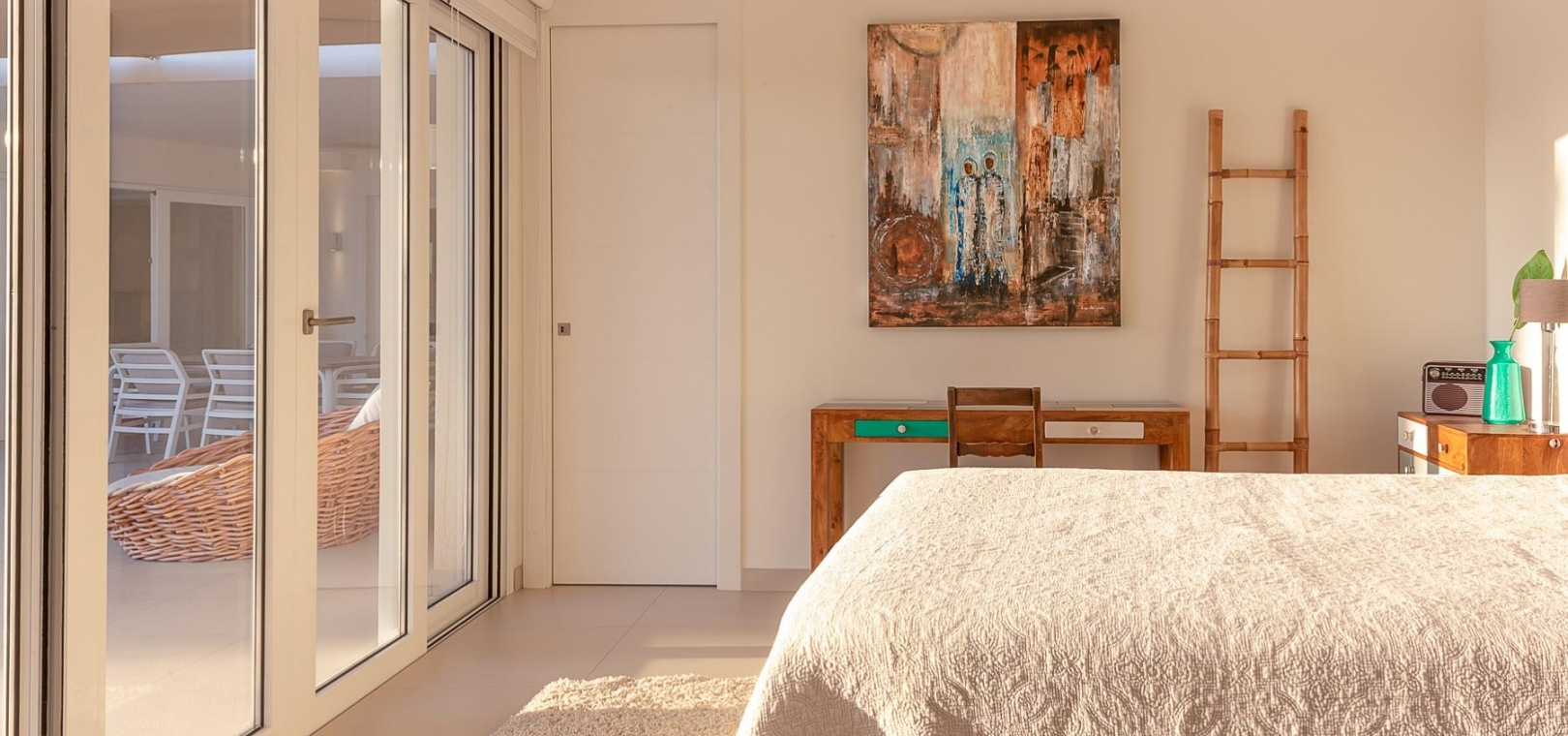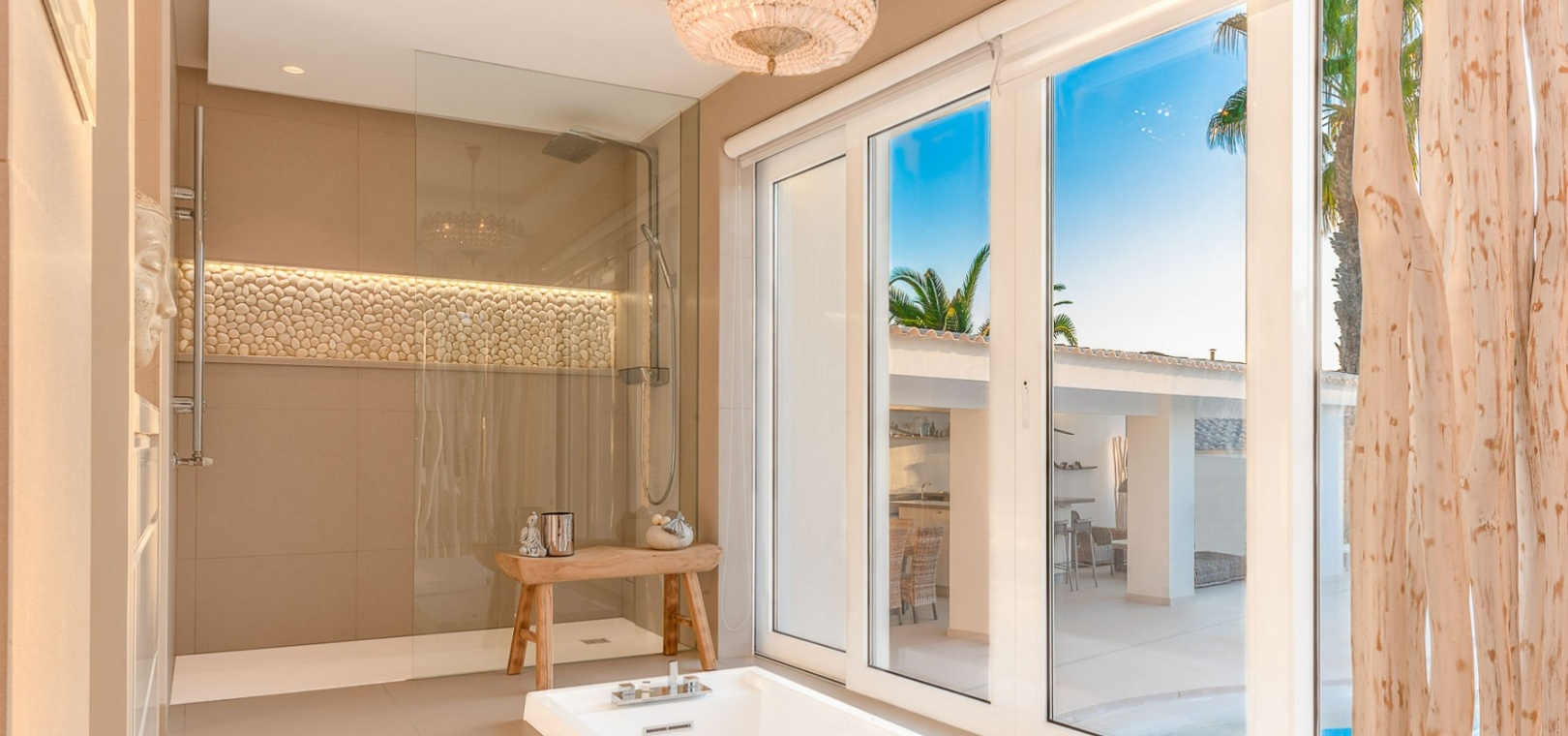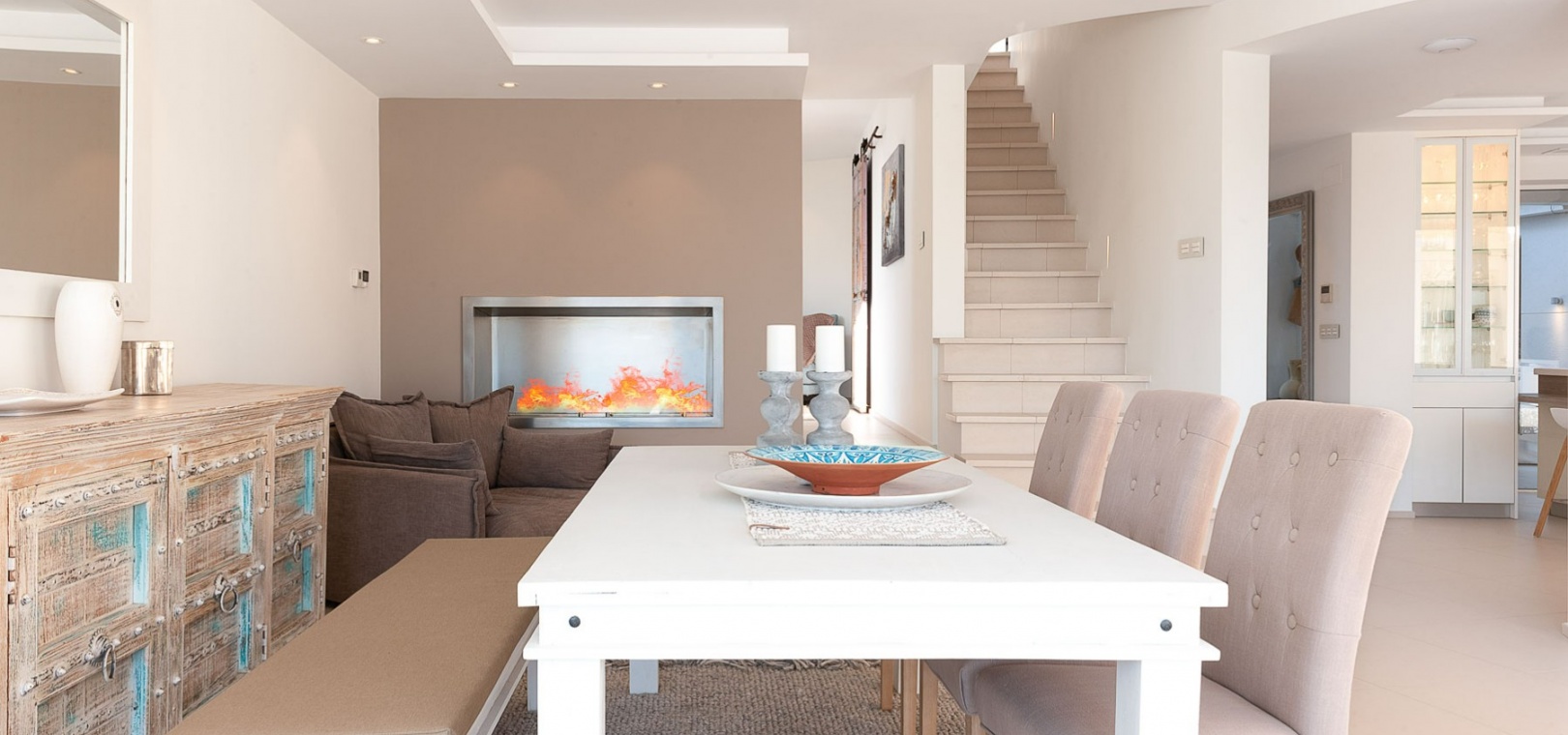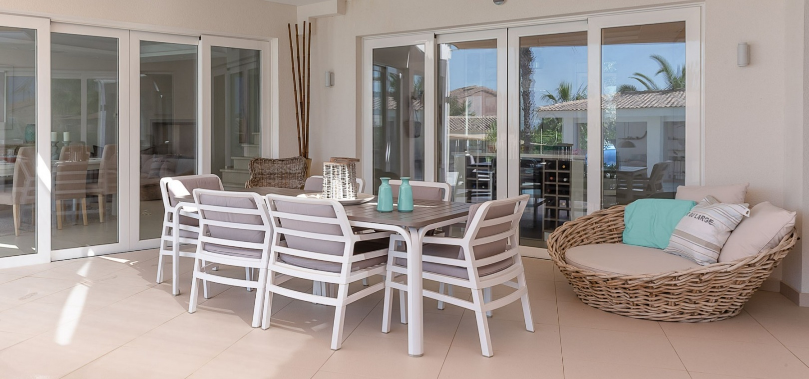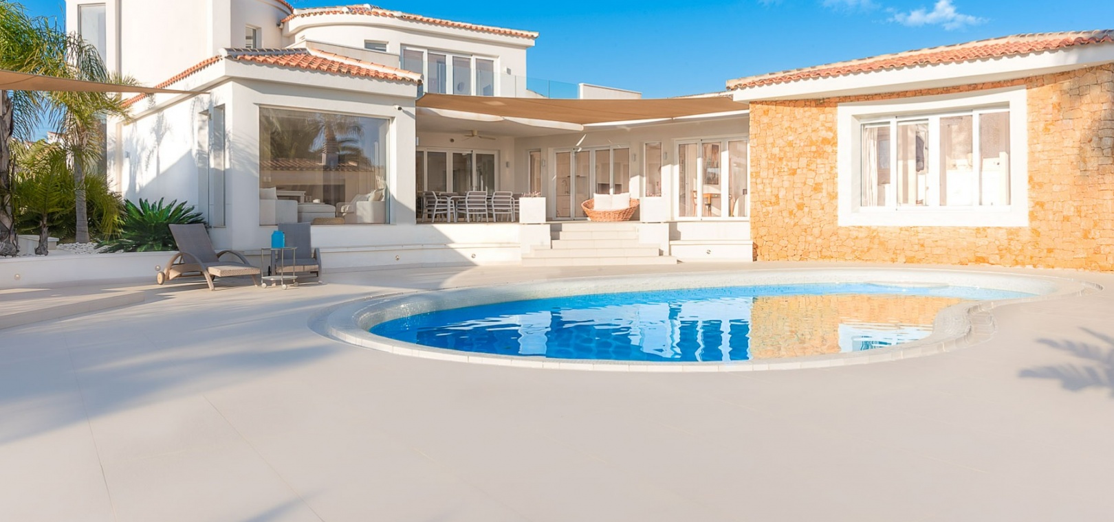 Attraktiv helrenoverad villa i centrum av Ciudad Quesada, Rojales. Detta lyxhus har unika solförhållanden och det är en fastighet med härlig utsikt. Tomten är på 2 244 m2, och fint planterad med palmer, fruktträd och olivträd. Ägaren har behållit husets charmiga stil vilket ger bostaden en särprägel av att vara ett hem. Det finns 2 kompletta utomhuskök på vardera sidan av poolen. Du kan röra dig efter solförhållandena både sommar och vinter, om du vill ha morgonsol och/eller kvällssol. I huvudbyggnaden finns 3 sovrum fördelade på 2 våningar. I trädgården finns ett garage med ytterligare en våning ovanför, med stor potential att bli ett vackert hus med vardagsrum, kök, 2 sovrum och badrum. Detta behöver renovering/renovering. Vacker utsikt från terrassen här.I trädgården finns en stor vacker saltvattenpool på 6x12m, med ljust kakel som ger en varm känsla av att bada i Karibiska havet. Vackert på kvällen med belysning. I huvuddelen kommer du in i en hall, och sedan in i ett modernt ljust kök med stora franska dubbelfönster, som vetter mot den enorma terrassen. Då har du en matplats och en soffgrupp med direkt utsikt mot poolområdet. På samma våning finns ett rymligt TV-rum. På första våningen finns ett kontor med klädkammare, sedan kommer man till en hall, samt sovrum med dusch och separat toalett. Från terrassen här kan du njuta av den underbara morgonsolen. I den andra delen av huset har du 2 sovrum och 2 badrum. Det finns stora dubbelfönster till både vardagsrum, sovrum och badrum. Ett av badrummen har dusch och bubbelbadkar. Vid badet finns stora skjutdörrar i glas, som man kan öppna ända upp. Här kan du njuta av utsikten över poolområdet, speciellt på kvällen när all belysning är tänd i både pool och trädgård. Vid altanen utanför vardagsrummet och köket finns stora ljusa kakelplattor av hög kvalitet i porslin. Samma kakel finns även i både uteköken, vid poolområdet och vid förrådet för trädgårdsmöblerna.-------------------------------- -------------------------- --------------- Isolerade golv och väggar.- Isolerade fönster och dörrar .- Vattenburen värme med termostater i varje rum på entréplan.- Hall och badrum på övervåningen har termostatstyrda värmekablar.- Uppvärmning på gas - "high end" holländskt system.- Handdukstork i badrummen.- Alla innerbelysningar är LED med dimmers.- Alla utomhusljus är LED.- Integrerad luftkonditionering, varm/kall, med rumsfördelningsfunktion.- 6 x 12 meter saltvattenpool.- Öppen spis i vardagsrum, med Bioetanol.- 2 innergårdar med två oberoende elektriska grindar med fjärrkontroll.- Kameraövervakning med inspelningsfunktion.- Larm.- Säker.- Alla golvplattor i porslin - även väggklinker i alla badrum.- Natursten på flera sektioner ute och inne.- Skugga över flera ställen av utomhus ytor.- Vinskåp i köket.- Bioetanol "eldstad" bakom induktionshällen i köket.- Nya vitvaror inklusive alla vitvaror.- Tvättstuga med extra stort kylskåp, tvättmaskin och diskbänk.- Automatiskt bevattningssystem i trädgården. - Garage för förvaring av cykel med mera. - Parkeringsplats för 4 bilar med markis.- Många låsbara förråd.- Pizzaugn.- Förråd för trädgårdsmöbler.- Utekök 1: Diskbänk, spis, diskmaskin och kyl. Badrum m/dusch och tvättstuga.- Utekök 2: Ny panna, diskho, kyl, grill och dusch.- Bar: Industrikylskåp för bar med 3 glasdörrar, diskho, stereo med egen förstärkare och subwoofer, tapptorn.Det är 10 minuters promenad till centrum, Consum, och den populära restaurangen Grande Italia. Vid infarten till tomten finns en park, och det är mindre trafik i detta område. Ciudad Quesada är en av de mest populära urbaniseringarna på Costa Blanca-kusten. Området kan erbjuda norska skolor, otaliga restauranger, butiker, apotek och bowling. Det finns även utomhusaktiviteter som tennis, fotboll, basket, minigolf, gocart och vattenpark. Rojales kan också erbjuda ett antal attraktioner som museum, grottor, arkeologiskt museum och gårdsmuseum. I Rojales har du Rio Segura, floden som rinner genom staden och hela vägen till havet och Guardamars småbåtshamn. Här kan du gå eller cykla och köra bil. Stora vackra parker alldeles intill, med lekplats, gym, grillplatser och sittplatser. Underbart fågelliv här. Det är 40 minuter med bil till flygplatsen i Alicante och 12 minuter med bil till havet.