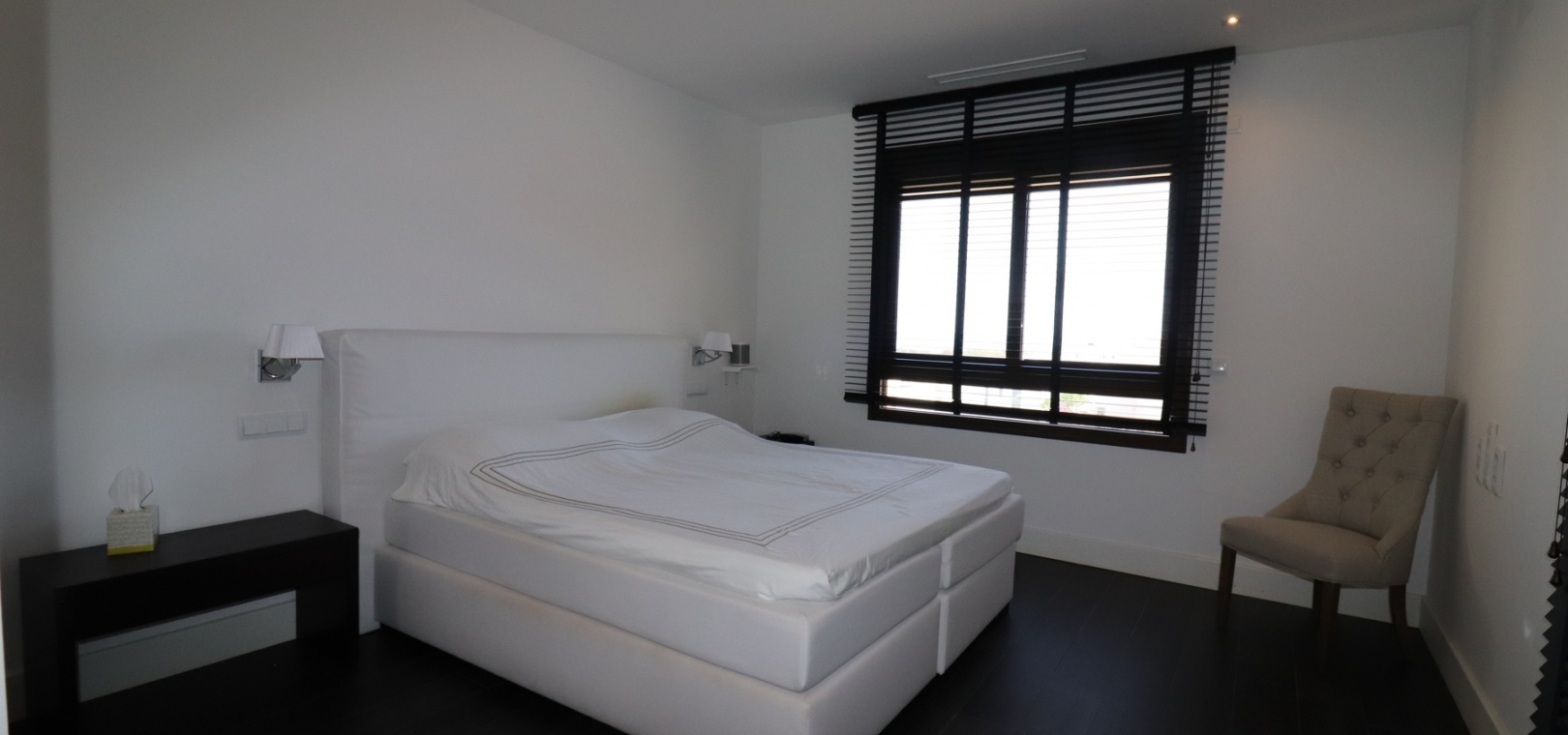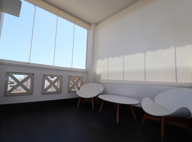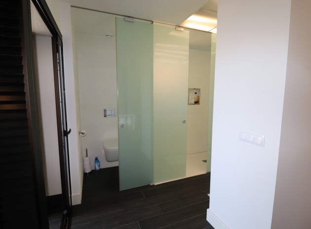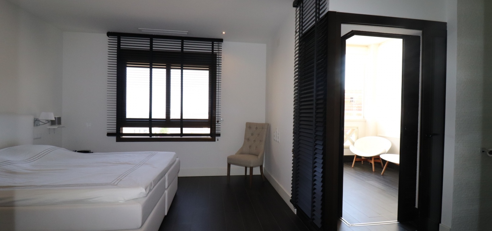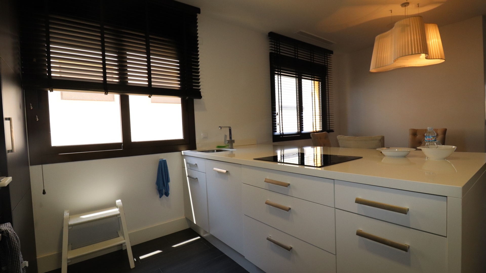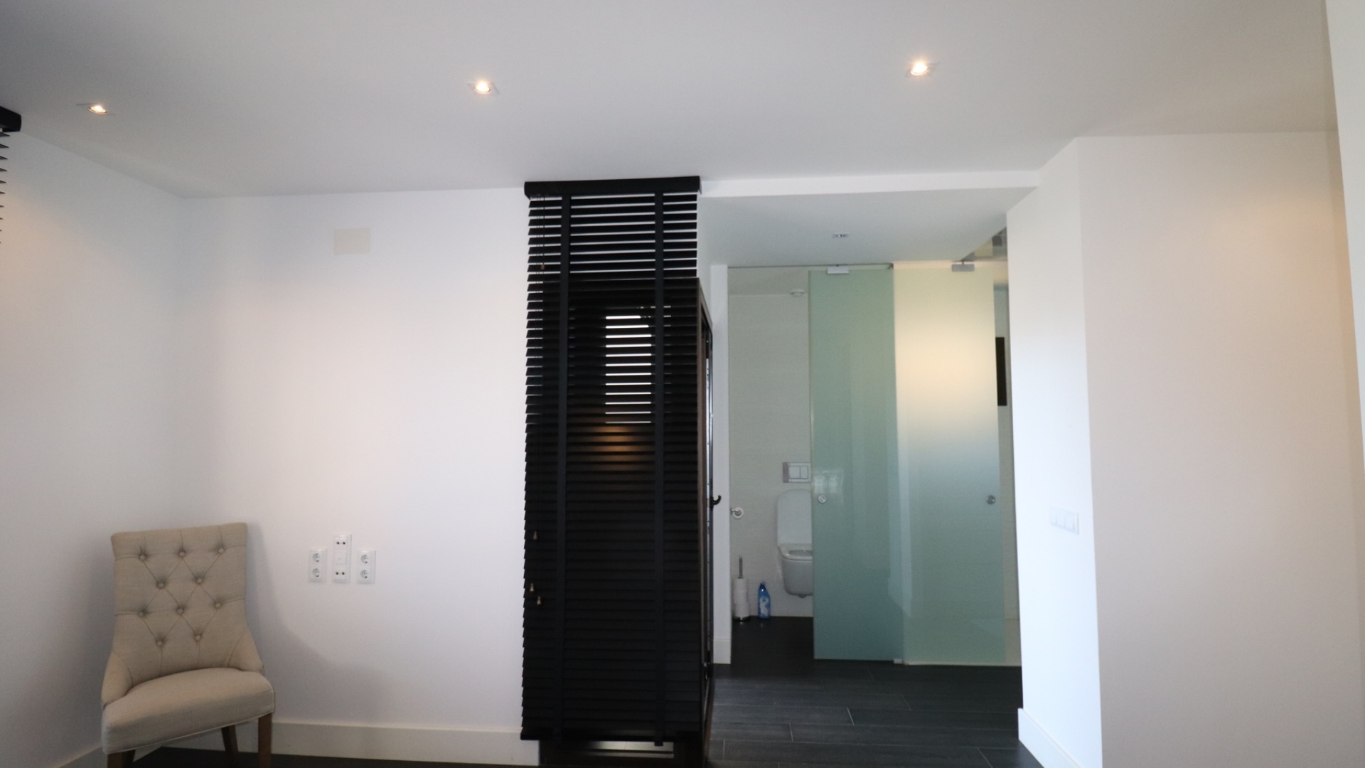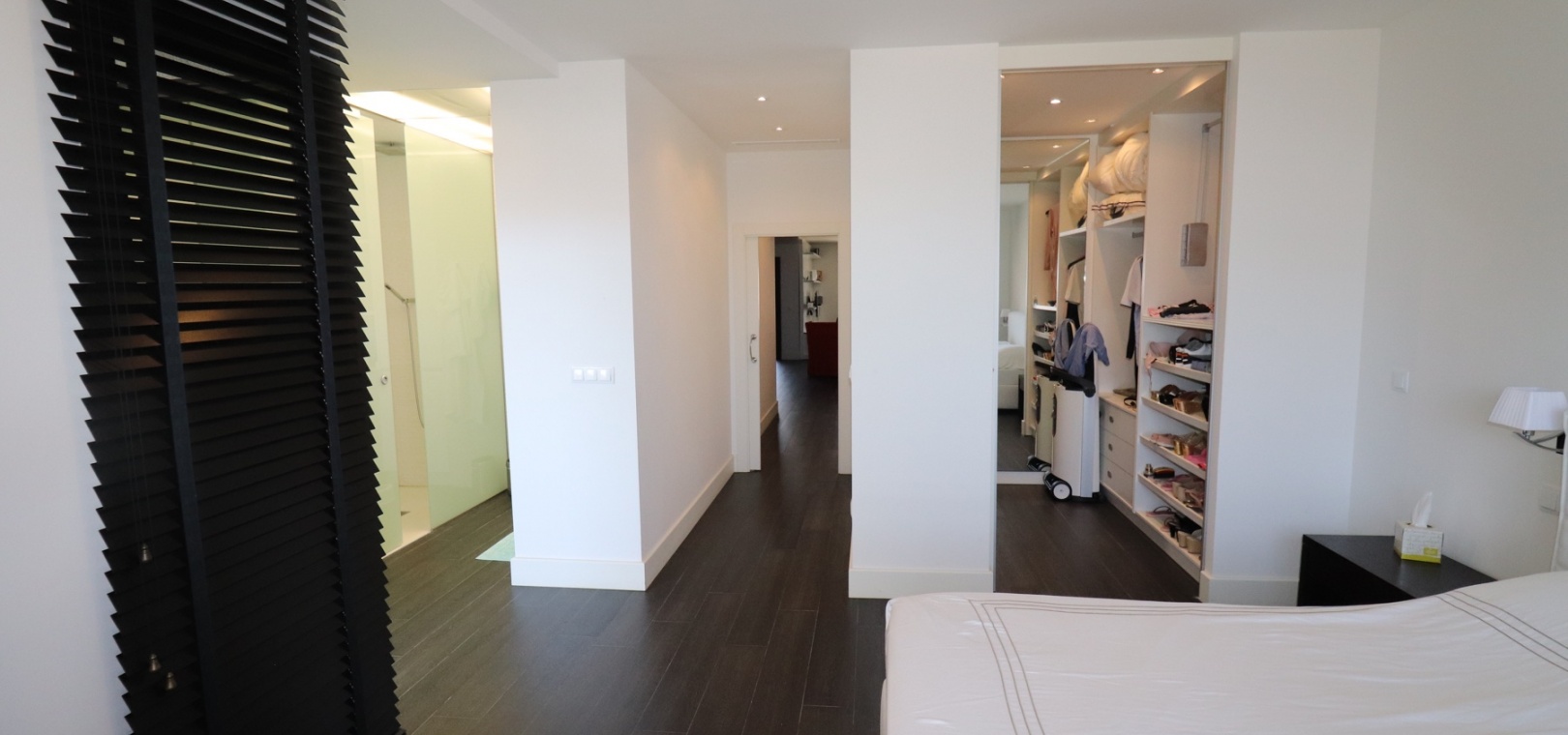 Med entusiasm presenterar vi denna vackra takvåning i Guardamar med fantastisk havsutsikt i det lyxiga komplexet Marjal Beach. Detta mycket välskötta bostadskomplex har en vackert anlagd trädgård med den gemensamma poolen. Den rymliga lägenheten består ursprungligen av två sammanfogade lägenheter, vilket skapar stora ytor. Takvåningen har 2 rymliga sovrum och ett tredje sovrum är möjligt. Båda sovrummen har ett eget badrum med klädkammare. Kvaliteten har inte sparats, vilket man märker när man tittar på lägenheten. Fastigheten har elektriska jalusier överallt. Köket är fullt utrustat med alla nödvändiga apparater. Det finns 2 mysiga terrasser på båda sidor av huset och via en invändig trappa når vi en rymlig takterrass med fantastisk havsutsikt. Takterrassen erbjuder mycket avskildhet och alla fönster kan öppnas. På vintern kan du också tillbringa en trevlig tid här på grund av de skjutbara fönstren på båda sidor av den mycket stora takterrassen. I köket finns en specialtillverkad mathiss så att dryck och snacks kan skickas upp via köket. Takterrassen har lyxiga elektriska persienner och ett Sonos musiksystem, du kan lyssna på musik i hela huset. Med hissen når du de 2 intilliggande garageplatserna med tillhörande förråd. Huset säljs möblerat. Allt handlar om läge och med denna takvåning gör du en bra investering. Mycket lämplig för permanentboende eller semesteruthyrning. De gemensamma utrymmena har utomhuspool, inomhuspool, gym, bastu och terrasser.