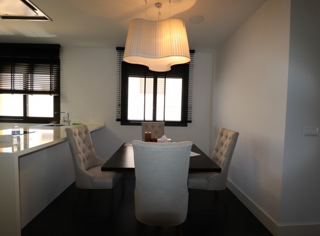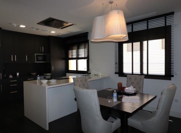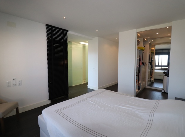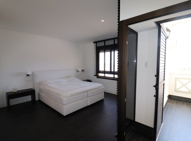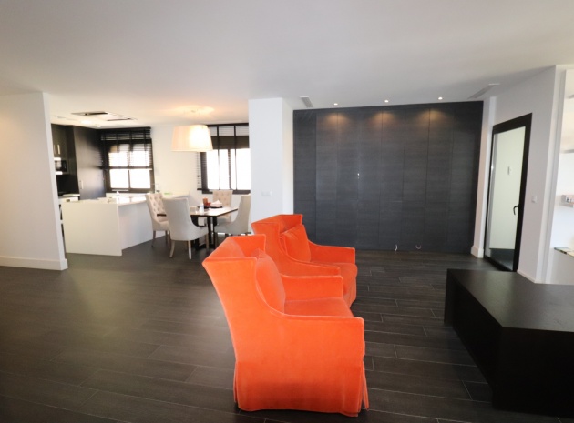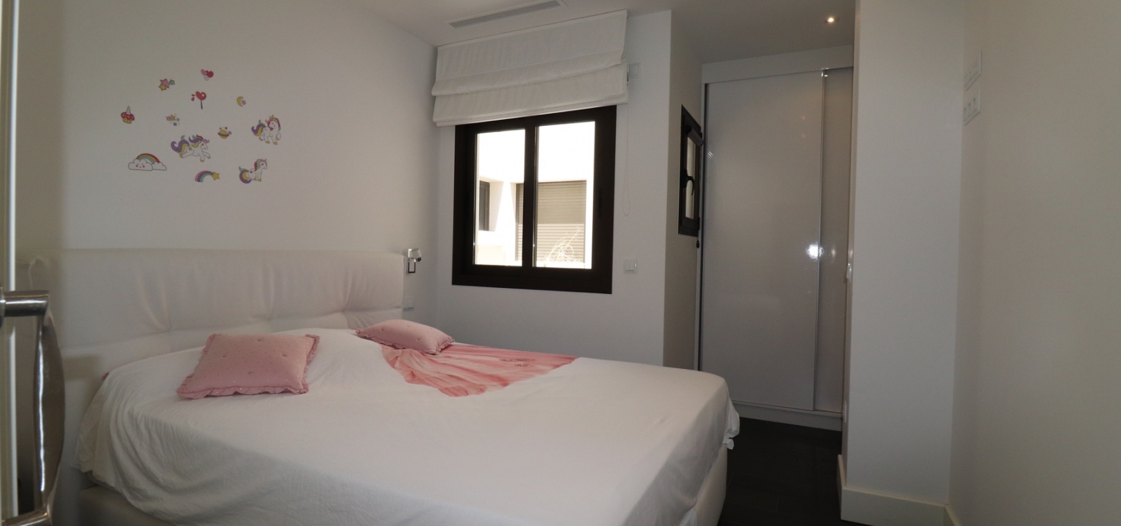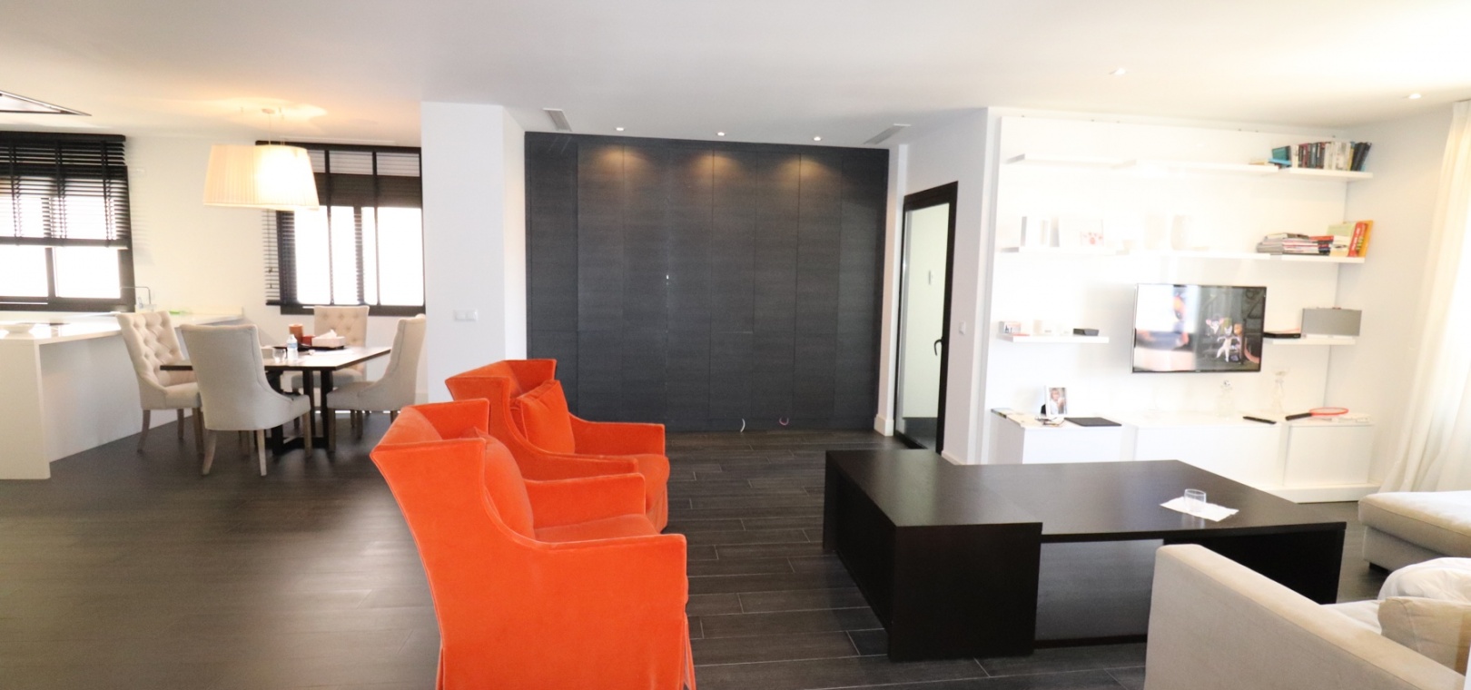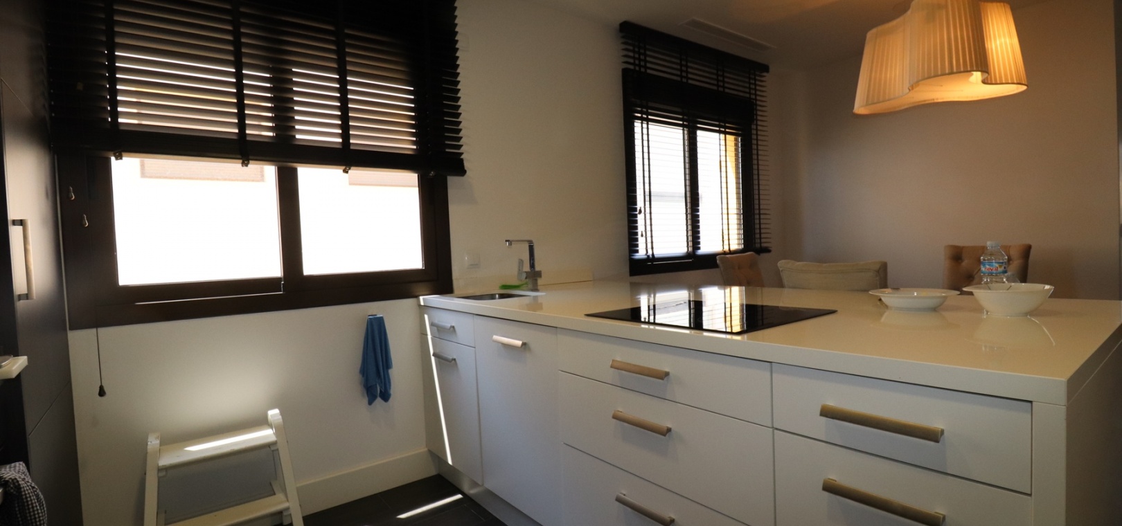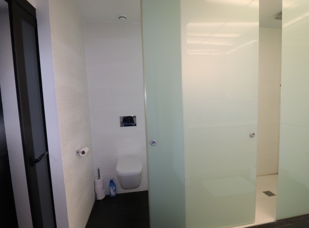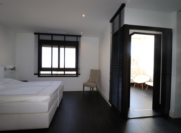 Med entusiasm presenterar vi denna vackra takvåning i Guardamar med fantastisk havsutsikt i det lyxiga komplexet Marjal Beach. Detta mycket välskötta bostadskomplex har en vackert anlagd trädgård med den gemensamma poolen. Den rymliga lägenheten består ursprungligen av två sammanfogade lägenheter, vilket skapar stora ytor. Takvåningen har 2 rymliga sovrum och ett tredje sovrum är möjligt. Båda sovrummen har ett eget badrum med klädkammare. Kvaliteten har inte sparats, vilket man märker när man tittar på lägenheten. Fastigheten har elektriska jalusier överallt. Köket är fullt utrustat med alla nödvändiga apparater. Det finns 2 mysiga terrasser på båda sidor av huset och via en invändig trappa når vi en rymlig takterrass med fantastisk havsutsikt. Takterrassen erbjuder mycket avskildhet och alla fönster kan öppnas. På vintern kan du också tillbringa en trevlig tid här på grund av de skjutbara fönstren på båda sidor av den mycket stora takterrassen. I köket finns en specialtillverkad mathiss så att dryck och snacks kan skickas upp via köket. Takterrassen har lyxiga elektriska persienner och ett Sonos musiksystem, du kan lyssna på musik i hela huset. Med hissen når du de 2 intilliggande garageplatserna med tillhörande förråd. Huset säljs möblerat. Allt handlar om läge och med denna takvåning gör du en bra investering. Mycket lämplig för permanentboende eller semesteruthyrning. De gemensamma utrymmena har utomhuspool, inomhuspool, gym, bastu och terrasser.