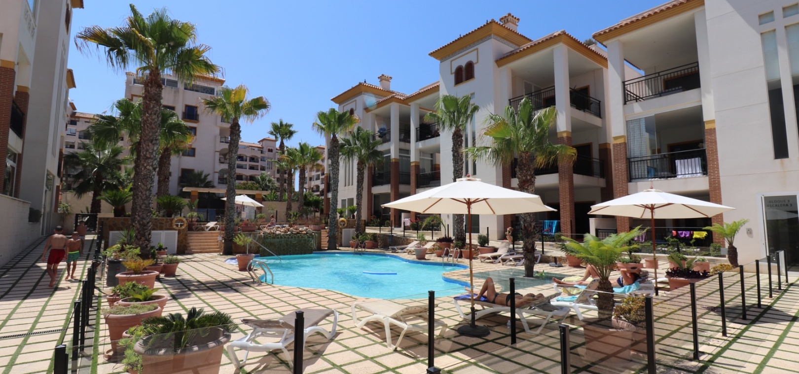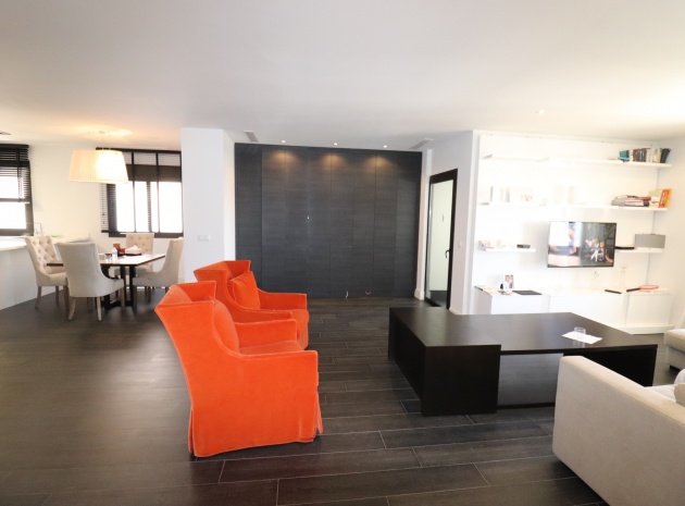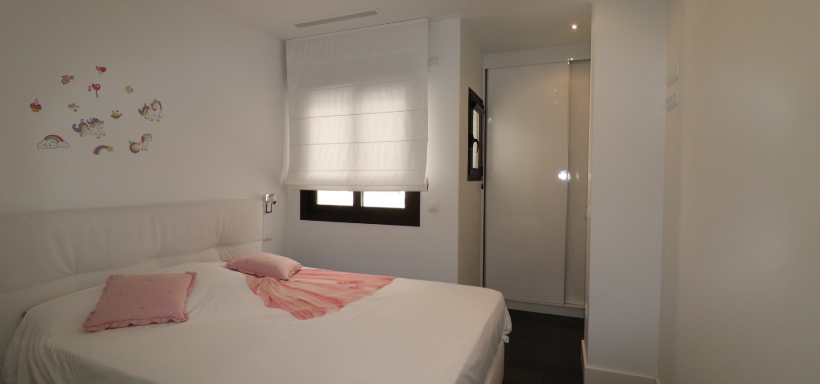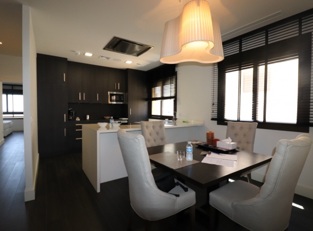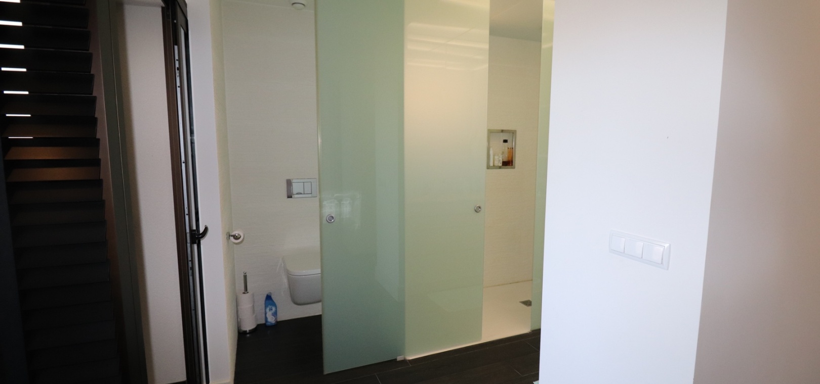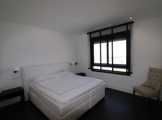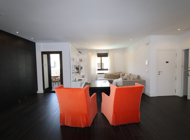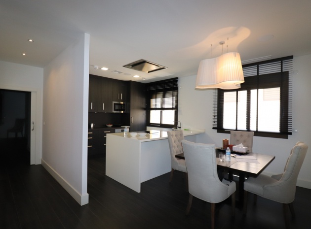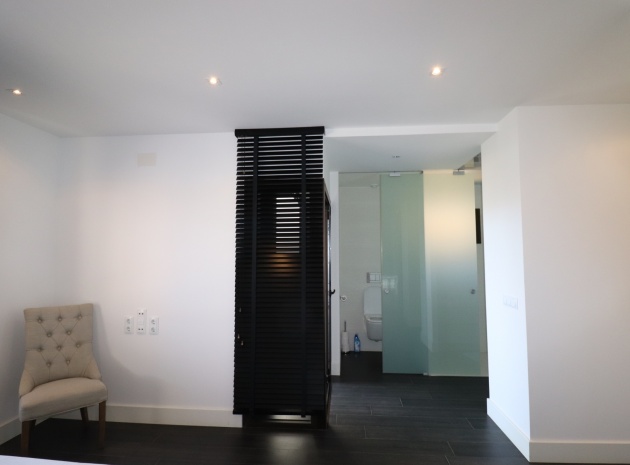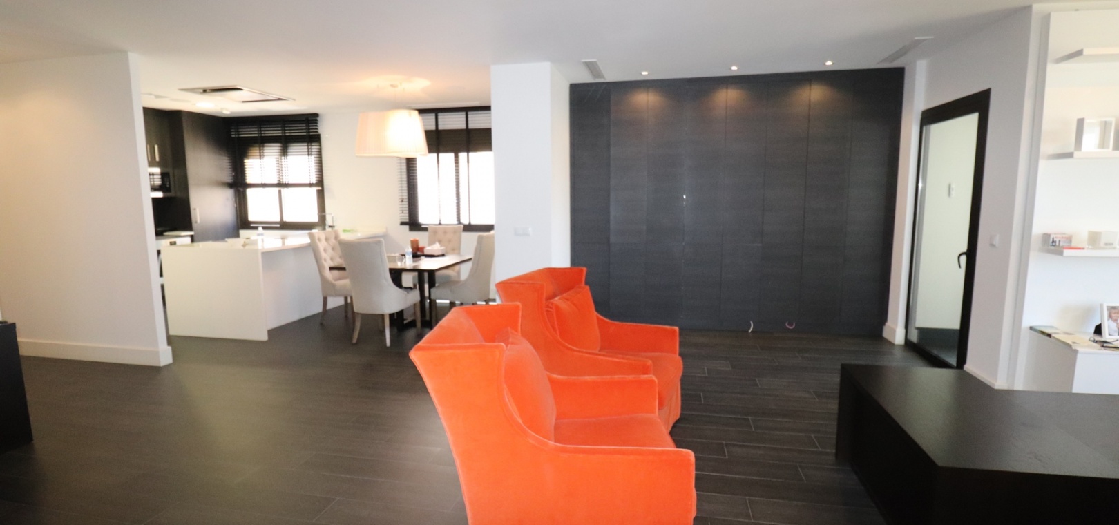 Med entusiasm presenterar vi denna vackra takvåning i Guardamar med fantastisk havsutsikt i det lyxiga komplexet Marjal Beach. Detta mycket välskötta bostadskomplex har en vackert anlagd trädgård med den gemensamma poolen. Den rymliga lägenheten består ursprungligen av två sammanfogade lägenheter, vilket skapar stora ytor. Takvåningen har 2 rymliga sovrum och ett tredje sovrum är möjligt. Båda sovrummen har ett eget badrum med klädkammare. Kvaliteten har inte sparats, vilket man märker när man tittar på lägenheten. Fastigheten har elektriska jalusier överallt. Köket är fullt utrustat med alla nödvändiga apparater. Det finns 2 mysiga terrasser på båda sidor av huset och via en invändig trappa når vi en rymlig takterrass med fantastisk havsutsikt. Takterrassen erbjuder mycket avskildhet och alla fönster kan öppnas. På vintern kan du också tillbringa en trevlig tid här på grund av de skjutbara fönstren på båda sidor av den mycket stora takterrassen. I köket finns en specialtillverkad mathiss så att dryck och snacks kan skickas upp via köket. Takterrassen har lyxiga elektriska persienner och ett Sonos musiksystem, du kan lyssna på musik i hela huset. Med hissen når du de 2 intilliggande garageplatserna med tillhörande förråd. Huset säljs möblerat. Allt handlar om läge och med denna takvåning gör du en bra investering. Mycket lämplig för permanentboende eller semesteruthyrning. De gemensamma utrymmena har utomhuspool, inomhuspool, gym, bastu och terrasser.