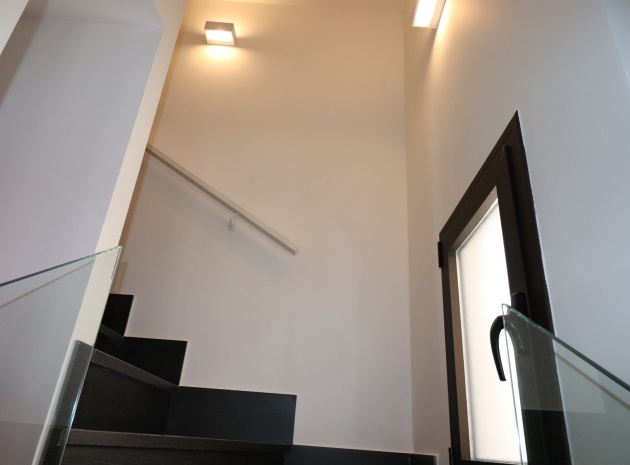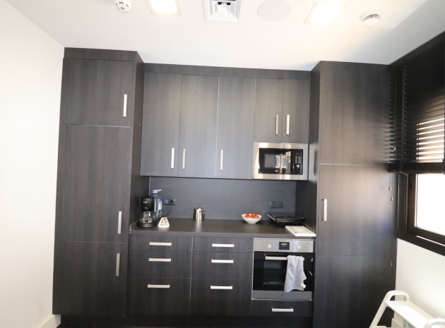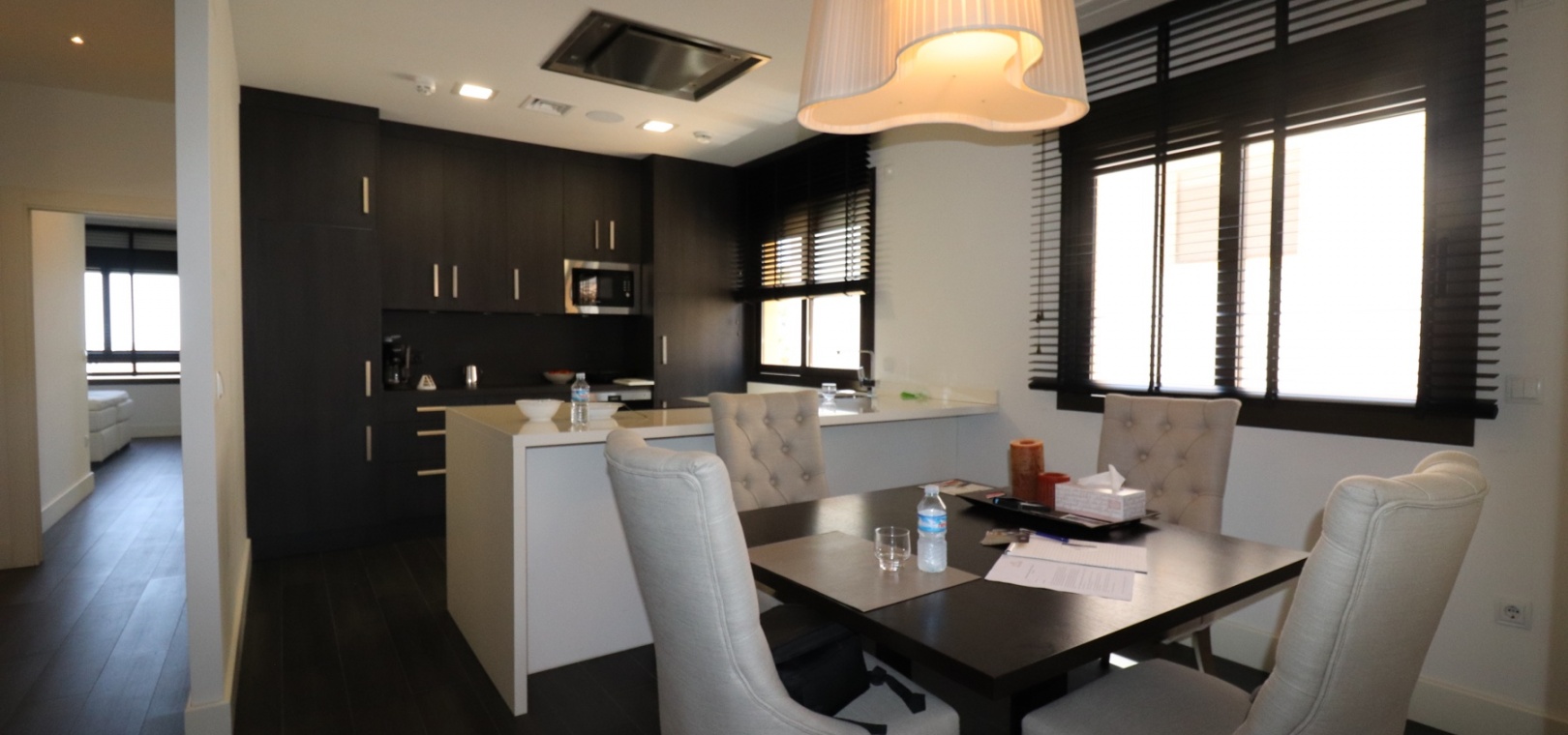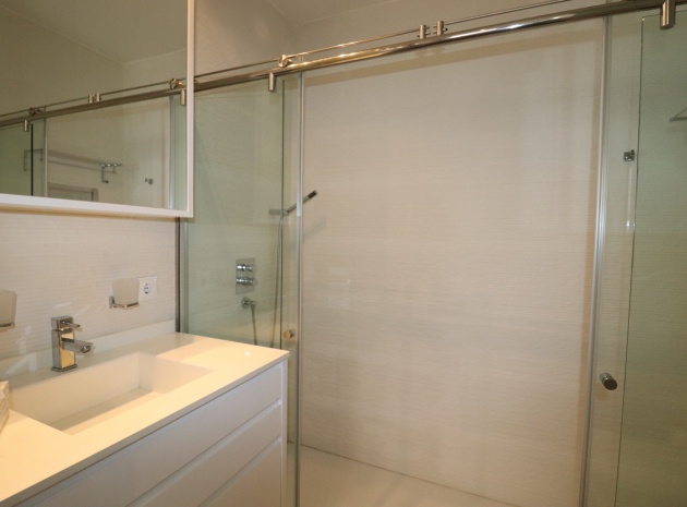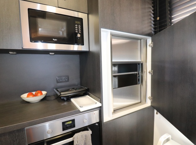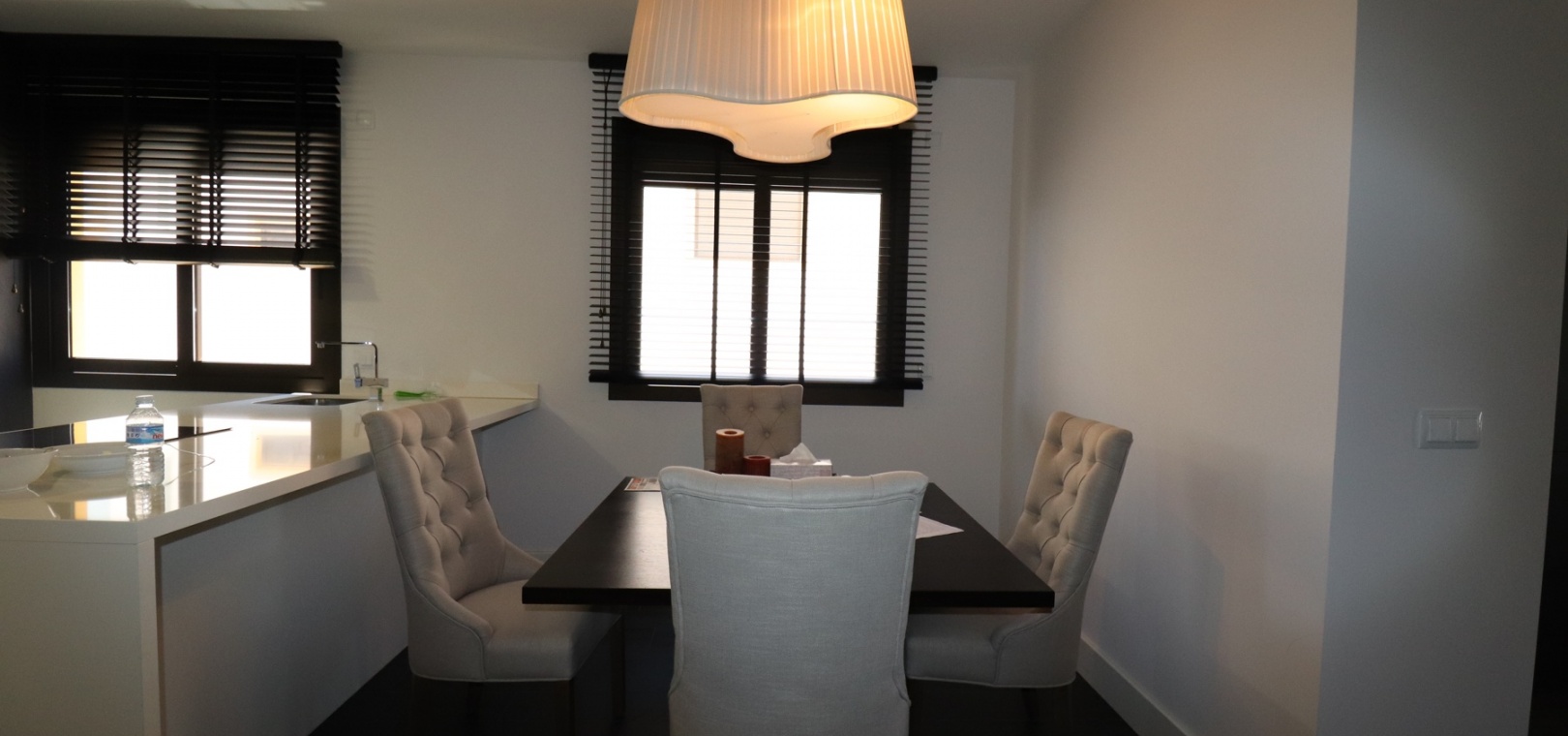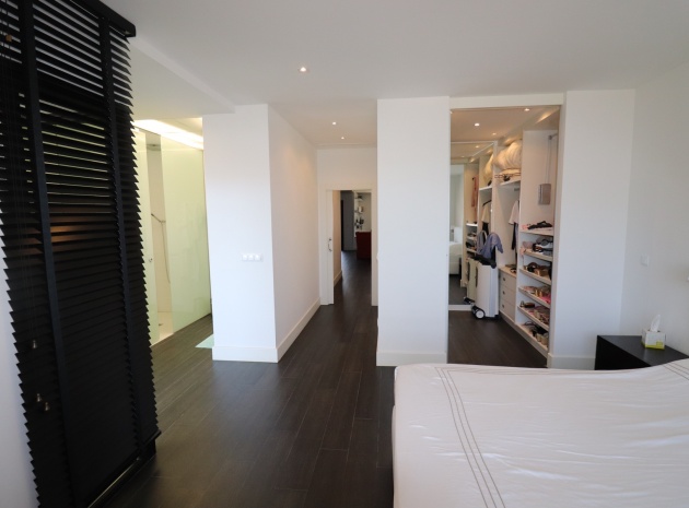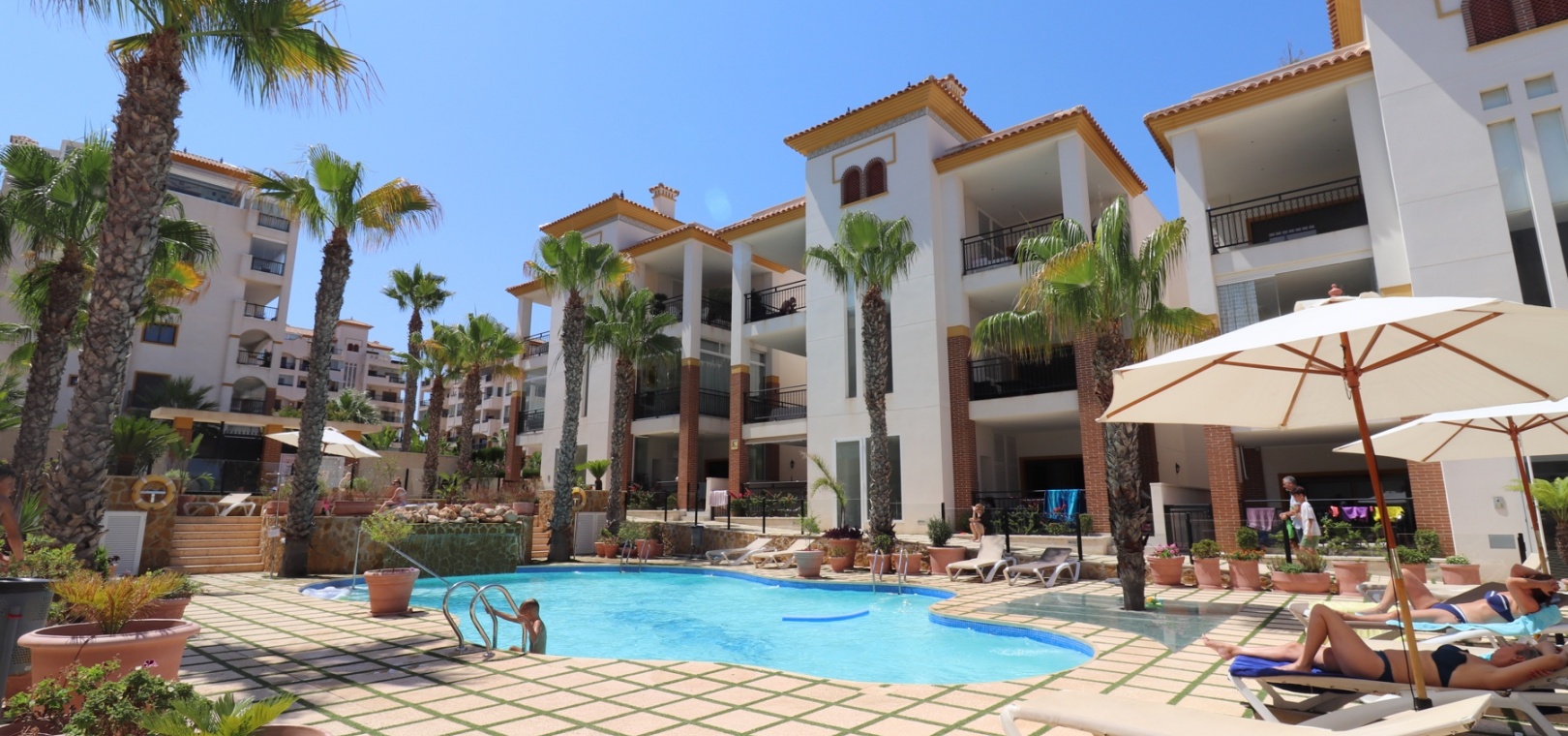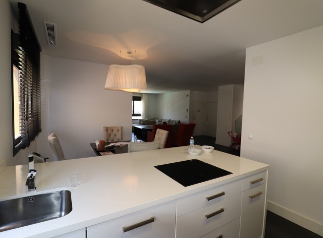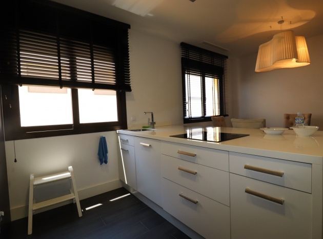 Med entusiasm presenterar vi denna vackra takvåning i Guardamar med fantastisk havsutsikt i det lyxiga komplexet Marjal Beach. Detta mycket välskötta bostadskomplex har en vackert anlagd trädgård med den gemensamma poolen. Den rymliga lägenheten består ursprungligen av två sammanfogade lägenheter, vilket skapar stora ytor. Takvåningen har 2 rymliga sovrum och ett tredje sovrum är möjligt. Båda sovrummen har ett eget badrum med klädkammare. Kvaliteten har inte sparats, vilket man märker när man tittar på lägenheten. Fastigheten har elektriska jalusier överallt. Köket är fullt utrustat med alla nödvändiga apparater. Det finns 2 mysiga terrasser på båda sidor av huset och via en invändig trappa når vi en rymlig takterrass med fantastisk havsutsikt. Takterrassen erbjuder mycket avskildhet och alla fönster kan öppnas. På vintern kan du också tillbringa en trevlig tid här på grund av de skjutbara fönstren på båda sidor av den mycket stora takterrassen. I köket finns en specialtillverkad mathiss så att dryck och snacks kan skickas upp via köket. Takterrassen har lyxiga elektriska persienner och ett Sonos musiksystem, du kan lyssna på musik i hela huset. Med hissen når du de 2 intilliggande garageplatserna med tillhörande förråd. Huset säljs möblerat. Allt handlar om läge och med denna takvåning gör du en bra investering. Mycket lämplig för permanentboende eller semesteruthyrning. De gemensamma utrymmena har utomhuspool, inomhuspool, gym, bastu och terrasser.