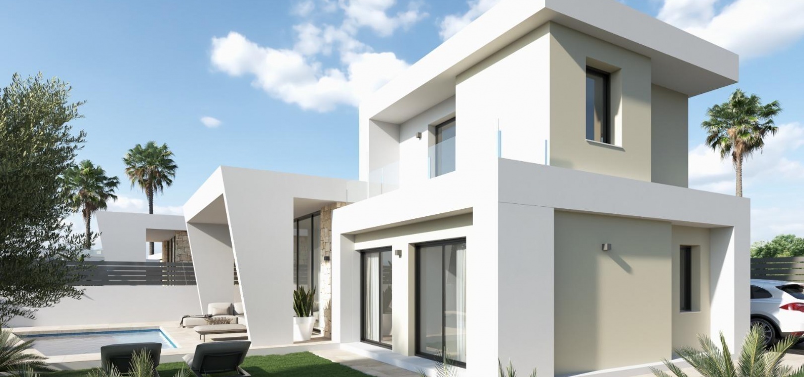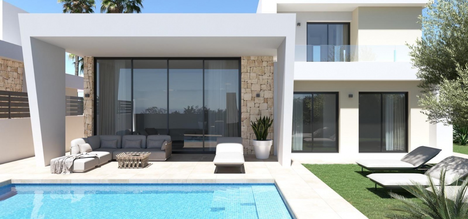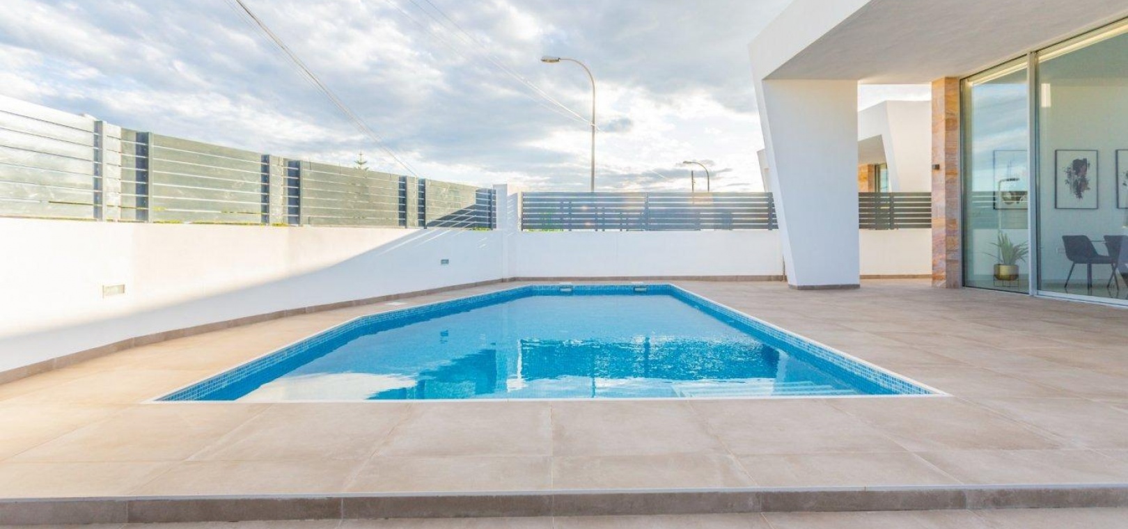 Vacker nybyggd villa med privat pool byggd över 2 våningar med 3 sovrum, 2 badrum, öppet kök med vardagsrumsdel, terrass och priate solarium.