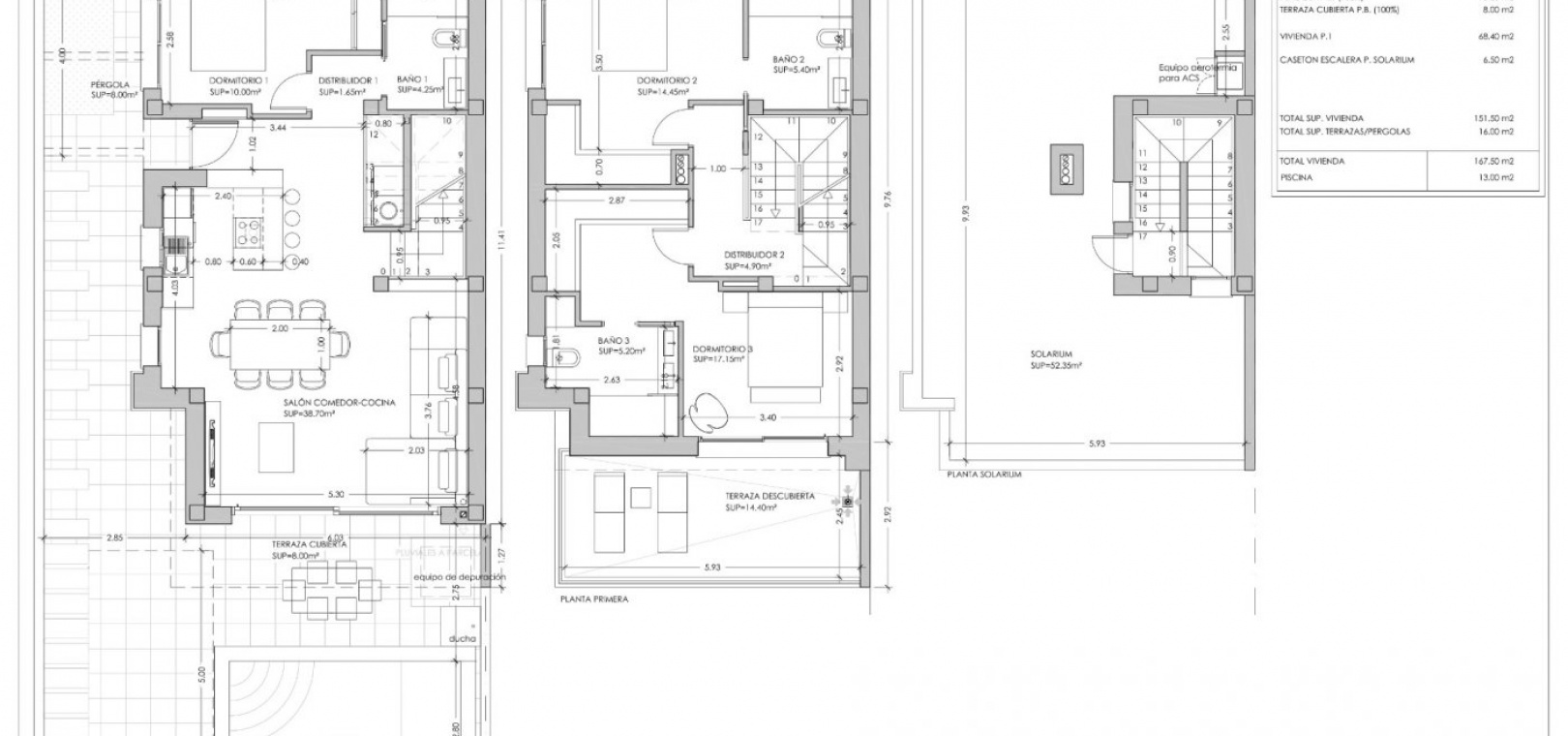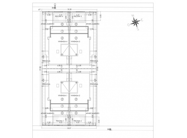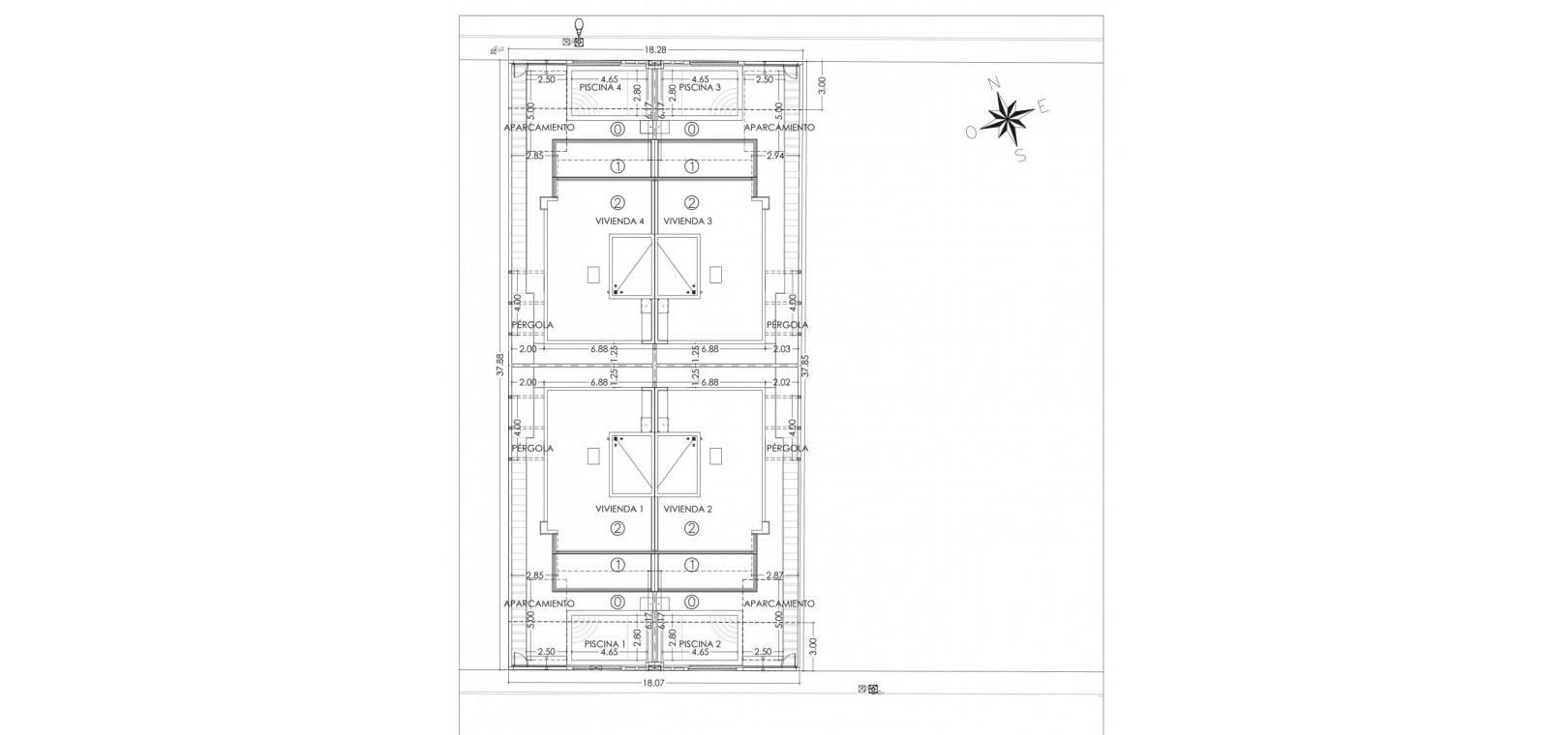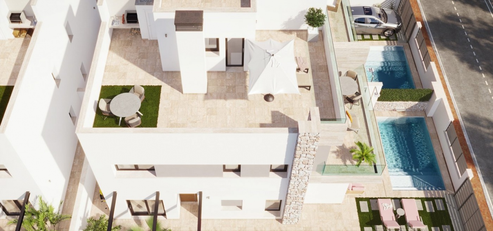 Nybyggnation av 4 moderna fyrbostadshus i ett bostadsområde nära San Pedro Del Pinatars centrum och Lo Pagans stränder.