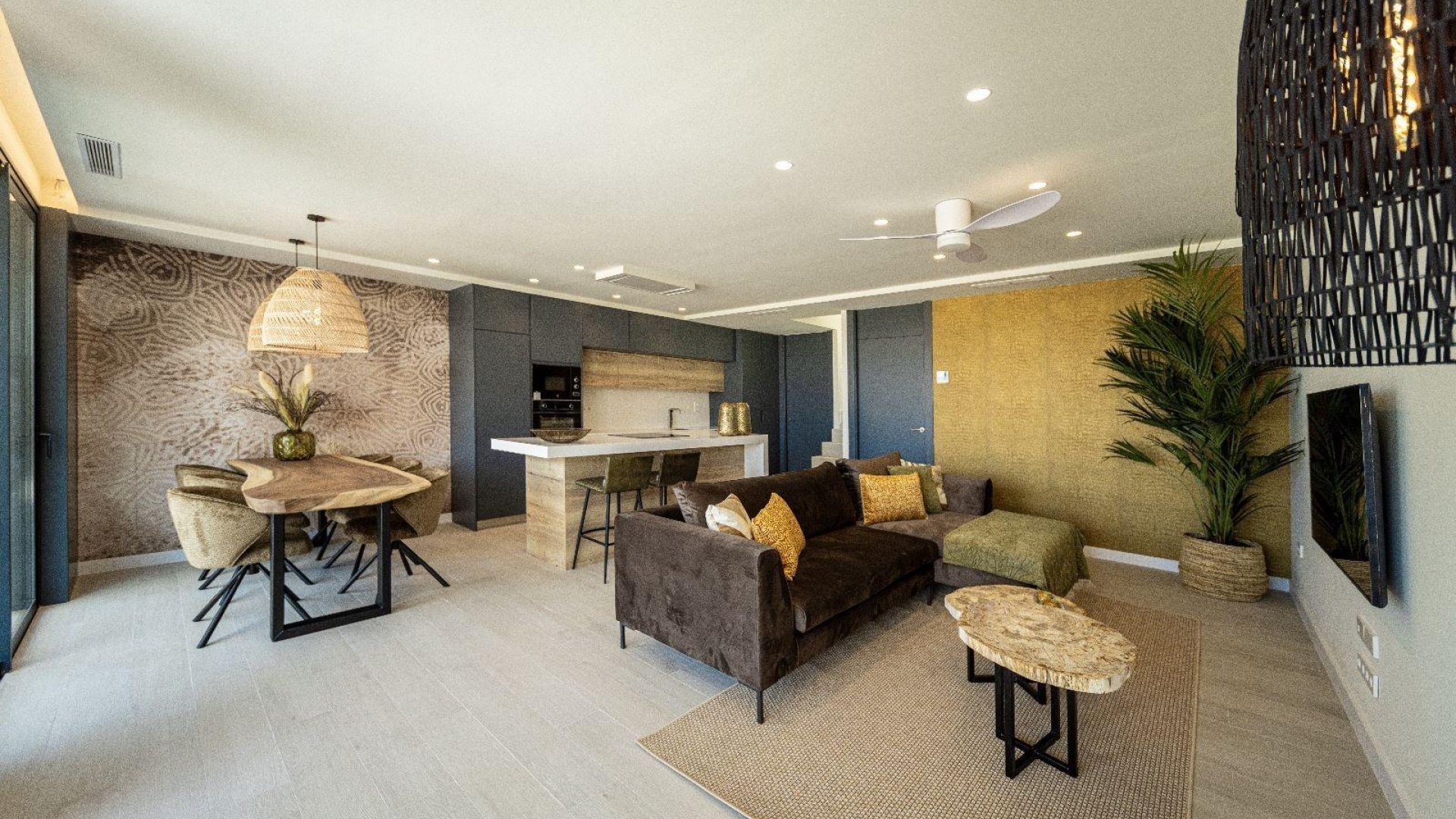 Moderna radhus med 3 sovrum, 3 badrum, kök med öppen planlösning, vardagsrum med direkt tillgång till terrassen med privat pool, terrasser, parkeringsplats.