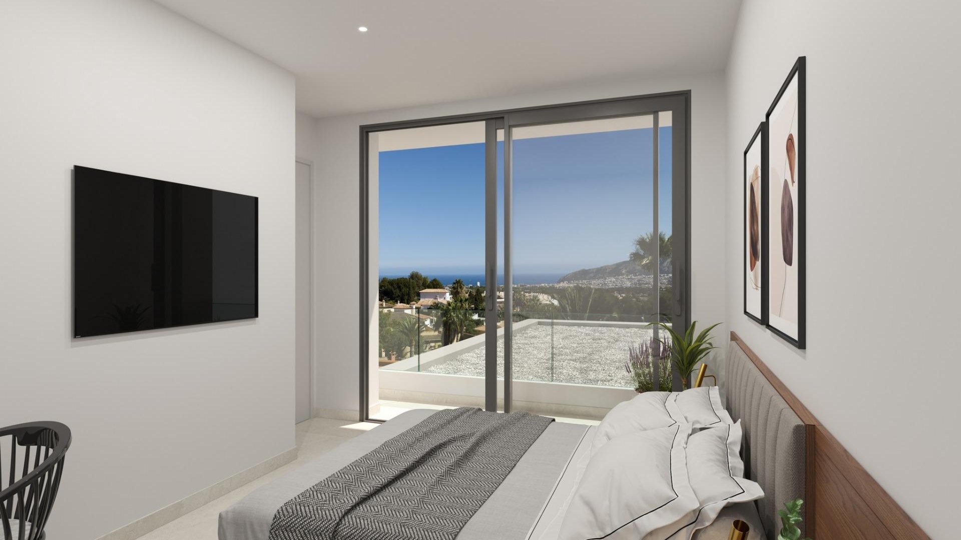 Sovrummen på villans övre våning har utformats för att maximera den fantastiska utsikten över Medelhavet och den vackra Sierra Helada.