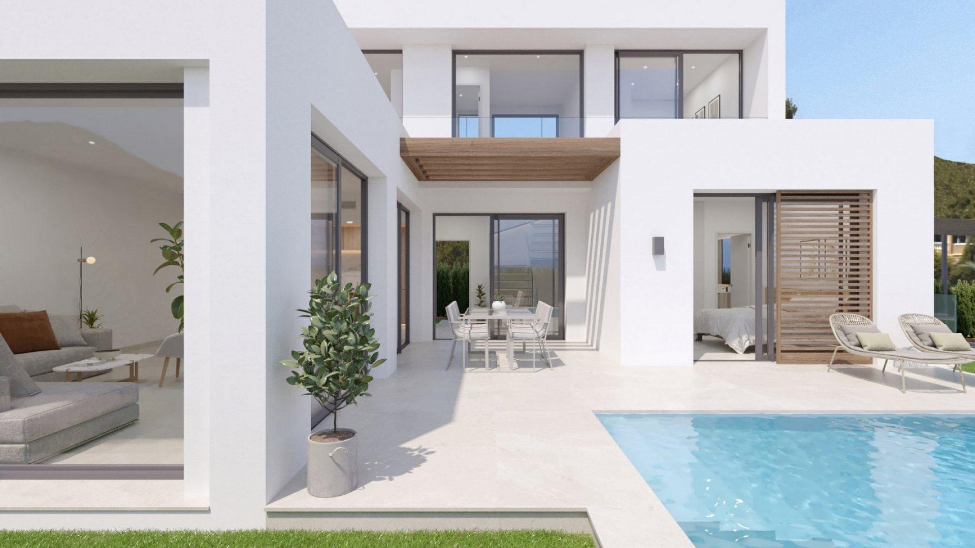Hus som utformats med hänsyn till de minsta detaljerna, dess träskal, dess bioklimatiska pergola, solpanelsystemet och de effektiva och eleganta mallorquinerna erbjuder dig det mest exklusiva alternativet för hållbart boende.