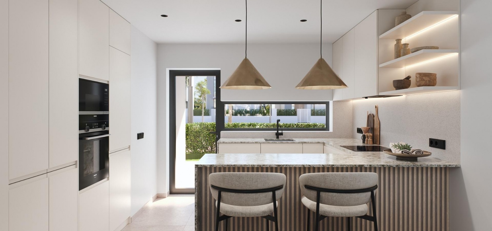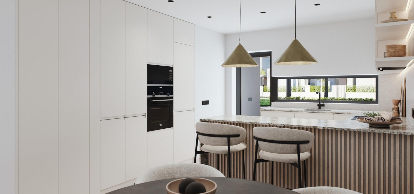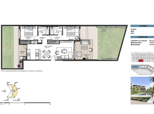 Nybyggt bostadsområde bestående av 42 lyxlägenheter och takvåningar med 2 och 3 sovrum, 2 badrum, kök med öppen planlösning med rymligt vardagsrum, inbyggda garderober och terrasser.