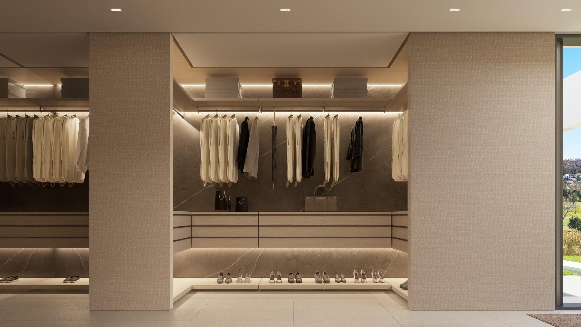 Dess orientering gör att du kan njuta av den magnifika terrassen och den privata poolen med sol hela dagen och magnifik utsikt över golfbanan, med direkt tillgång med buggy från ditt hem. I solariumet kommer du att kunna njuta av ett utomhuskök, relaxavdelning, bio och spa, och i källaren har du ett gym, kontor och tvättstuga.