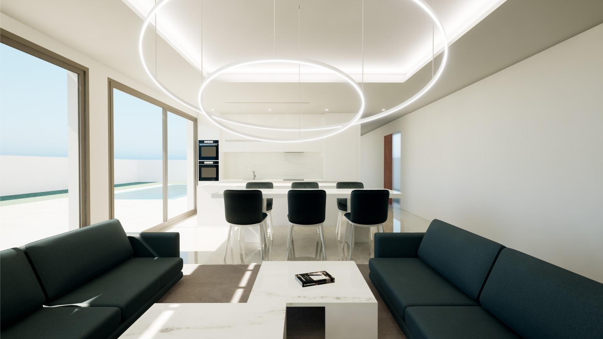 Energieffektiv fristående lyxvilla i 2 plan. Den har 4 sovrum och 3,5 badrum. Stora fönster från golv till tak gör att du kan njuta av den vackra havsutsikten och det naturliga ljuset som översvämmar varje hörn av huset.