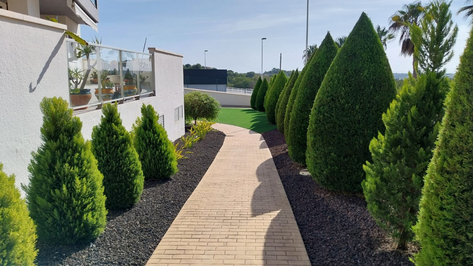 Fastigheten är belägen mittemot La Fuente kommersiella centrum där du hittar ett stort utbud av barer, restauranger och butiker inkl. en stormarknad och apotek. Lokala bussar och taxibilar stannar precis utanför La Fuente. De vackra stränderna Orihuela Costa med blå flagg ligger bara 5 minuter med bil eller så kan du hoppa på lokalbussen. Villamartin Plaza ligger cirka 20 minuters promenad bort. Las Ramblas, Campoamor & Villamartin golfbana ligger alla bara några minuter med bil och Alicantes flygplats ligger 50 minuters bilresa bort.