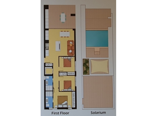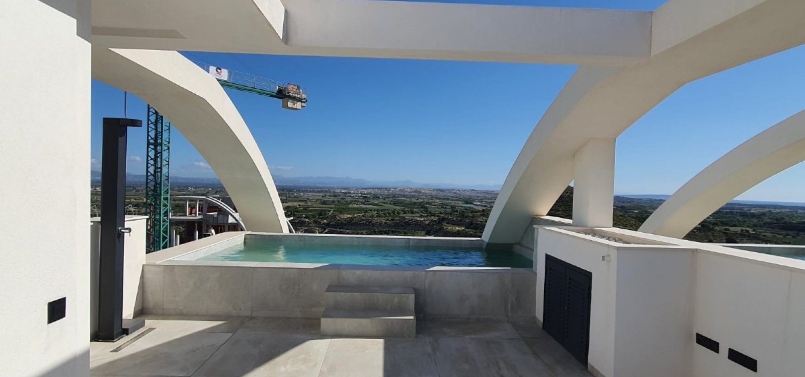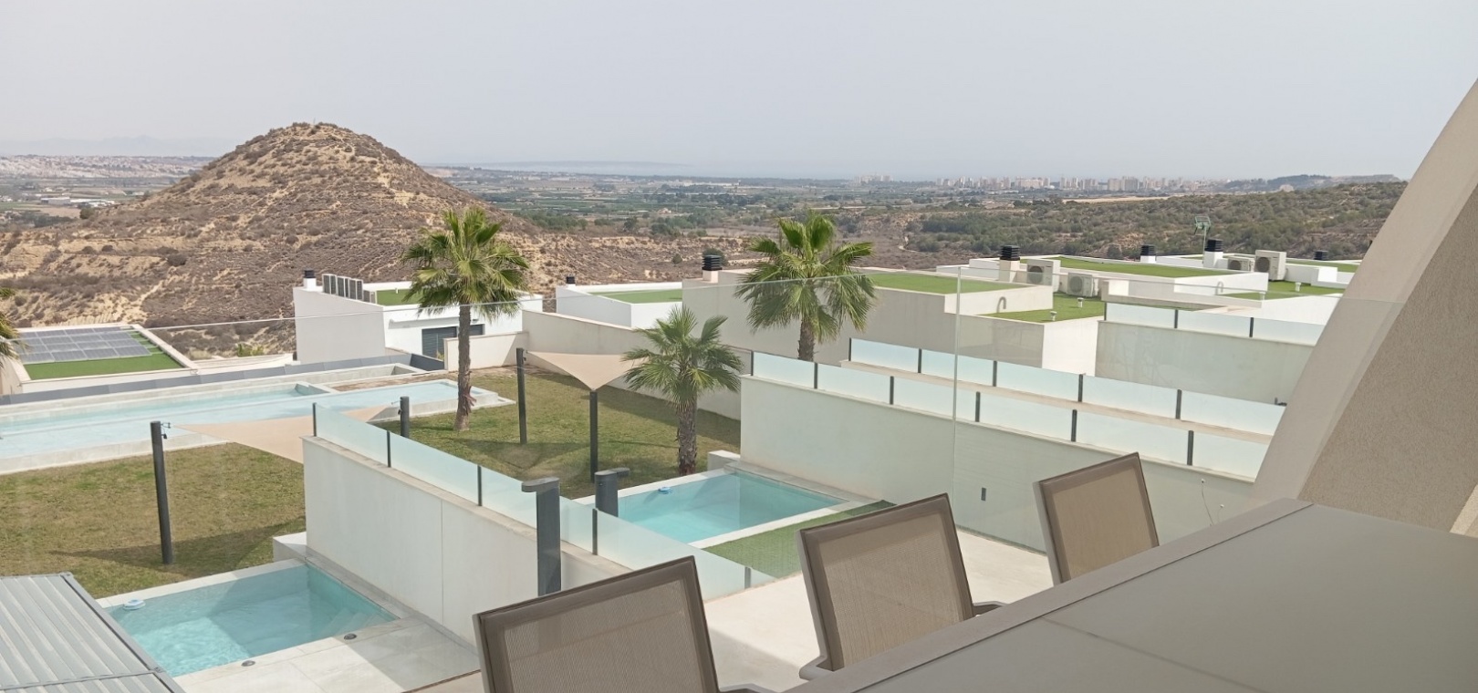 I ett mycket lugnt område i Rojales är denna vackra takvåning med fantastisk utsikt till salu. När du kommer in upptäcker du direkt lägenhetens vackra design. Den består av ett vardagsrum och matsal med ett angränsande fullt utrustat kök i öppen planlösning, med direkt tillgång till terrassen där du kan njuta av snacks och drinkar i den spanska utomhusluften. Dessutom har denna lägenhet 3 sovrum och 2 badrum, ett rymligt tak terrass med privat pool där du kan svalka dig med fantastisk utsikt. Det finns också en gemensam pool, jacuzzi, bastu och gym (fortfarande under uppbyggnad). Lägenheten säljs fullt möblerad. I närheten finns flera barer, restauranger och stormarknader. Kort sagt, denna lägenhet är mycket lämplig att bo där permanent eller att använda för semester och för uthyrning.Ciudad Quesada.Ciudad Quesada är en liten pärla som ligger nära de underbara städerna som Alicante, Murcia, Cartagena med flera. Det är bara 30 minuter till Alicante (ALC) och Murcia (RMU) flygplatser som har direkta rutter till Norge. Det finns en motorväg strax utanför staden som gör det enkelt att ta sig runt och utforska Spanien. Torrevieja ligger bara 10 minuters bilresa från restauranger, nattliv, barer och Habaneras och ett stort köpcentrum med flera trendiga butiker. Du har flera butiker runt om i området, till exempel har La Zenia Boulevard ett ännu större utbud av butiker bara 20 minuter från Quesada. I Quesada har du även restauranger, butiker, strövområden, parker, vattenpark, golfbana, mini- golf, bowling, norsk skola och mycket mer. Du behöver inte åka långt för att uppleva allt denna underbara stad har att erbjuda. Norska skolan i Rojales är välkänd och har ett fantastiskt rykte. Hennes det är över 100 elever. Skolan ligger i centrala Quesada med nöjda elever. Golfbanorna i Quesada heter La Marquesa Golf. Detta är en fantastisk golfbana för nybörjare och experter. Det finns utbildningar om du vill lära dig. Runt golfbanor finns det flera restauranger och barer där du kan njuta av omgivningarna. Ciudad Quesada är ett lugnt och trevligt område på Costa Blanca med mycket att upptäcka. Det är bara 7-10 minuters bilresa till några av de bästa stränderna i Europa. De har tilldelats en blå flagga vilket betyder att det är några av de renaste, säkraste, kvalitetsstränderna i Spanien. Guardamar del Segura är en av de populäraste stränderna i området och är 9 kilometer lång. Det finns också en cykelväg ner till stranden. Det finns flera marknader i området eftersom det är 5 minuter med bil. Här kan du köpa färska matvaror, souvenirer och mycket mer. Det finns en markering för varje dag i veckan mindre än 15 minuter från Quesada. Detta är den perfekta platsen oavsett om du letar efter ett permanent hem, eller bara ett fritidshus för dig och du är älskad en gång. Det finns över 300 soliga dagar om året, och medeltemperaturen är 20 grader. De två stora saltsjöarna ger en renande effekt på luften. 2019 utsågs Spanien till världens hälsosammaste land att bo i, det märks när man kommer ner. Klimatet har en positiv effekt på kropp och själ!Välkommen hem.