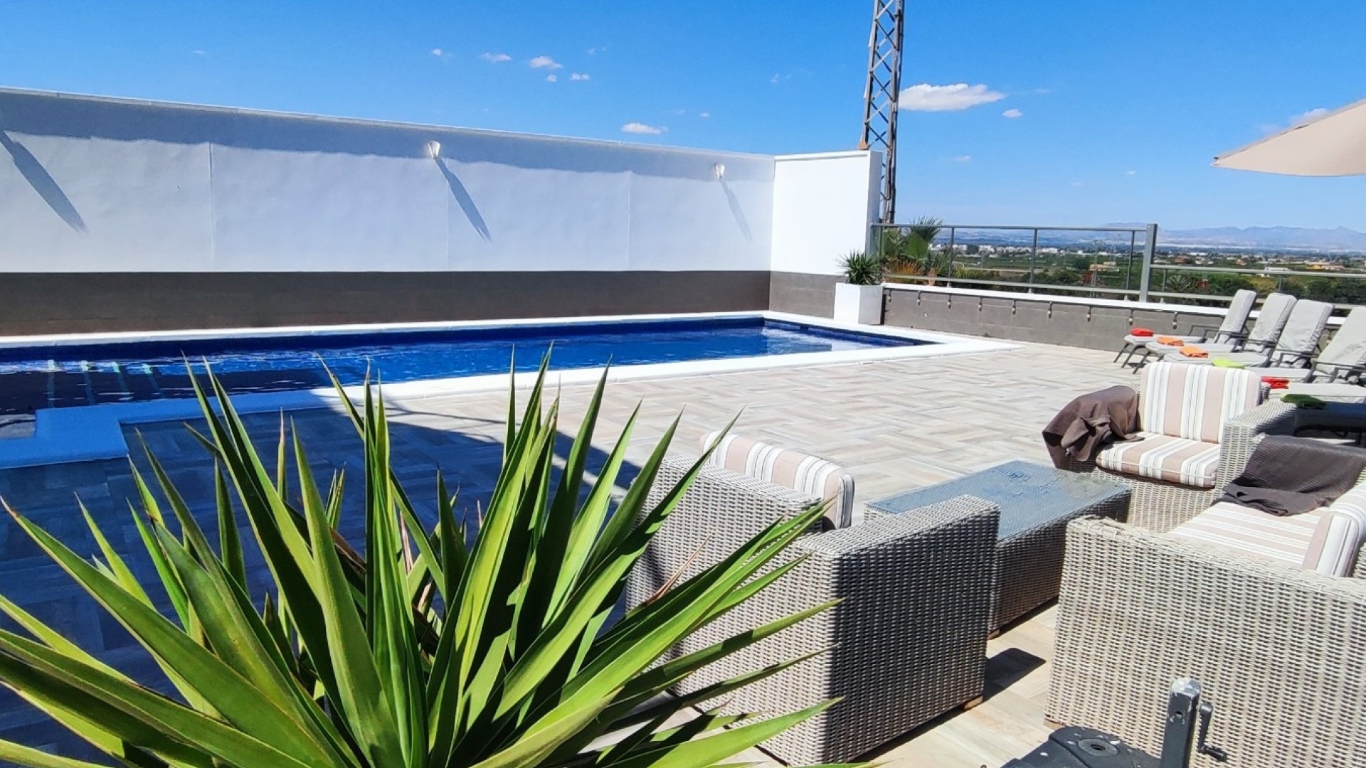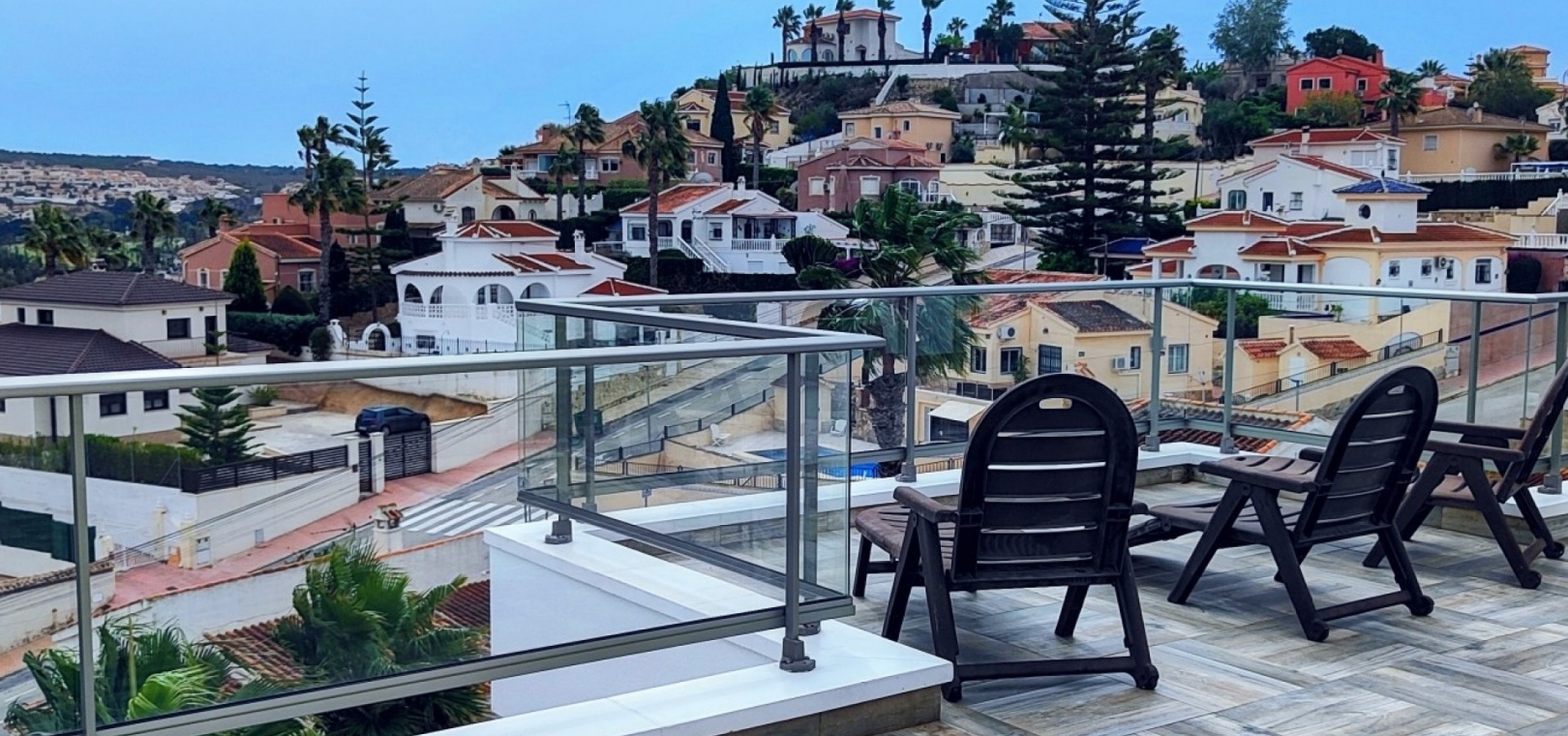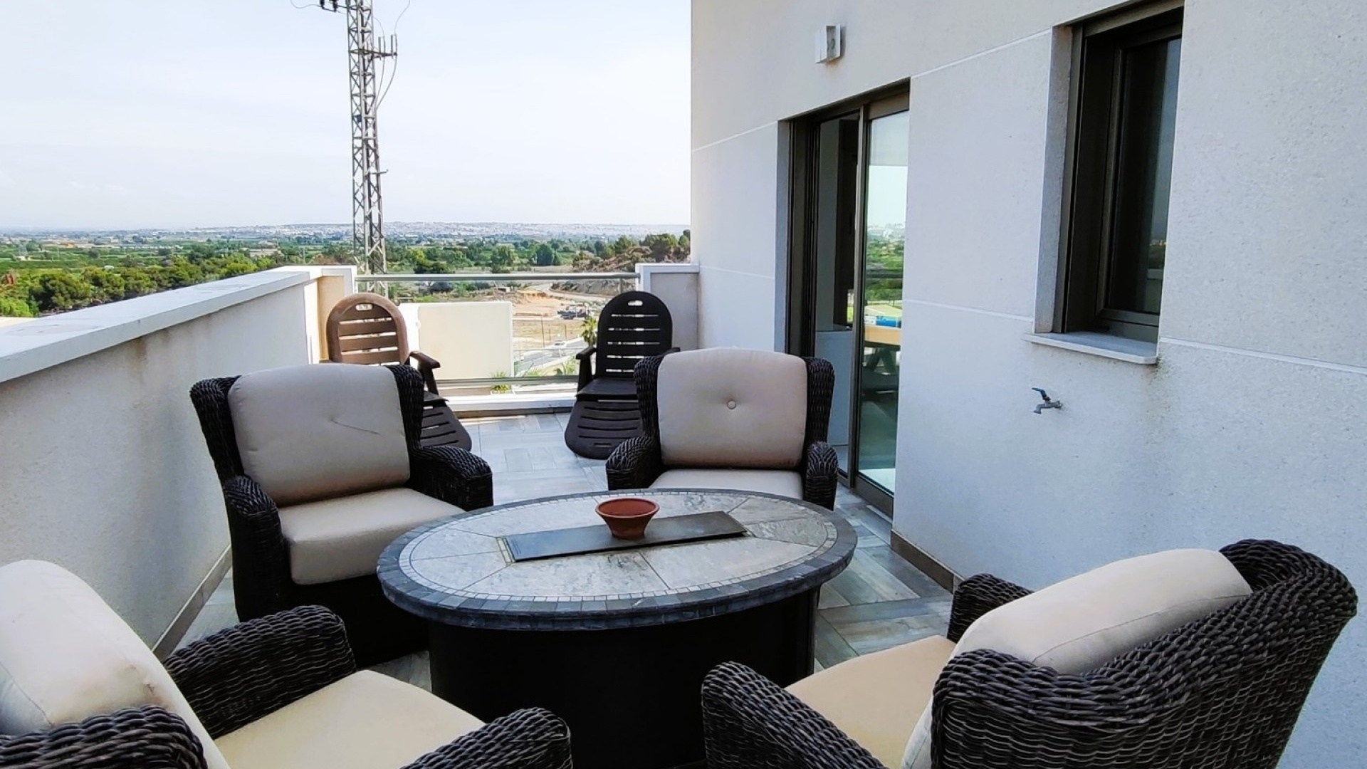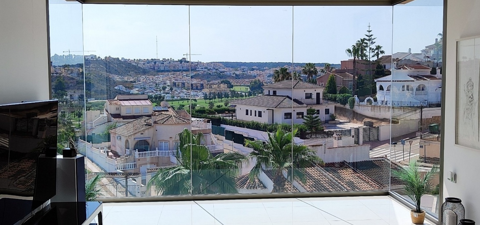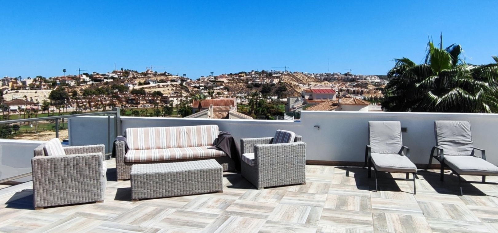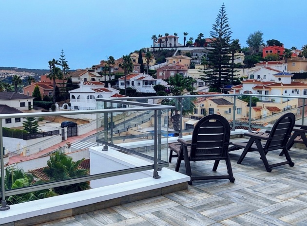 Vi är glada över att presentera denna skräddarsydda lyxiga 4/5-bäddsvilla med 3,5 badrum på marknaden i Ciudad Quesada med utsikt över golfbanan La Marquesa. Huset köptes ursprungligen som ett oavslutat projekt för 10 år sedan och stod färdigt av de nuvarande ägarna 2015 och har nyligen målats om både invändigt och utvändigt och poolen har kaklats om så den är i utmärkt skick. Det ligger stolt på en förhöjd 1203m2 tomt på Rojales/Quesada-gränsen med utsikt över landsbygden, golfbanan och det omgivande bostadsområdet. Fastigheten ligger i slutet av en privat tillfartsväg med motoriserade grindar som vetter mot en helkaklad tomt. Omedelbart till vänster finns en parkeringsplats på baksidan av villan som kan ta 3 bilar, i framtiden kan detta område täckas, det finns även gott om plats vid sidan av fastigheten för fler parkeringar vid behov. När du går runt till framsidan av villan blir du bara blåst av den fantastiska utsikten och öppenheten på tomten, till höger finns 2 nedre terrasser där du kan koppla av och koppla av eller installera en badtunna. Det stora poolområdet har ett överflöd av utrymme runt den 12 x 6 uppvärmda poolen och glasräcken på omkretsväggarna gör att utsikten aldrig hindras. Det finns en stor täckt veranda vid huvudentrén till huset där bekväma soffor och stolar placeras i skuggan för att njuta av det spanska vädret. Det finns också tillgång till bottenvåningens kök som också används som tvättstuga och det finns en WC för användning när du är vid poolen. Den invändiga planlösningen av fastigheten har lagts upp så att bottenvåningen handlar om att underhålla! De nuvarande ägarna använder loungen på nedervåningen som ett spelrum med ett biljardbord och ett airhockeybord samt TV och sittgrupp. På denna våning finns det också 2 sovrum ett är en stor dubbelsäng och det andra är ett familjerum med en dubbelsäng och 2 enkelsängar plus i detta rum finns det en ytterdörr. Bottenvåningen betjänas av ett duschrum med duschkabin, underdel och WC. Den första våningen i fastigheten rymmer det stora vardagsrummet omgivet av fönster inklusive en vägg av ramlöst glas som är som en enorm bild och ger så mycket ljus , köket i öppen planlösning är fullt utrustat med Neff-apparater inklusive en kaffebryggare, mikrovågsugn och dubbelugn plus en stor granit-ö med taklampor hängande över diskbänken med den bästa utsikten! Från vardagsrummet öppnar altandörrar upp mot en cirkulär täckt terrass som används som en matplats och plats att sitta och koppla av. På denna nivå har villan ytterligare ett badrum med duschkabin och ett stort dubbelrum med inbyggda garderober och altandörr som leder till sidoterrassen med sittgrupp och solplats med utsikt över poolen. Till översta våningen i denna magnifika villa har vi ett master bedroom med inbyggda garderober, huvudsängen sitter i mitten av rummet med en halvvägg som separerar omklädningsområdet, det finns ett eget duschrum med duschkabin och uteplatsfönster som kan öppnas på den massiva sidoterrassen. Utsidan av denna fastighet fortsätter bara att ge med ytterligare en trappa som leder till taket och även om detta är bruksområdet som rymmer luftkonditioneringskompressorerna och solpanelerna för varmvatten, är det också toppen av huset och en fantastisk plats att sitta och stjärnblicka eller titta på eldverk från de omgivande byarna på fiestakvällar. Detta är ett speciellt hus och ses bäst efter överenskommelse antingen personligen eller som en virtuell visning. De nuvarande ägarna har använt villan både som familjesemesterhus och för privat uthyrning vilket har gett god vinst. fråga oss för mer information.