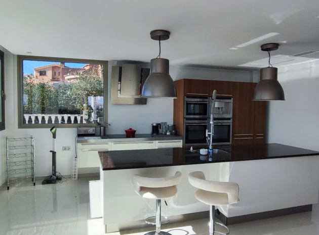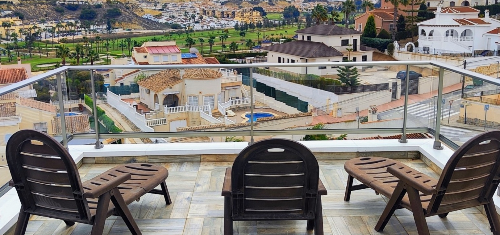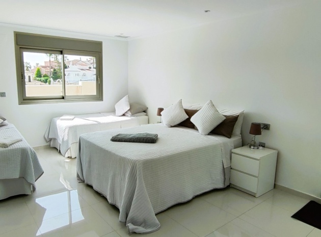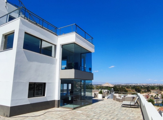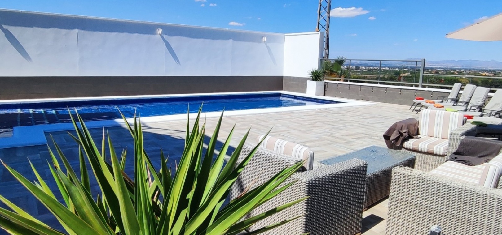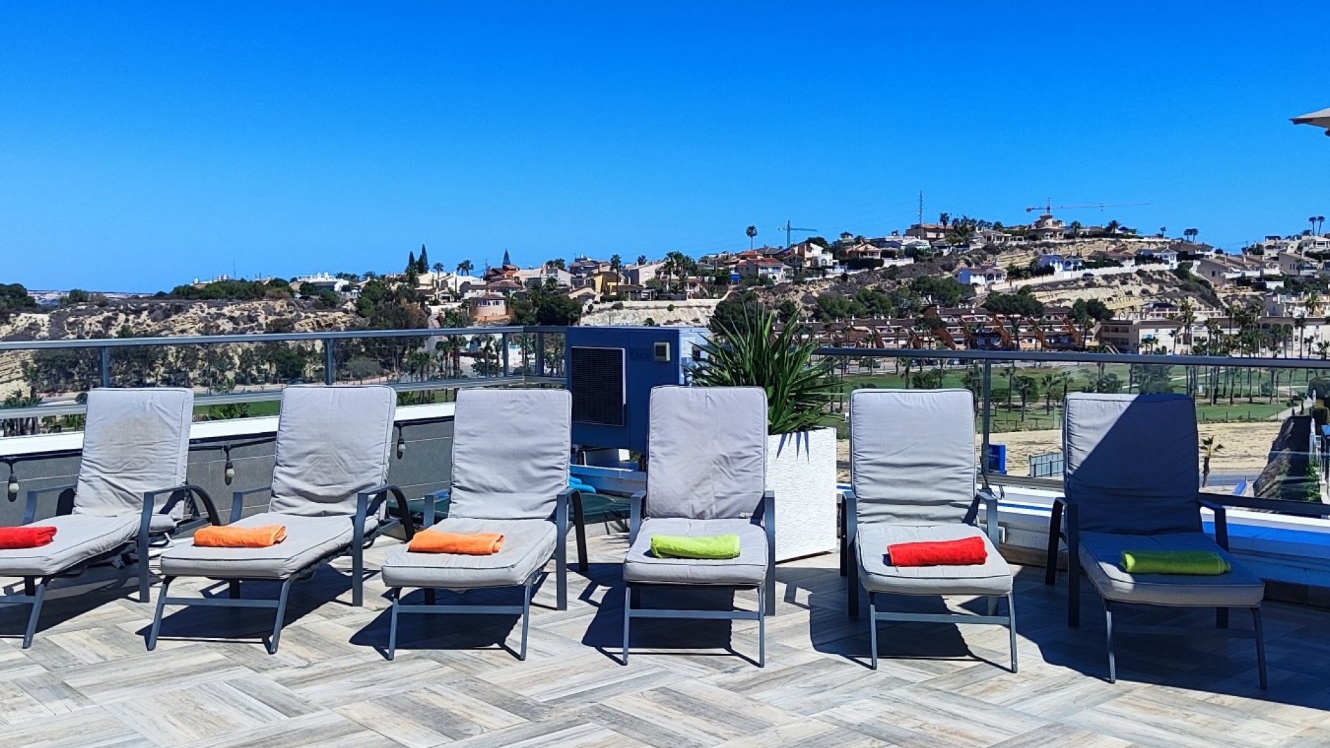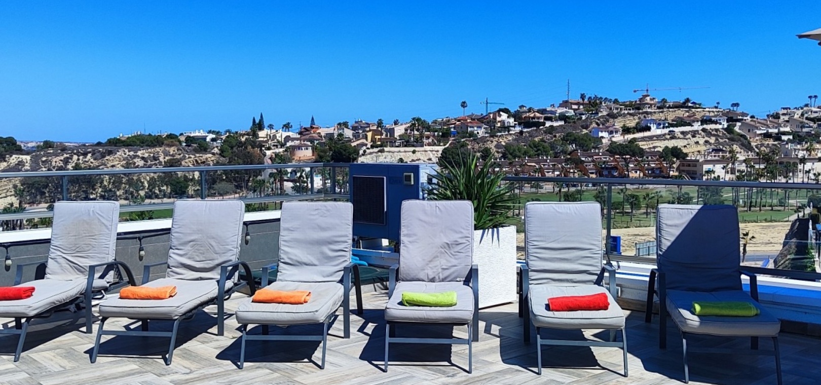 Vi är glada över att presentera denna skräddarsydda lyxiga 4/5-bäddsvilla med 3,5 badrum på marknaden i Ciudad Quesada med utsikt över golfbanan La Marquesa. Huset köptes ursprungligen som ett oavslutat projekt för 10 år sedan och stod färdigt av de nuvarande ägarna 2015 och har nyligen målats om både invändigt och utvändigt och poolen har kaklats om så den är i utmärkt skick. Det ligger stolt på en förhöjd 1203m2 tomt på Rojales/Quesada-gränsen med utsikt över landsbygden, golfbanan och det omgivande bostadsområdet. Fastigheten ligger i slutet av en privat tillfartsväg med motoriserade grindar som vetter mot en helkaklad tomt. Omedelbart till vänster finns en parkeringsplats på baksidan av villan som kan ta 3 bilar, i framtiden kan detta område täckas, det finns även gott om plats vid sidan av fastigheten för fler parkeringar vid behov. När du går runt till framsidan av villan blir du bara blåst av den fantastiska utsikten och öppenheten på tomten, till höger finns 2 nedre terrasser där du kan koppla av och koppla av eller installera en badtunna. Det stora poolområdet har ett överflöd av utrymme runt den 12 x 6 uppvärmda poolen och glasräcken på omkretsväggarna gör att utsikten aldrig hindras. Det finns en stor täckt veranda vid huvudentrén till huset där bekväma soffor och stolar placeras i skuggan för att njuta av det spanska vädret. Det finns också tillgång till bottenvåningens kök som också används som tvättstuga och det finns en WC för användning när du är vid poolen. Den invändiga planlösningen av fastigheten har lagts upp så att bottenvåningen handlar om att underhålla! De nuvarande ägarna använder loungen på nedervåningen som ett spelrum med ett biljardbord och ett airhockeybord samt TV och sittgrupp. På denna våning finns det också 2 sovrum ett är en stor dubbelsäng och det andra är ett familjerum med en dubbelsäng och 2 enkelsängar plus i detta rum finns det en ytterdörr. Bottenvåningen betjänas av ett duschrum med duschkabin, underdel och WC. Den första våningen i fastigheten rymmer det stora vardagsrummet omgivet av fönster inklusive en vägg av ramlöst glas som är som en enorm bild och ger så mycket ljus , köket i öppen planlösning är fullt utrustat med Neff-apparater inklusive en kaffebryggare, mikrovågsugn och dubbelugn plus en stor granit-ö med taklampor hängande över diskbänken med den bästa utsikten! Från vardagsrummet öppnar altandörrar upp mot en cirkulär täckt terrass som används som en matplats och plats att sitta och koppla av. På denna nivå har villan ytterligare ett badrum med duschkabin och ett stort dubbelrum med inbyggda garderober och altandörr som leder till sidoterrassen med sittgrupp och solplats med utsikt över poolen. Till översta våningen i denna magnifika villa har vi ett master bedroom med inbyggda garderober, huvudsängen sitter i mitten av rummet med en halvvägg som separerar omklädningsområdet, det finns ett eget duschrum med duschkabin och uteplatsfönster som kan öppnas på den massiva sidoterrassen. Utsidan av denna fastighet fortsätter bara att ge med ytterligare en trappa som leder till taket och även om detta är bruksområdet som rymmer luftkonditioneringskompressorerna och solpanelerna för varmvatten, är det också toppen av huset och en fantastisk plats att sitta och stjärnblicka eller titta på eldverk från de omgivande byarna på fiestakvällar. Detta är ett speciellt hus och ses bäst efter överenskommelse antingen personligen eller som en virtuell visning. De nuvarande ägarna har använt villan både som familjesemesterhus och för privat uthyrning vilket har gett god vinst. fråga oss för mer information.