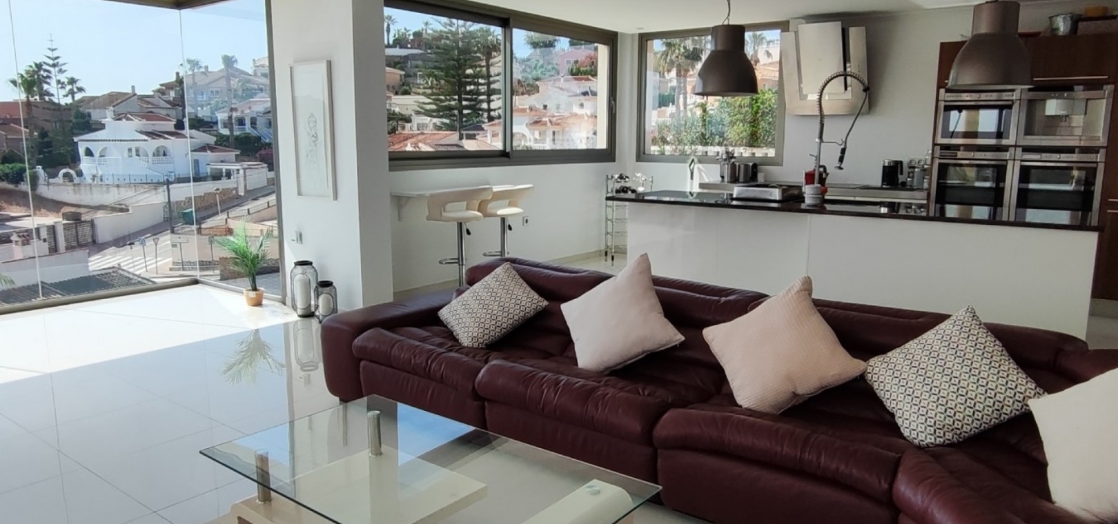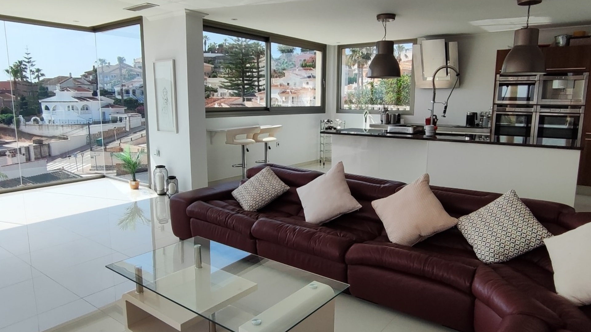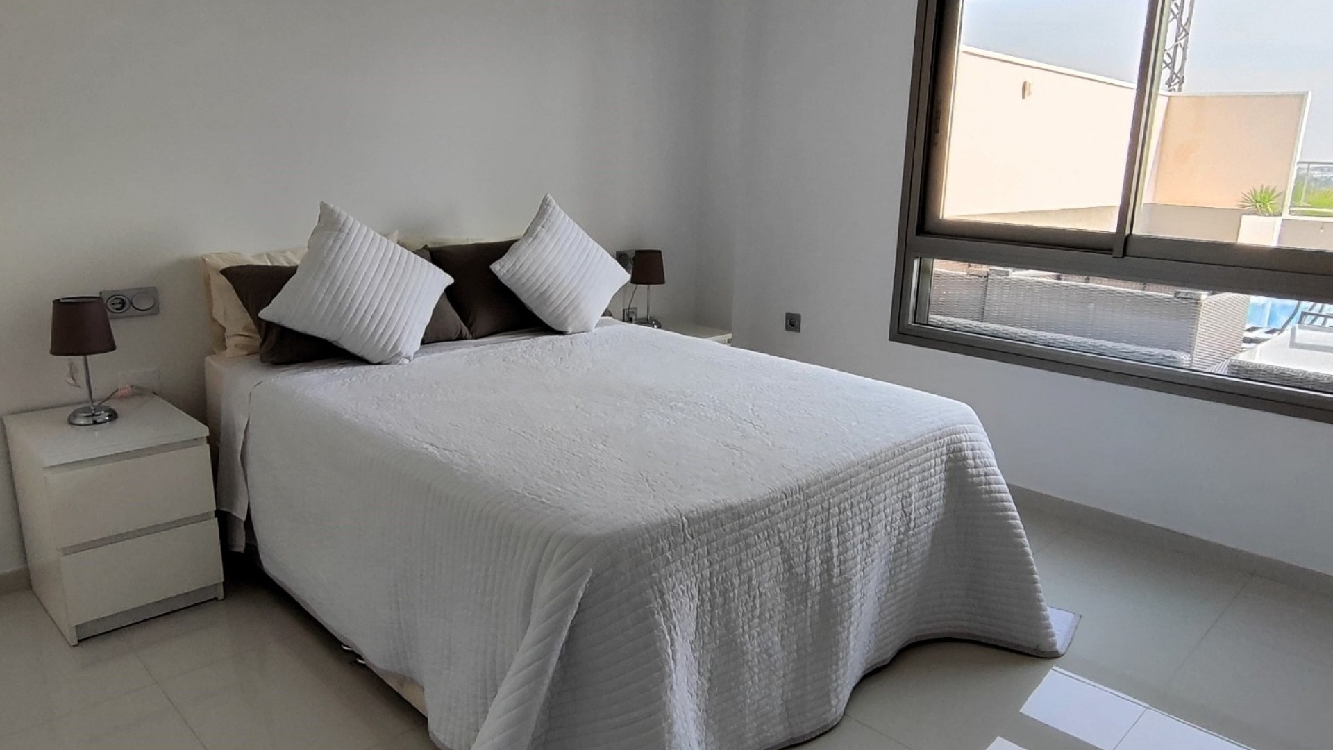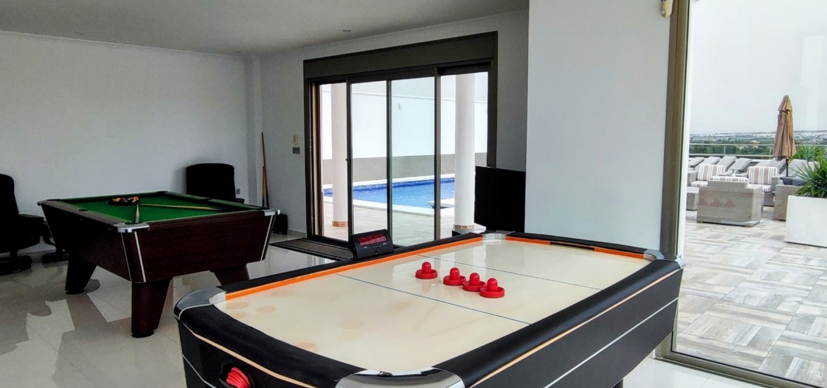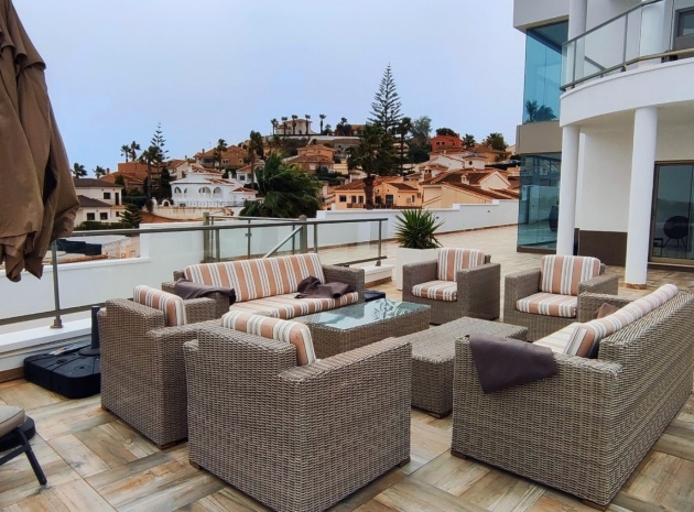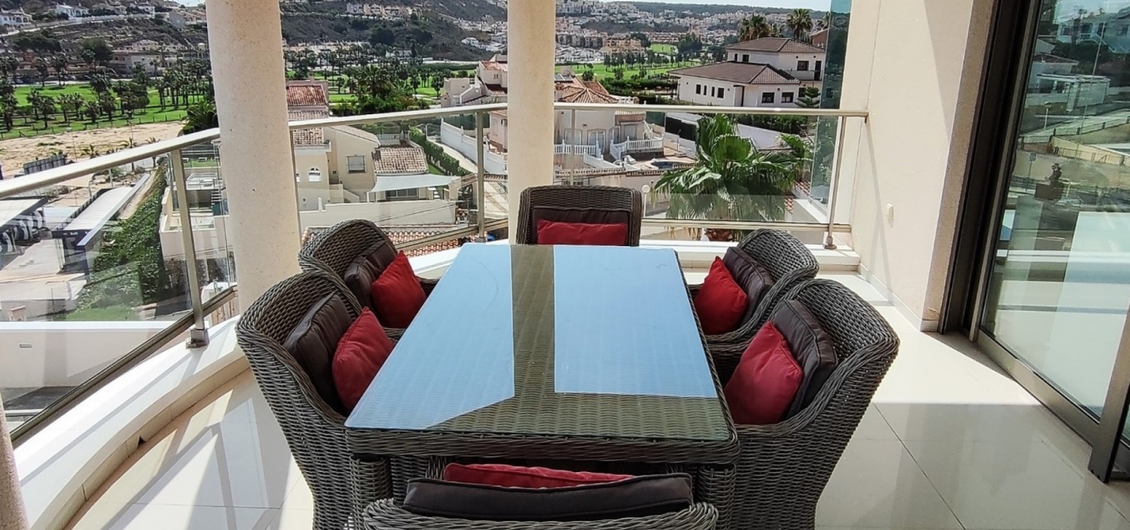 Vi är glada över att presentera denna skräddarsydda lyxiga 4/5-bäddsvilla med 3,5 badrum på marknaden i Ciudad Quesada med utsikt över golfbanan La Marquesa. Huset köptes ursprungligen som ett oavslutat projekt för 10 år sedan och stod färdigt av de nuvarande ägarna 2015 och har nyligen målats om både invändigt och utvändigt och poolen har kaklats om så den är i utmärkt skick. Det ligger stolt på en förhöjd 1203m2 tomt på Rojales/Quesada-gränsen med utsikt över landsbygden, golfbanan och det omgivande bostadsområdet. Fastigheten ligger i slutet av en privat tillfartsväg med motoriserade grindar som vetter mot en helkaklad tomt. Omedelbart till vänster finns en parkeringsplats på baksidan av villan som kan ta 3 bilar, i framtiden kan detta område täckas, det finns även gott om plats vid sidan av fastigheten för fler parkeringar vid behov. När du går runt till framsidan av villan blir du bara blåst av den fantastiska utsikten och öppenheten på tomten, till höger finns 2 nedre terrasser där du kan koppla av och koppla av eller installera en badtunna. Det stora poolområdet har ett överflöd av utrymme runt den 12 x 6 uppvärmda poolen och glasräcken på omkretsväggarna gör att utsikten aldrig hindras. Det finns en stor täckt veranda vid huvudentrén till huset där bekväma soffor och stolar placeras i skuggan för att njuta av det spanska vädret. Det finns också tillgång till bottenvåningens kök som också används som tvättstuga och det finns en WC för användning när du är vid poolen. Den invändiga planlösningen av fastigheten har lagts upp så att bottenvåningen handlar om att underhålla! De nuvarande ägarna använder loungen på nedervåningen som ett spelrum med ett biljardbord och ett airhockeybord samt TV och sittgrupp. På denna våning finns det också 2 sovrum ett är en stor dubbelsäng och det andra är ett familjerum med en dubbelsäng och 2 enkelsängar plus i detta rum finns det en ytterdörr. Bottenvåningen betjänas av ett duschrum med duschkabin, underdel och WC. Den första våningen i fastigheten rymmer det stora vardagsrummet omgivet av fönster inklusive en vägg av ramlöst glas som är som en enorm bild och ger så mycket ljus , köket i öppen planlösning är fullt utrustat med Neff-apparater inklusive en kaffebryggare, mikrovågsugn och dubbelugn plus en stor granit-ö med taklampor hängande över diskbänken med den bästa utsikten! Från vardagsrummet öppnar altandörrar upp mot en cirkulär täckt terrass som används som en matplats och plats att sitta och koppla av. På denna nivå har villan ytterligare ett badrum med duschkabin och ett stort dubbelrum med inbyggda garderober och altandörr som leder till sidoterrassen med sittgrupp och solplats med utsikt över poolen. Till översta våningen i denna magnifika villa har vi ett master bedroom med inbyggda garderober, huvudsängen sitter i mitten av rummet med en halvvägg som separerar omklädningsområdet, det finns ett eget duschrum med duschkabin och uteplatsfönster som kan öppnas på den massiva sidoterrassen. Utsidan av denna fastighet fortsätter bara att ge med ytterligare en trappa som leder till taket och även om detta är bruksområdet som rymmer luftkonditioneringskompressorerna och solpanelerna för varmvatten, är det också toppen av huset och en fantastisk plats att sitta och stjärnblicka eller titta på eldverk från de omgivande byarna på fiestakvällar. Detta är ett speciellt hus och ses bäst efter överenskommelse antingen personligen eller som en virtuell visning. De nuvarande ägarna har använt villan både som familjesemesterhus och för privat uthyrning vilket har gett god vinst. fråga oss för mer information.