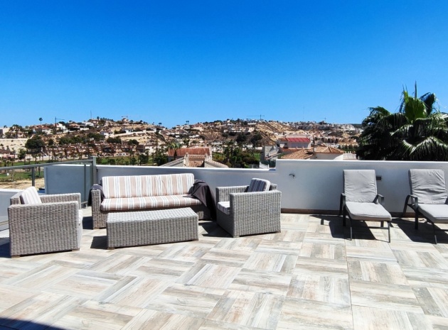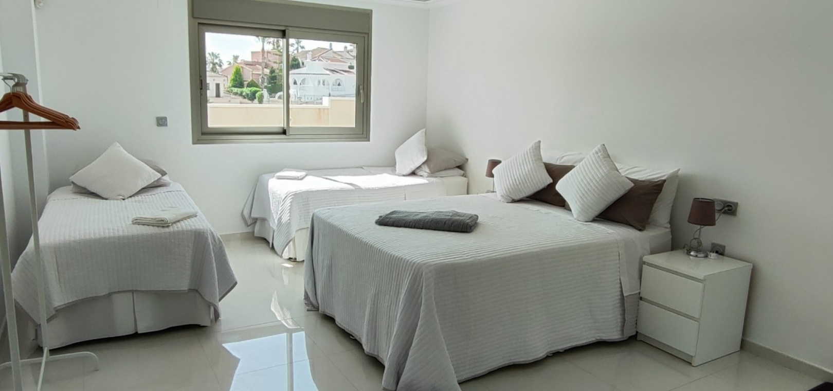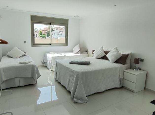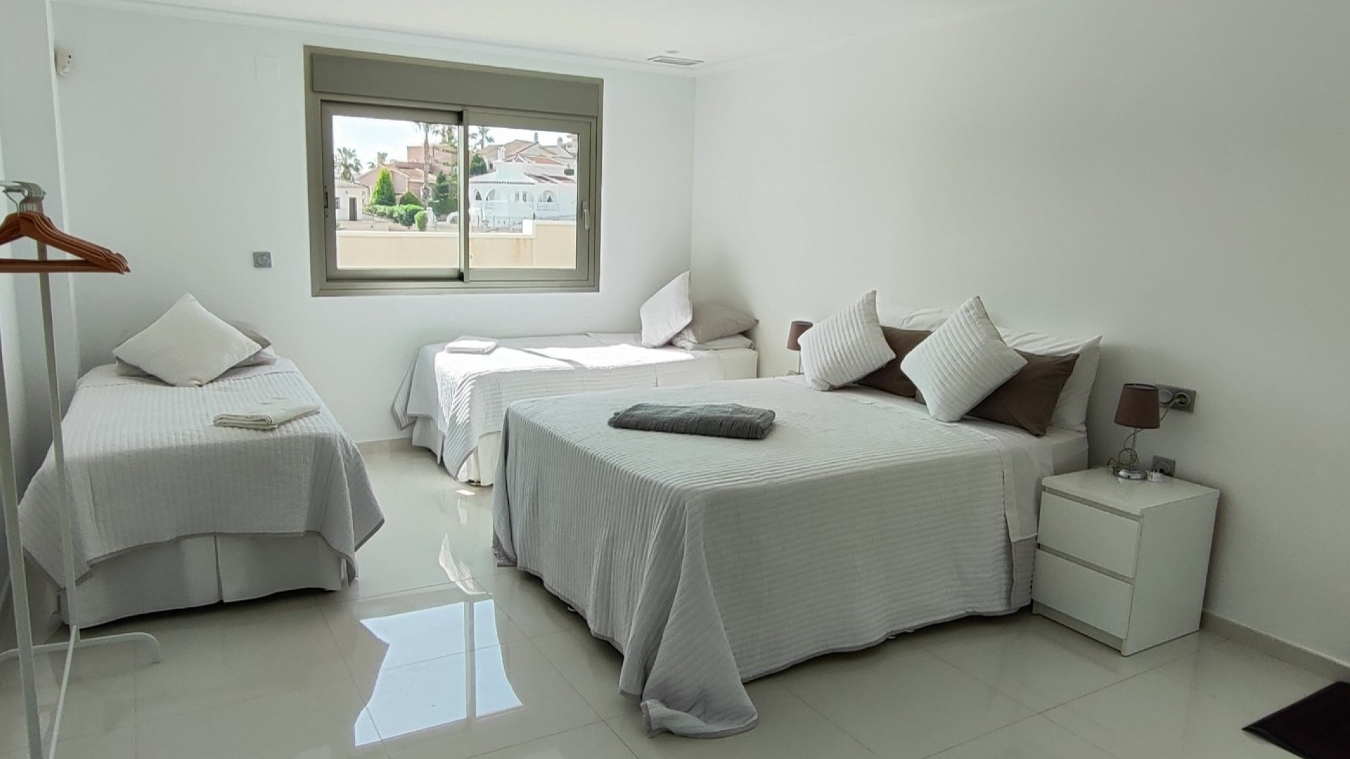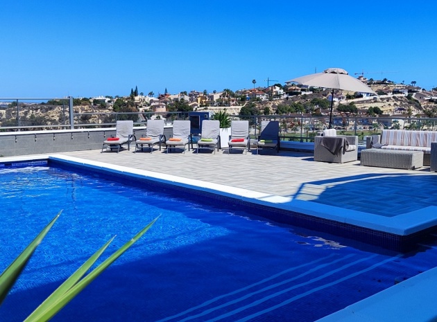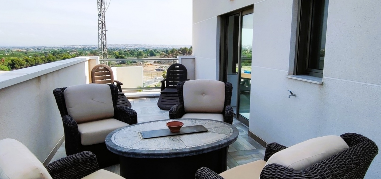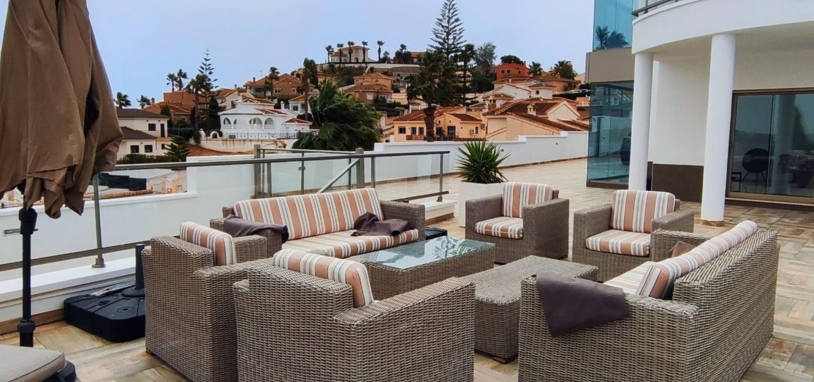 Vi är glada över att presentera denna skräddarsydda lyxiga 4/5-bäddsvilla med 3,5 badrum på marknaden i Ciudad Quesada med utsikt över golfbanan La Marquesa. Huset köptes ursprungligen som ett oavslutat projekt för 10 år sedan och stod färdigt av de nuvarande ägarna 2015 och har nyligen målats om både invändigt och utvändigt och poolen har kaklats om så den är i utmärkt skick. Det ligger stolt på en förhöjd 1203m2 tomt på Rojales/Quesada-gränsen med utsikt över landsbygden, golfbanan och det omgivande bostadsområdet. Fastigheten ligger i slutet av en privat tillfartsväg med motoriserade grindar som vetter mot en helkaklad tomt. Omedelbart till vänster finns en parkeringsplats på baksidan av villan som kan ta 3 bilar, i framtiden kan detta område täckas, det finns även gott om plats vid sidan av fastigheten för fler parkeringar vid behov. När du går runt till framsidan av villan blir du bara blåst av den fantastiska utsikten och öppenheten på tomten, till höger finns 2 nedre terrasser där du kan koppla av och koppla av eller installera en badtunna. Det stora poolområdet har ett överflöd av utrymme runt den 12 x 6 uppvärmda poolen och glasräcken på omkretsväggarna gör att utsikten aldrig hindras. Det finns en stor täckt veranda vid huvudentrén till huset där bekväma soffor och stolar placeras i skuggan för att njuta av det spanska vädret. Det finns också tillgång till bottenvåningens kök som också används som tvättstuga och det finns en WC för användning när du är vid poolen. Den invändiga planlösningen av fastigheten har lagts upp så att bottenvåningen handlar om att underhålla! De nuvarande ägarna använder loungen på nedervåningen som ett spelrum med ett biljardbord och ett airhockeybord samt TV och sittgrupp. På denna våning finns det också 2 sovrum ett är en stor dubbelsäng och det andra är ett familjerum med en dubbelsäng och 2 enkelsängar plus i detta rum finns det en ytterdörr. Bottenvåningen betjänas av ett duschrum med duschkabin, underdel och WC. Den första våningen i fastigheten rymmer det stora vardagsrummet omgivet av fönster inklusive en vägg av ramlöst glas som är som en enorm bild och ger så mycket ljus , köket i öppen planlösning är fullt utrustat med Neff-apparater inklusive en kaffebryggare, mikrovågsugn och dubbelugn plus en stor granit-ö med taklampor hängande över diskbänken med den bästa utsikten! Från vardagsrummet öppnar altandörrar upp mot en cirkulär täckt terrass som används som en matplats och plats att sitta och koppla av. På denna nivå har villan ytterligare ett badrum med duschkabin och ett stort dubbelrum med inbyggda garderober och altandörr som leder till sidoterrassen med sittgrupp och solplats med utsikt över poolen. Till översta våningen i denna magnifika villa har vi ett master bedroom med inbyggda garderober, huvudsängen sitter i mitten av rummet med en halvvägg som separerar omklädningsområdet, det finns ett eget duschrum med duschkabin och uteplatsfönster som kan öppnas på den massiva sidoterrassen. Utsidan av denna fastighet fortsätter bara att ge med ytterligare en trappa som leder till taket och även om detta är bruksområdet som rymmer luftkonditioneringskompressorerna och solpanelerna för varmvatten, är det också toppen av huset och en fantastisk plats att sitta och stjärnblicka eller titta på eldverk från de omgivande byarna på fiestakvällar. Detta är ett speciellt hus och ses bäst efter överenskommelse antingen personligen eller som en virtuell visning. De nuvarande ägarna har använt villan både som familjesemesterhus och för privat uthyrning vilket har gett god vinst. fråga oss för mer information.