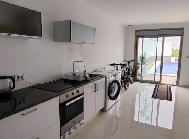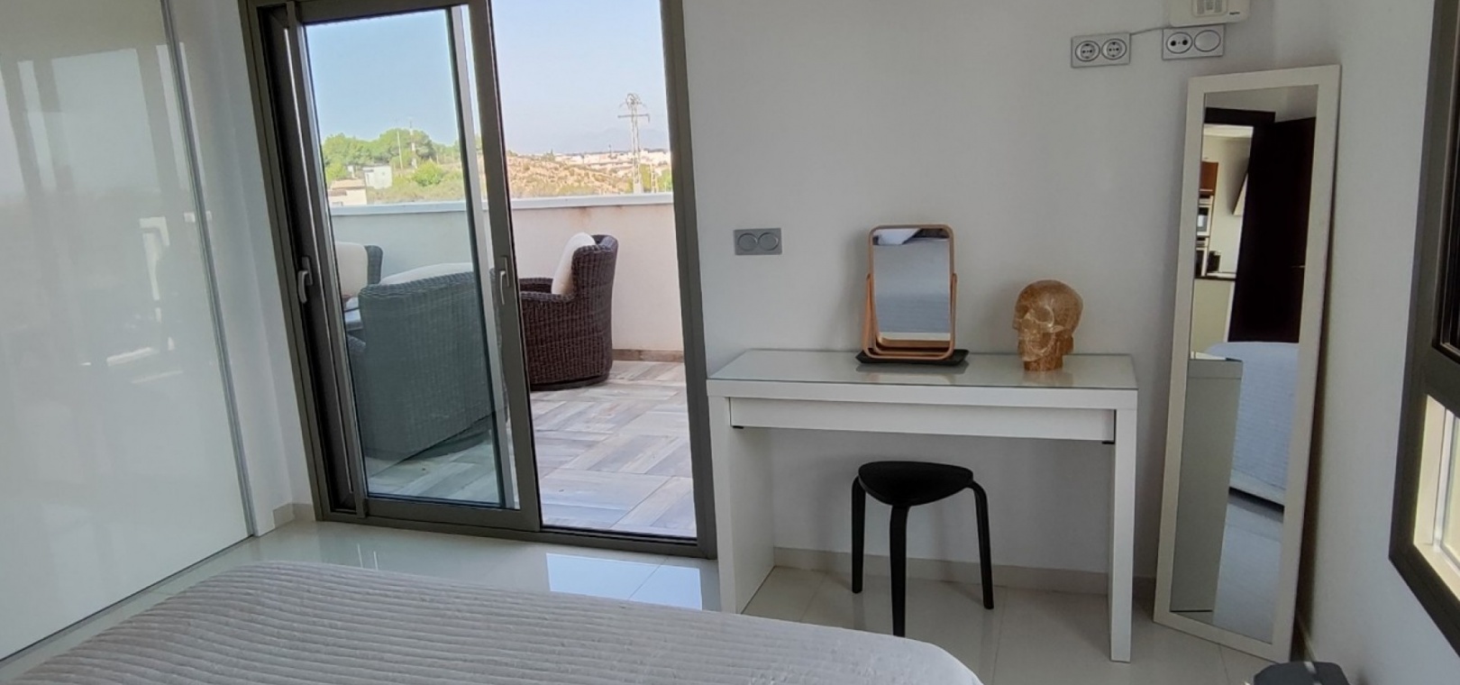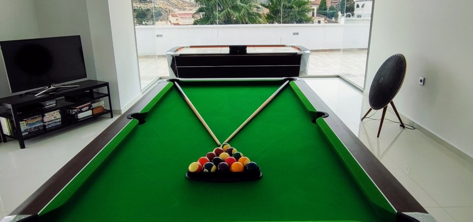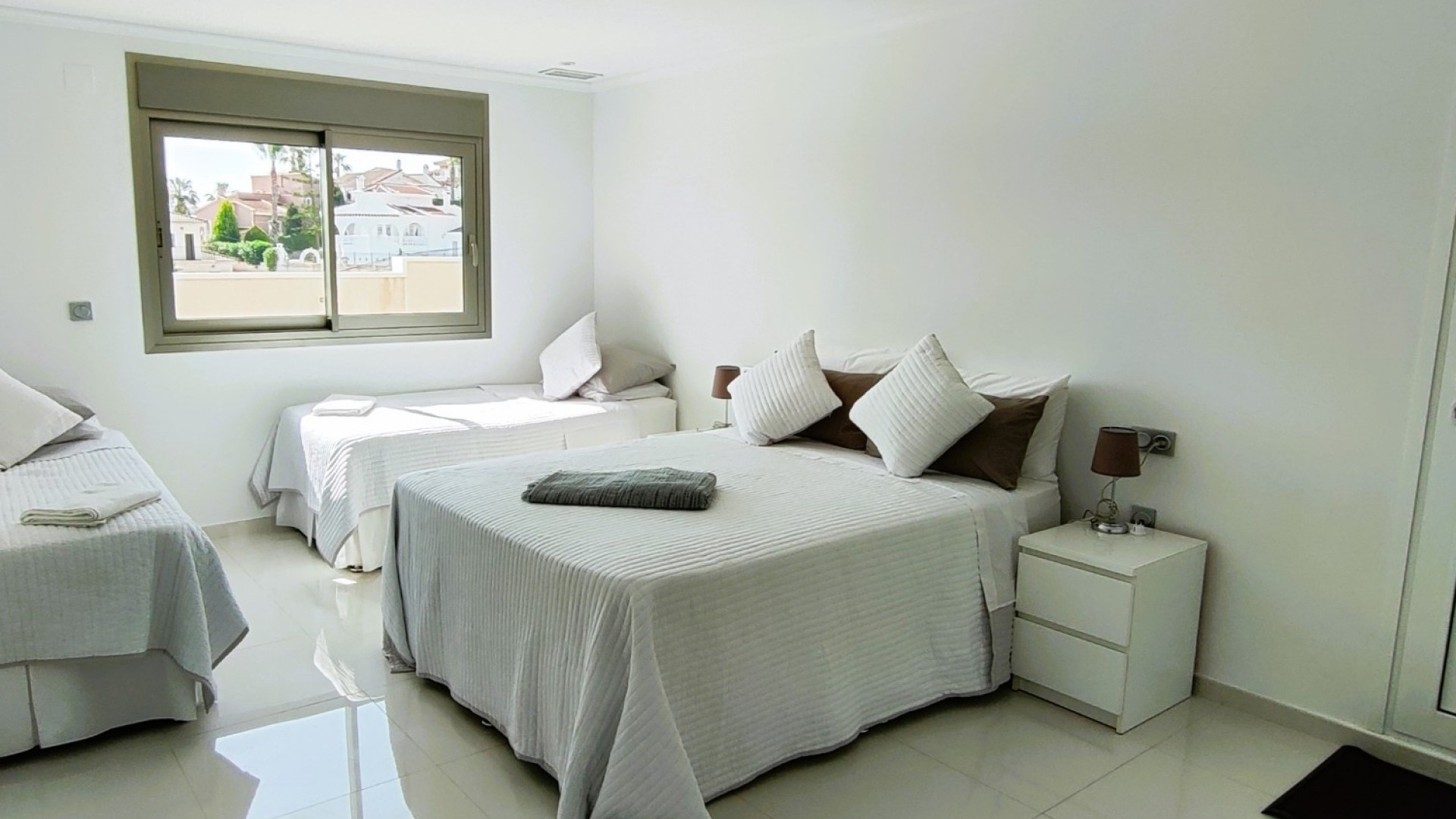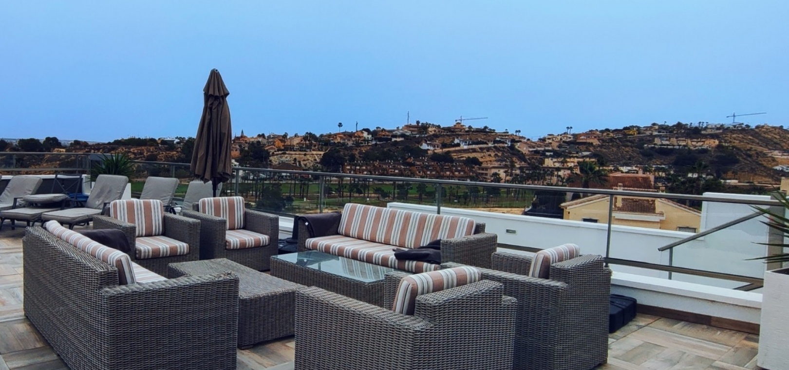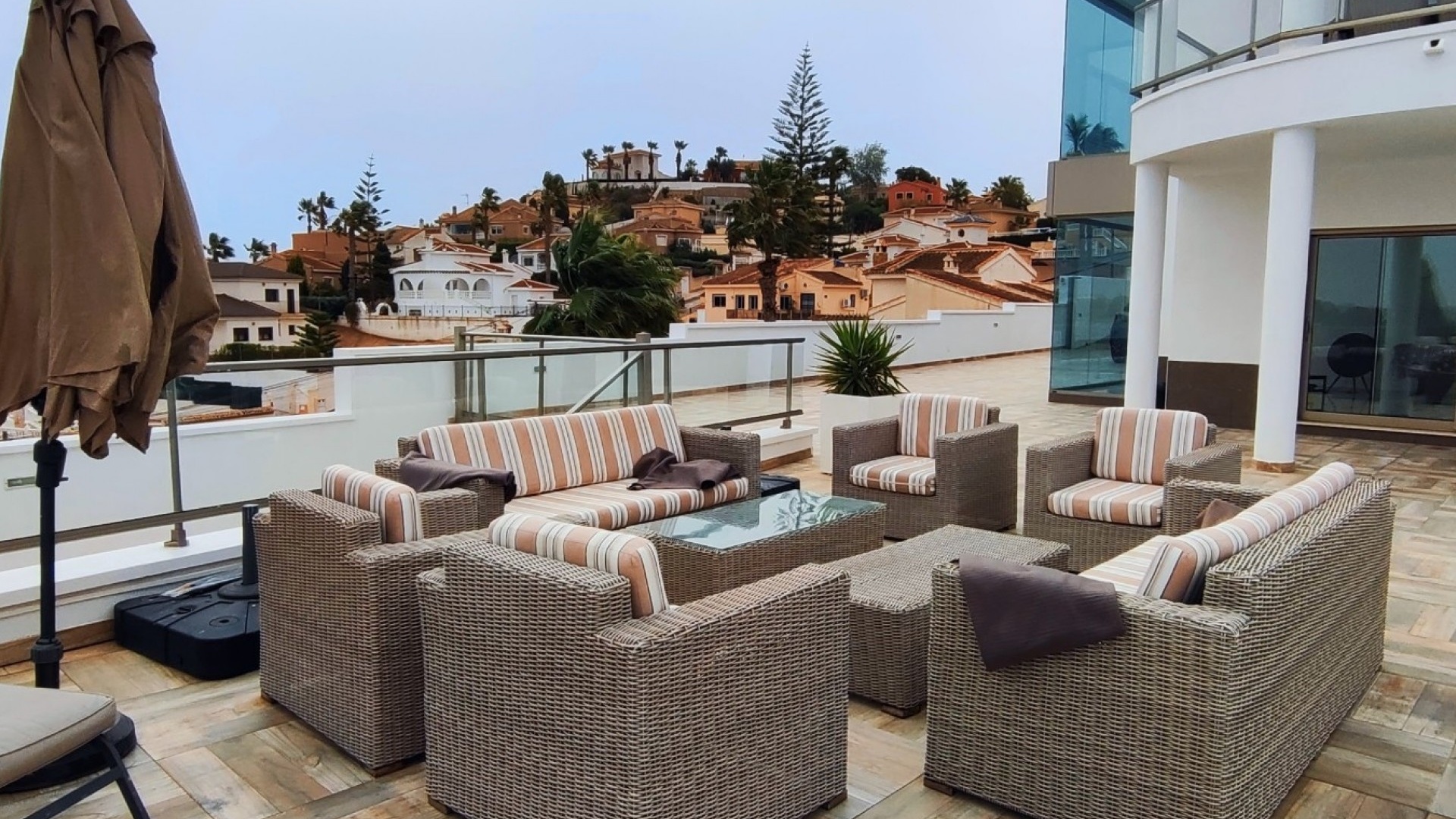 Vi är glada över att presentera denna skräddarsydda lyxiga 4/5-bäddsvilla med 3,5 badrum på marknaden i Ciudad Quesada med utsikt över golfbanan La Marquesa. Huset köptes ursprungligen som ett oavslutat projekt för 10 år sedan och stod färdigt av de nuvarande ägarna 2015 och har nyligen målats om både invändigt och utvändigt och poolen har kaklats om så den är i utmärkt skick. Det ligger stolt på en förhöjd 1203m2 tomt på Rojales/Quesada-gränsen med utsikt över landsbygden, golfbanan och det omgivande bostadsområdet. Fastigheten ligger i slutet av en privat tillfartsväg med motoriserade grindar som vetter mot en helkaklad tomt. Omedelbart till vänster finns en parkeringsplats på baksidan av villan som kan ta 3 bilar, i framtiden kan detta område täckas, det finns även gott om plats vid sidan av fastigheten för fler parkeringar vid behov. När du går runt till framsidan av villan blir du bara blåst av den fantastiska utsikten och öppenheten på tomten, till höger finns 2 nedre terrasser där du kan koppla av och koppla av eller installera en badtunna. Det stora poolområdet har ett överflöd av utrymme runt den 12 x 6 uppvärmda poolen och glasräcken på omkretsväggarna gör att utsikten aldrig hindras. Det finns en stor täckt veranda vid huvudentrén till huset där bekväma soffor och stolar placeras i skuggan för att njuta av det spanska vädret. Det finns också tillgång till bottenvåningens kök som också används som tvättstuga och det finns en WC för användning när du är vid poolen. Den invändiga planlösningen av fastigheten har lagts upp så att bottenvåningen handlar om att underhålla! De nuvarande ägarna använder loungen på nedervåningen som ett spelrum med ett biljardbord och ett airhockeybord samt TV och sittgrupp. På denna våning finns det också 2 sovrum ett är en stor dubbelsäng och det andra är ett familjerum med en dubbelsäng och 2 enkelsängar plus i detta rum finns det en ytterdörr. Bottenvåningen betjänas av ett duschrum med duschkabin, underdel och WC. Den första våningen i fastigheten rymmer det stora vardagsrummet omgivet av fönster inklusive en vägg av ramlöst glas som är som en enorm bild och ger så mycket ljus , köket i öppen planlösning är fullt utrustat med Neff-apparater inklusive en kaffebryggare, mikrovågsugn och dubbelugn plus en stor granit-ö med taklampor hängande över diskbänken med den bästa utsikten! Från vardagsrummet öppnar altandörrar upp mot en cirkulär täckt terrass som används som en matplats och plats att sitta och koppla av. På denna nivå har villan ytterligare ett badrum med duschkabin och ett stort dubbelrum med inbyggda garderober och altandörr som leder till sidoterrassen med sittgrupp och solplats med utsikt över poolen. Till översta våningen i denna magnifika villa har vi ett master bedroom med inbyggda garderober, huvudsängen sitter i mitten av rummet med en halvvägg som separerar omklädningsområdet, det finns ett eget duschrum med duschkabin och uteplatsfönster som kan öppnas på den massiva sidoterrassen. Utsidan av denna fastighet fortsätter bara att ge med ytterligare en trappa som leder till taket och även om detta är bruksområdet som rymmer luftkonditioneringskompressorerna och solpanelerna för varmvatten, är det också toppen av huset och en fantastisk plats att sitta och stjärnblicka eller titta på eldverk från de omgivande byarna på fiestakvällar. Detta är ett speciellt hus och ses bäst efter överenskommelse antingen personligen eller som en virtuell visning. De nuvarande ägarna har använt villan både som familjesemesterhus och för privat uthyrning vilket har gett god vinst. fråga oss för mer information.
