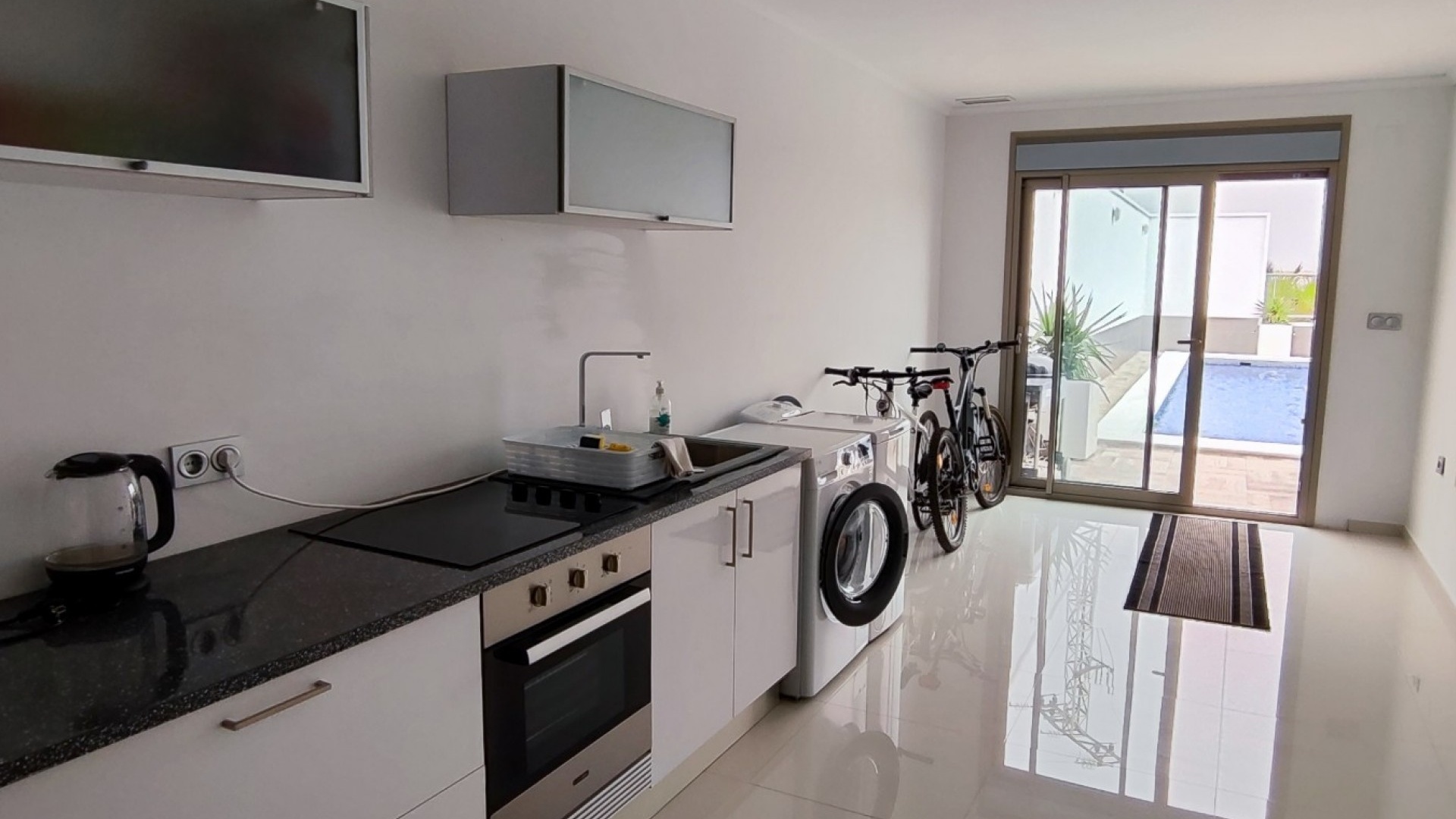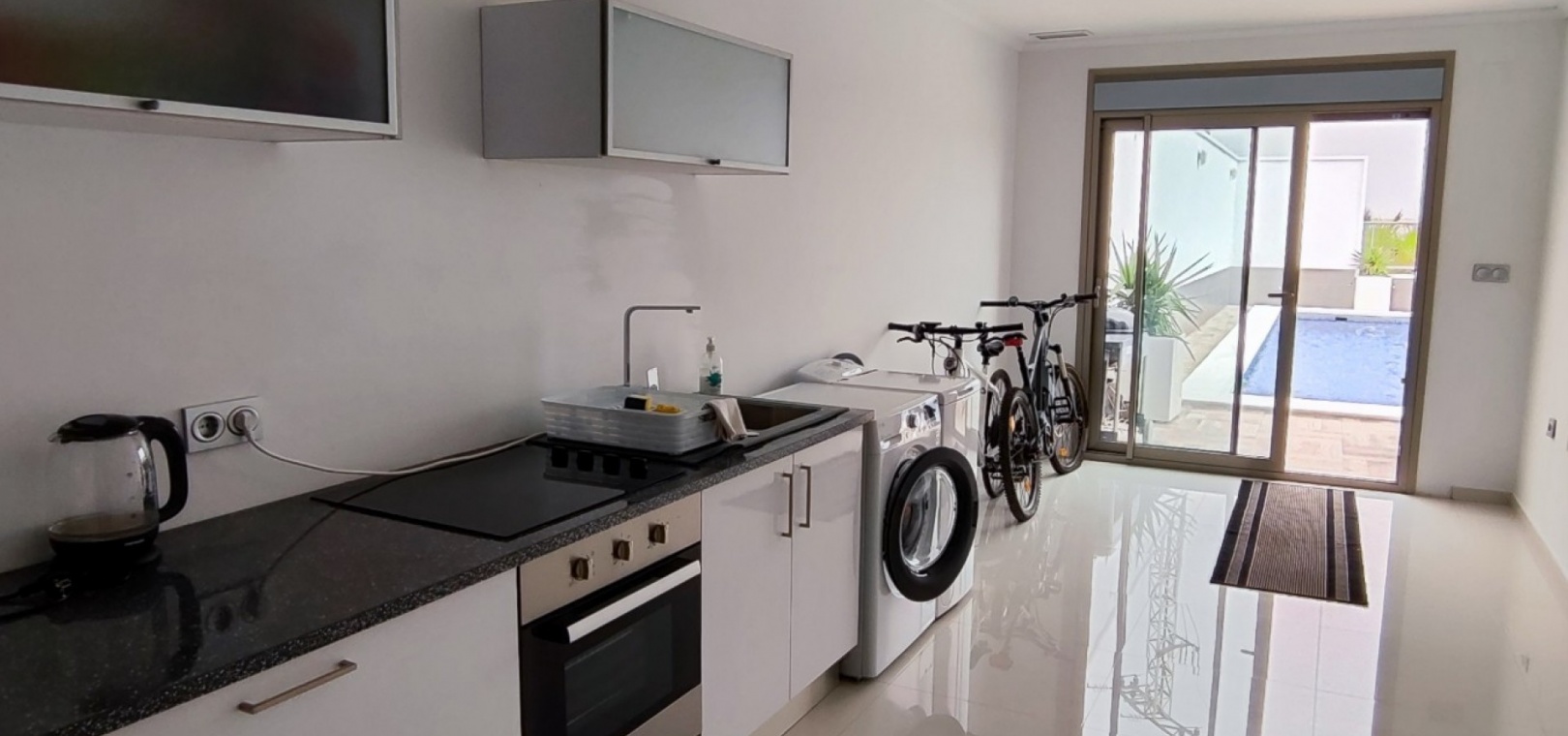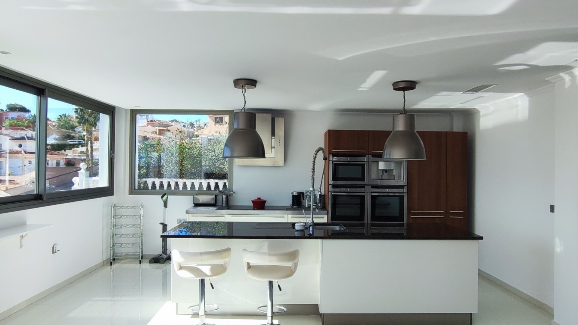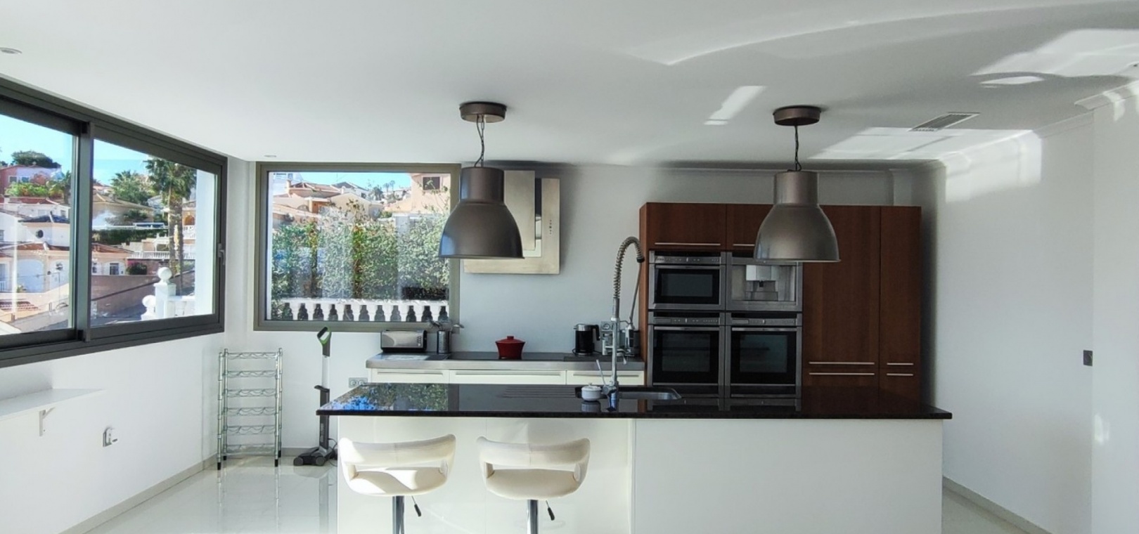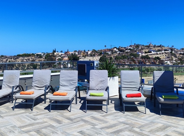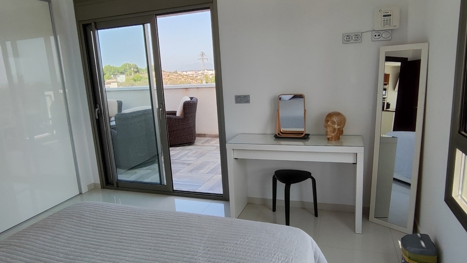 Vi är glada över att presentera denna skräddarsydda lyxiga 4/5-bäddsvilla med 3,5 badrum på marknaden i Ciudad Quesada med utsikt över golfbanan La Marquesa. Huset köptes ursprungligen som ett oavslutat projekt för 10 år sedan och stod färdigt av de nuvarande ägarna 2015 och har nyligen målats om både invändigt och utvändigt och poolen har kaklats om så den är i utmärkt skick. Det ligger stolt på en förhöjd 1203m2 tomt på Rojales/Quesada-gränsen med utsikt över landsbygden, golfbanan och det omgivande bostadsområdet. Fastigheten ligger i slutet av en privat tillfartsväg med motoriserade grindar som vetter mot en helkaklad tomt. Omedelbart till vänster finns en parkeringsplats på baksidan av villan som kan ta 3 bilar, i framtiden kan detta område täckas, det finns även gott om plats vid sidan av fastigheten för fler parkeringar vid behov. När du går runt till framsidan av villan blir du bara blåst av den fantastiska utsikten och öppenheten på tomten, till höger finns 2 nedre terrasser där du kan koppla av och koppla av eller installera en badtunna. Det stora poolområdet har ett överflöd av utrymme runt den 12 x 6 uppvärmda poolen och glasräcken på omkretsväggarna gör att utsikten aldrig hindras. Det finns en stor täckt veranda vid huvudentrén till huset där bekväma soffor och stolar placeras i skuggan för att njuta av det spanska vädret. Det finns också tillgång till bottenvåningens kök som också används som tvättstuga och det finns en WC för användning när du är vid poolen. Den invändiga planlösningen av fastigheten har lagts upp så att bottenvåningen handlar om att underhålla! De nuvarande ägarna använder loungen på nedervåningen som ett spelrum med ett biljardbord och ett airhockeybord samt TV och sittgrupp. På denna våning finns det också 2 sovrum ett är en stor dubbelsäng och det andra är ett familjerum med en dubbelsäng och 2 enkelsängar plus i detta rum finns det en ytterdörr. Bottenvåningen betjänas av ett duschrum med duschkabin, underdel och WC. Den första våningen i fastigheten rymmer det stora vardagsrummet omgivet av fönster inklusive en vägg av ramlöst glas som är som en enorm bild och ger så mycket ljus , köket i öppen planlösning är fullt utrustat med Neff-apparater inklusive en kaffebryggare, mikrovågsugn och dubbelugn plus en stor granit-ö med taklampor hängande över diskbänken med den bästa utsikten! Från vardagsrummet öppnar altandörrar upp mot en cirkulär täckt terrass som används som en matplats och plats att sitta och koppla av. På denna nivå har villan ytterligare ett badrum med duschkabin och ett stort dubbelrum med inbyggda garderober och altandörr som leder till sidoterrassen med sittgrupp och solplats med utsikt över poolen. Till översta våningen i denna magnifika villa har vi ett master bedroom med inbyggda garderober, huvudsängen sitter i mitten av rummet med en halvvägg som separerar omklädningsområdet, det finns ett eget duschrum med duschkabin och uteplatsfönster som kan öppnas på den massiva sidoterrassen. Utsidan av denna fastighet fortsätter bara att ge med ytterligare en trappa som leder till taket och även om detta är bruksområdet som rymmer luftkonditioneringskompressorerna och solpanelerna för varmvatten, är det också toppen av huset och en fantastisk plats att sitta och stjärnblicka eller titta på eldverk från de omgivande byarna på fiestakvällar. Detta är ett speciellt hus och ses bäst efter överenskommelse antingen personligen eller som en virtuell visning. De nuvarande ägarna har använt villan både som familjesemesterhus och för privat uthyrning vilket har gett god vinst. fråga oss för mer information.