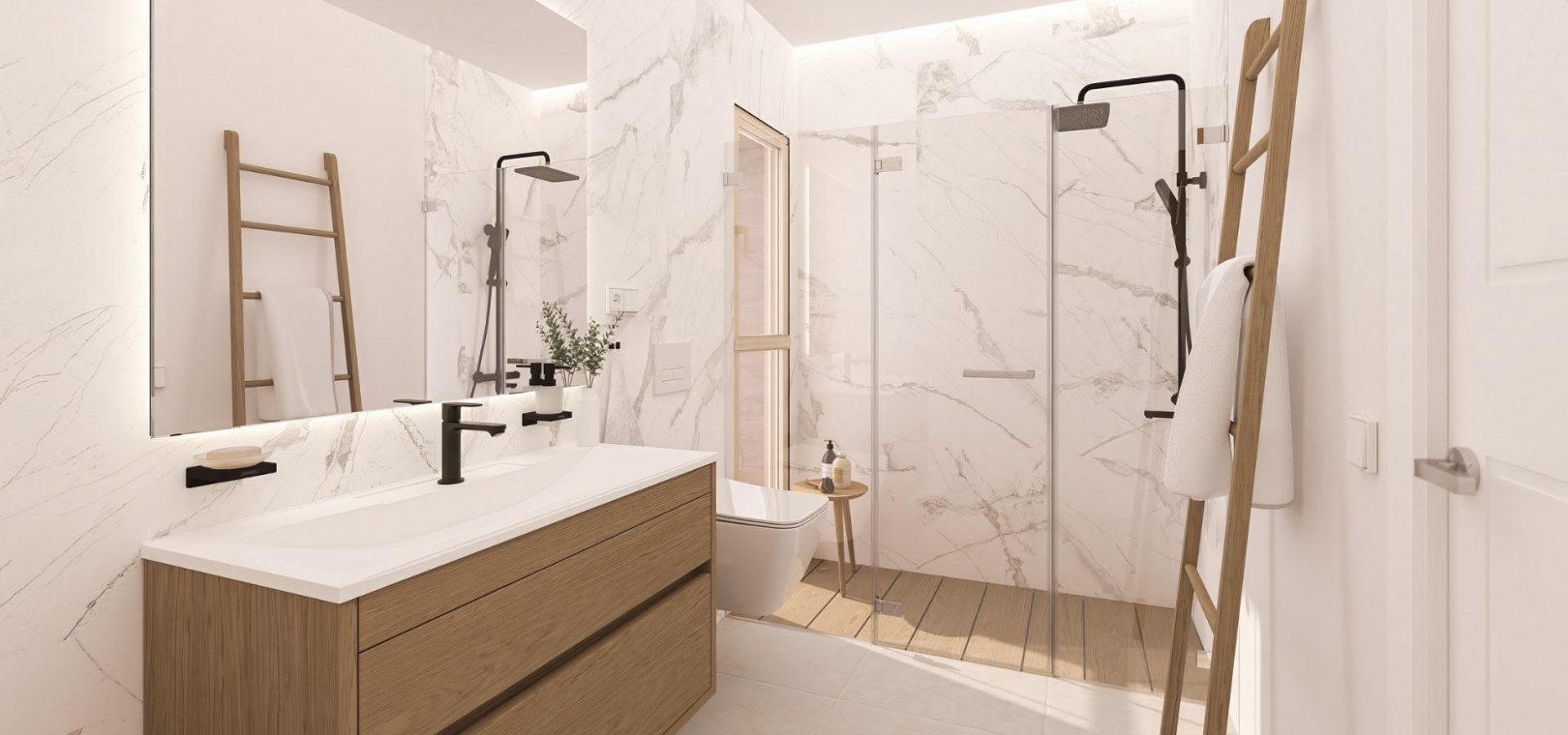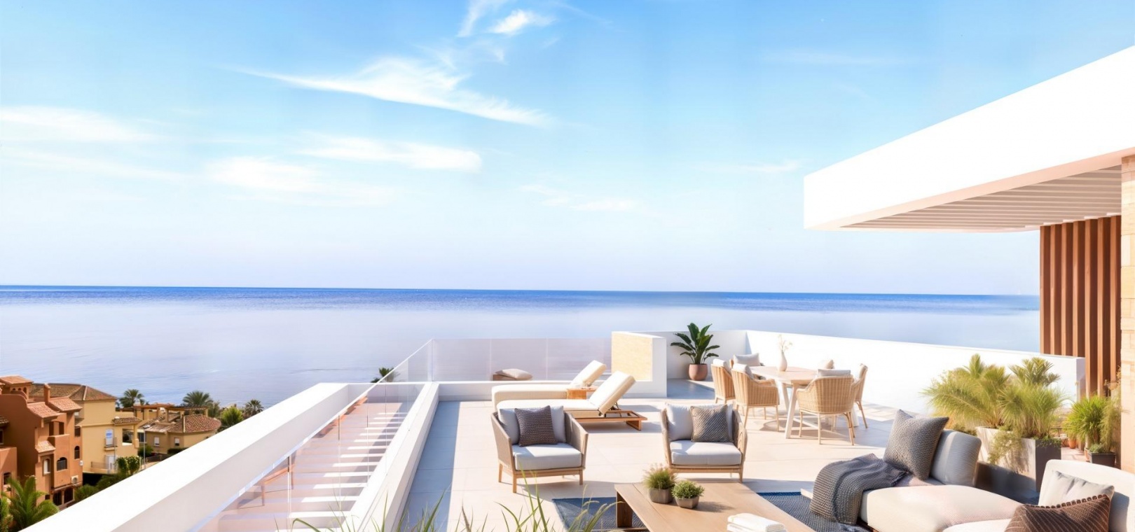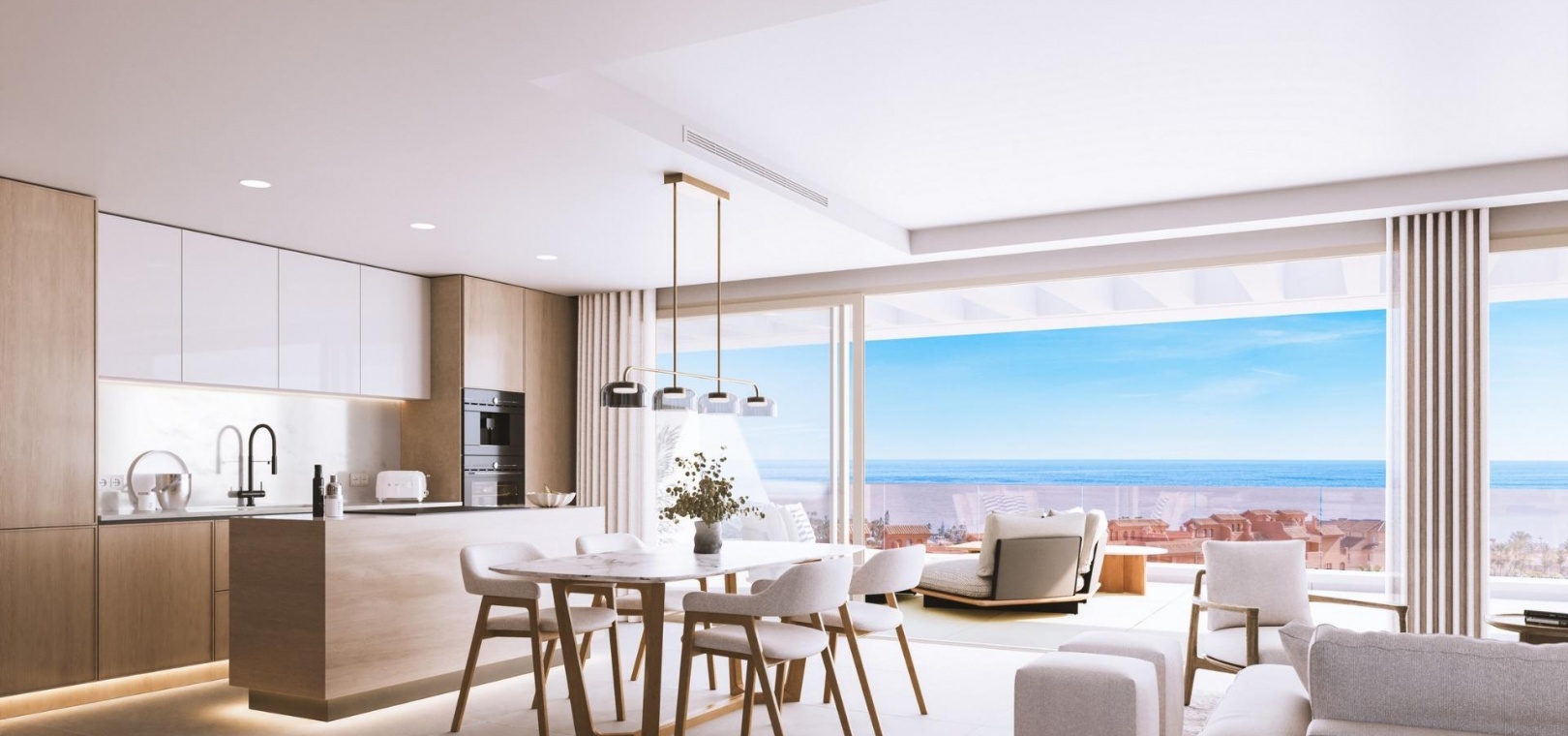 Varje hem har utformats för att erbjuda maximal komfort och sofistikering, från takvåningar med stora terrasser och solarium, till lägenheter på mellanvåningen med rymliga terrasser med utsikt över havet och rymliga privata trädgårdar på bottenvåningen.