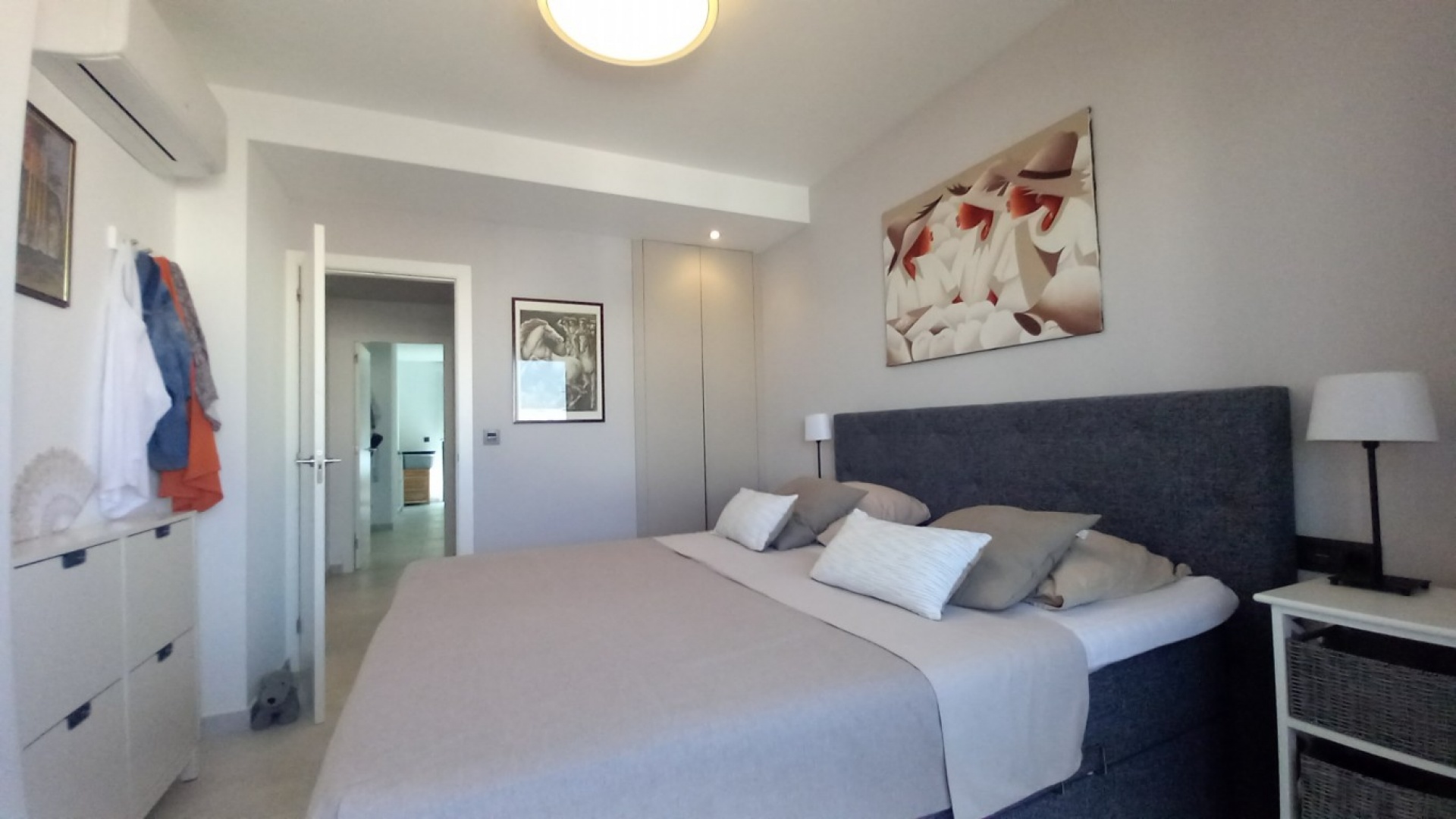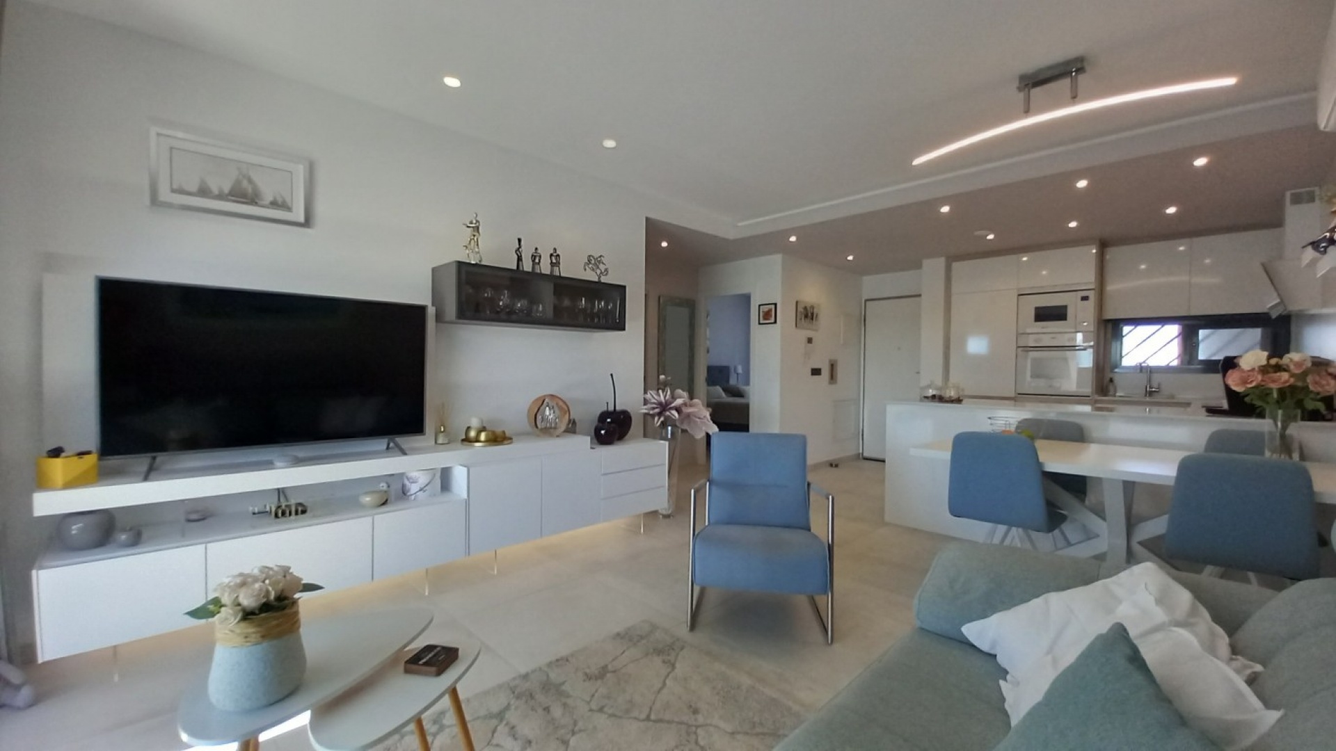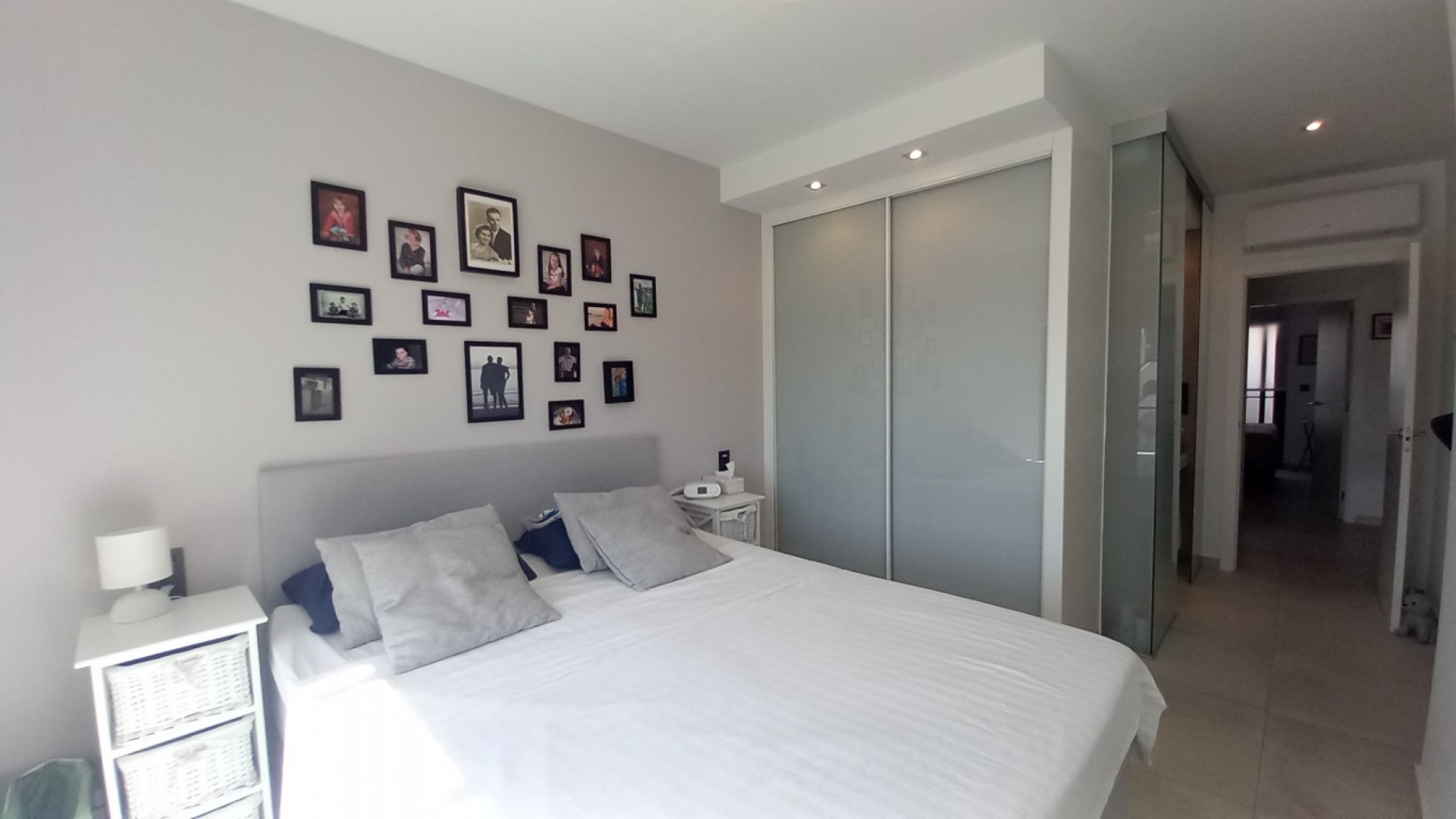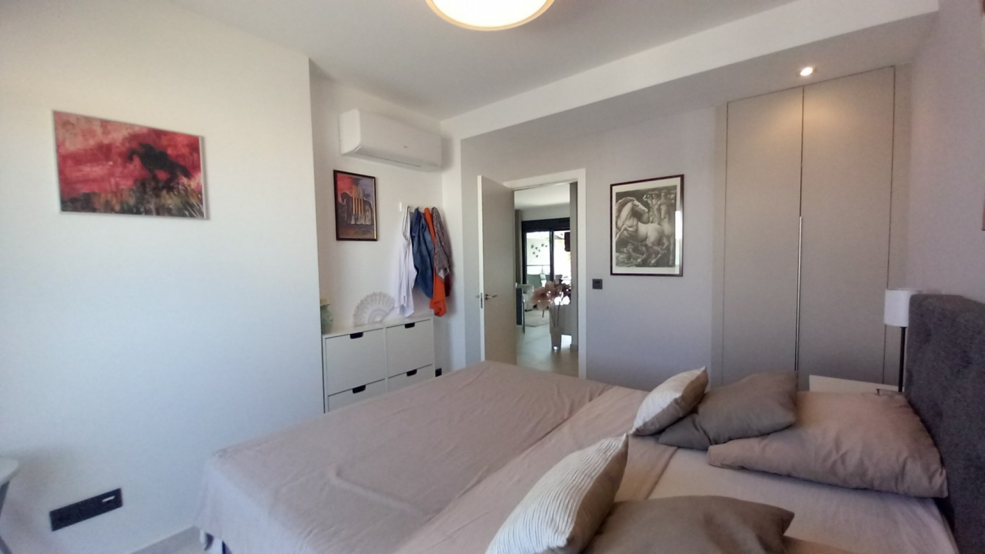 Denna vackra takvåning ligger i det moderna Oasis Beach XIII-komplexet nära den vackra spanska staden Guardamar del Segura och de naturliga sjöarna. Detta komplex byggdes 2020 och har en gemensam trädgård med en 25 x 10 m pool, ett spa med gym och bastu .Lägenheten har en privat parkeringsplats och ett förråd i det nedre garaget. Komplexet är inhägnat och lägenheten är utrustad med ett videoingångssystem och stålfönsterskydd. När du kommer in i lägenheten har du en hall som leder till ett mycket modernt, öppet och fullt utrustat kök med bardisk. Det rymliga och ljusa vardagsrummet/matsalen har luftkonditionering. De stora skjutdörrarna tar dig till den täckta terrassen med utsikt över poolen och trädgården. Du har två dubbelrum, båda med vacker utsikt, inbyggda garderober och oberoende luftkonditionering. Det stora sovrummet har utsikt över den gemensamma trädgården och har ett stort badrum med duschkabin. Ett andra badrum har en duschkabin. Lägenheten är inredd med mycket hög standard, är fullt möblerad och är i mycket gott (ny) skick. Från balkongen har du en trappa som leder till solariet på 68 m², med fantastisk utsikt över komplexets saltsjöar och grönområden. Solariet har ett utomhuskök och jacuzzi. Fastigheten ligger i El Raso-distriktet i närheten av affärer, barer och restauranger, 5 minuters bilresa från de vackra lokala stränderna och 30 minuter från Alicantes flygplats. En lägenhet som passar alla årstider i Spanien. Vi inbjuder dig att uppleva den underbara semesteratmosfären i denna vackra lägenhet. Kontakta oss för mer information eller för att boka ett besök.