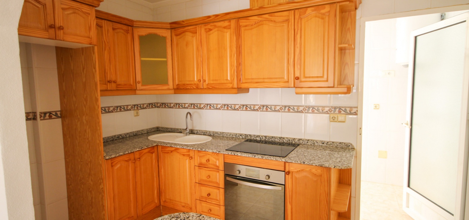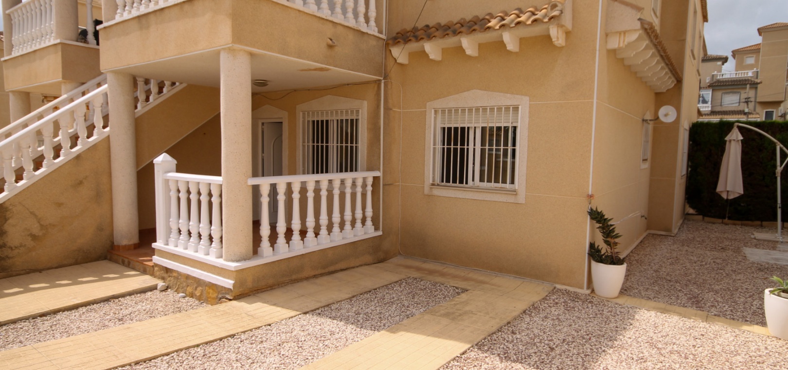 En hörnlägenhet med 2 sovrum och 1 badrum på bottenvåningen i El Galan, Villamartin, Costa Blanca.