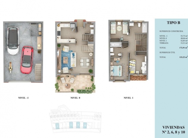 De kommer att levereras fullt utrustade med kök, inbyggda garderober och luftkonditionering med aerotermi, vilket minskar underhålls- och samhällskostnaderna till ett minimum.