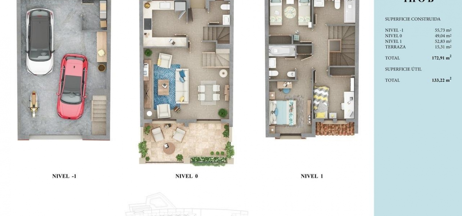 Dessa fastigheter erbjuder en perfekt distribution, med stora garage, terrass, chill-out område med grill och med möjlighet till en privat pool i vissa fall. Dessutom har husen ett eget underjordiskt garage med flera expansionsmöjligheter.